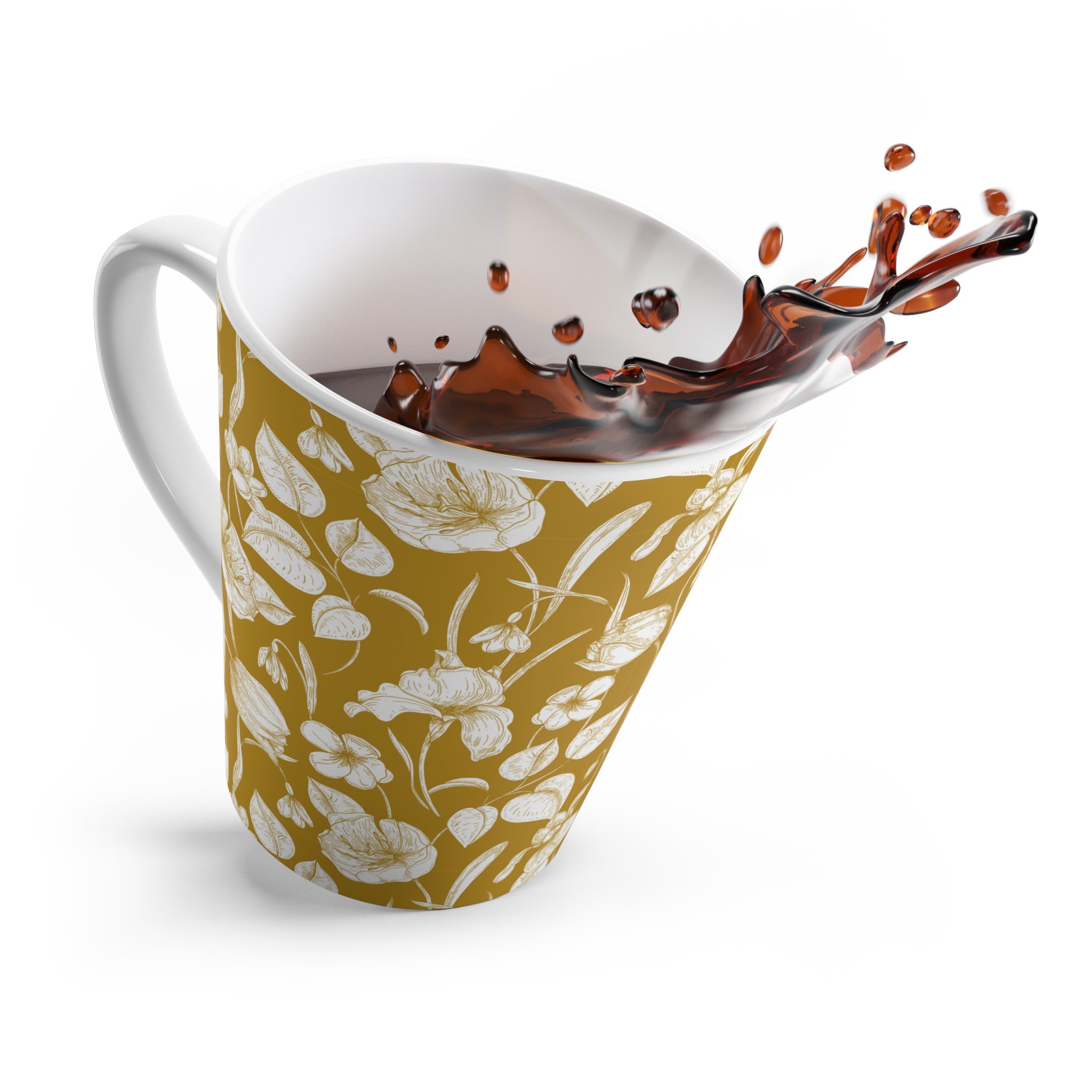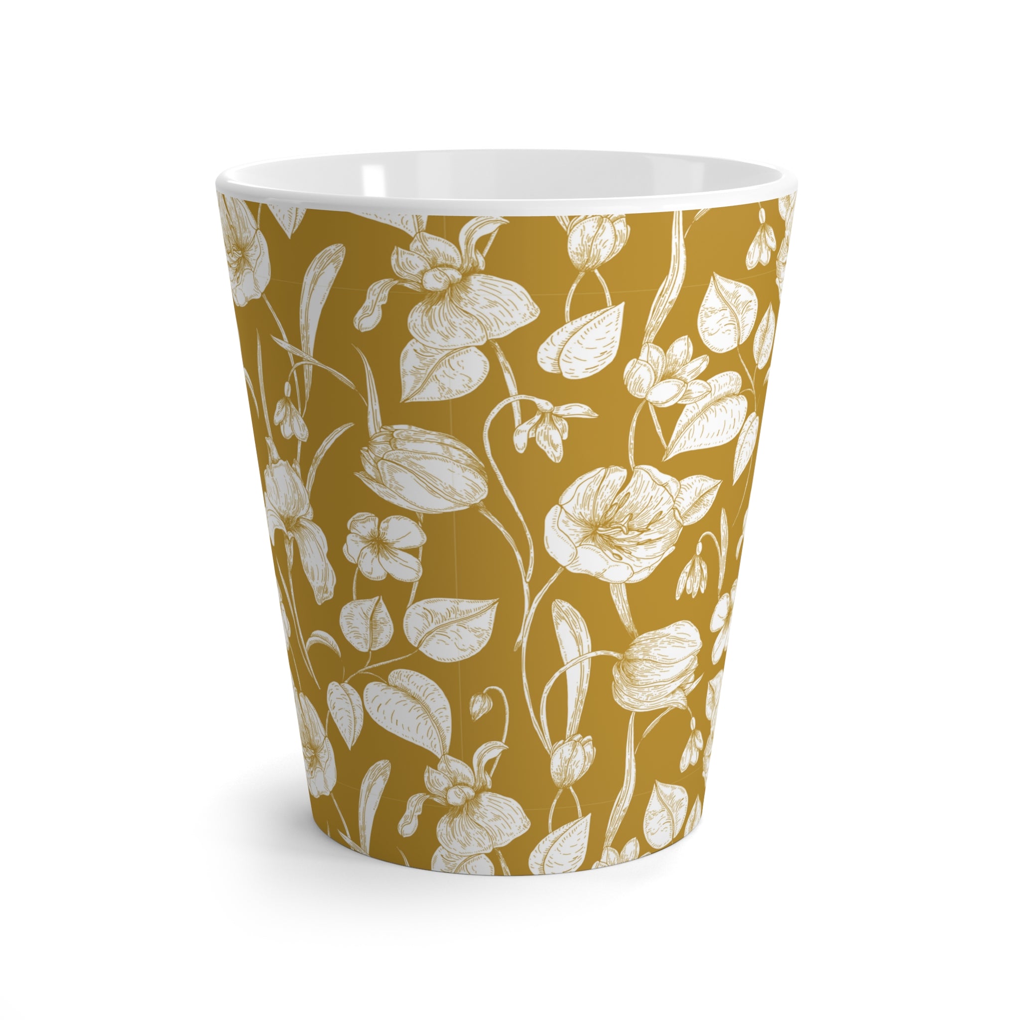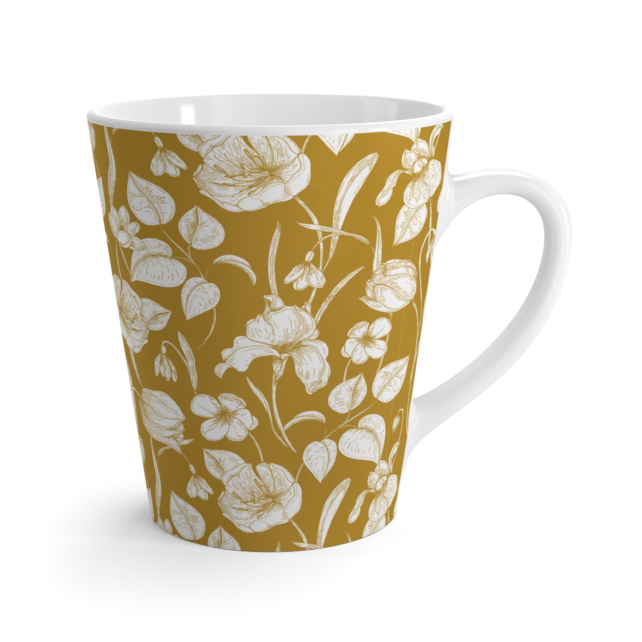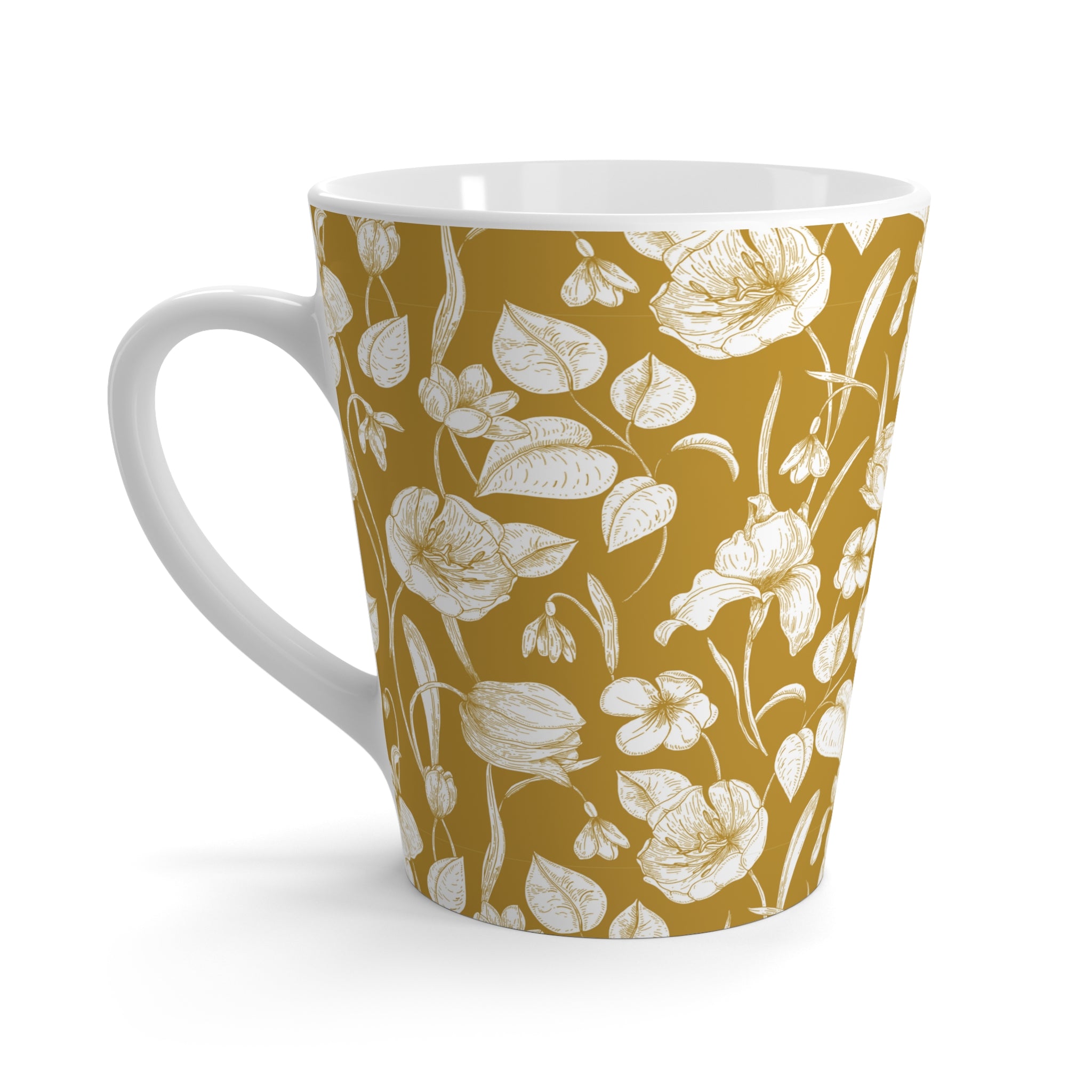 Whispers of Toile- Floral Design Latte Mug, Coffee Cup- Mustard Tea Lover Gift, Kitchen Decor, Floral Mug, Housewarming Gift, Birthday Present