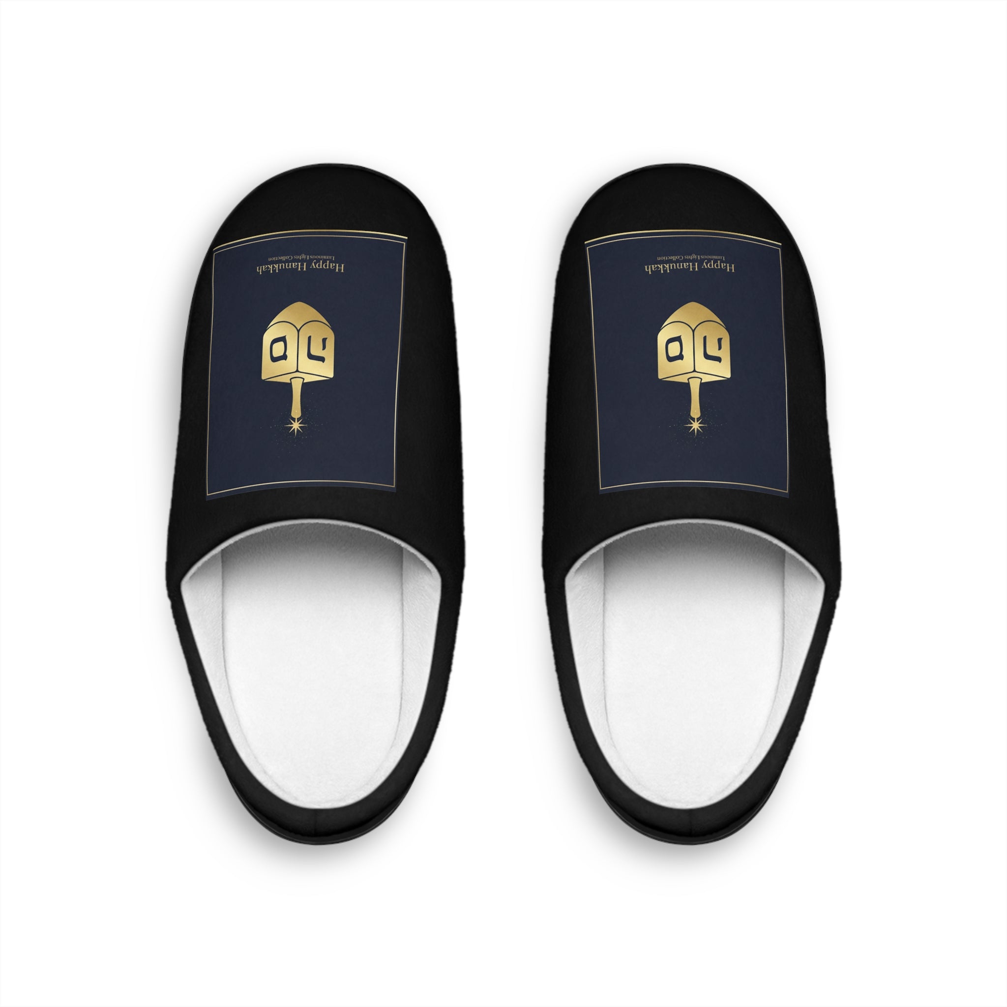 • Women's Indoor Slippers — Gold Dreidel Hanukkah Design
