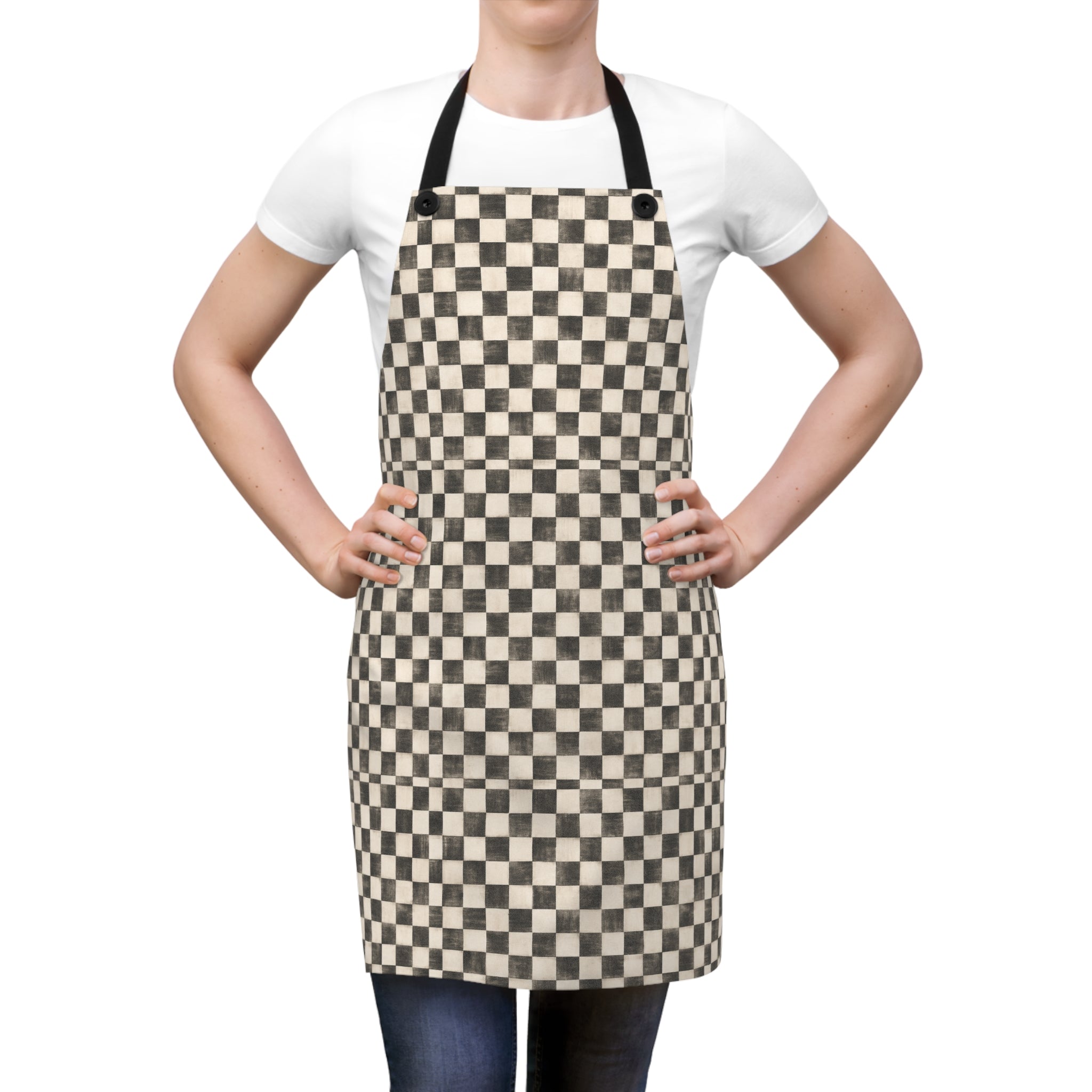 Chic Checkered Pattern Apron- Black/White, Stylish Cooking Gift for Chefs, Baking Enthusiasts, Kitchen Decor, Family Gatherings, Holiday Celebrations