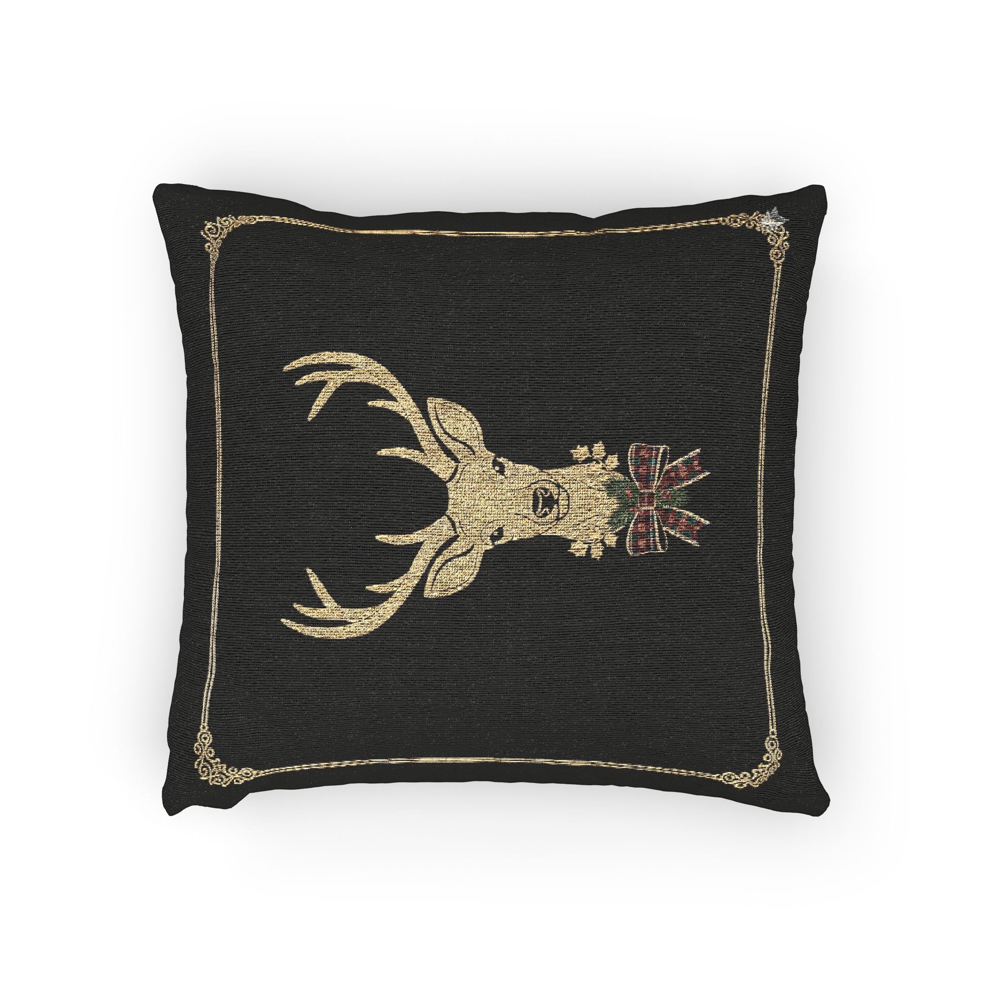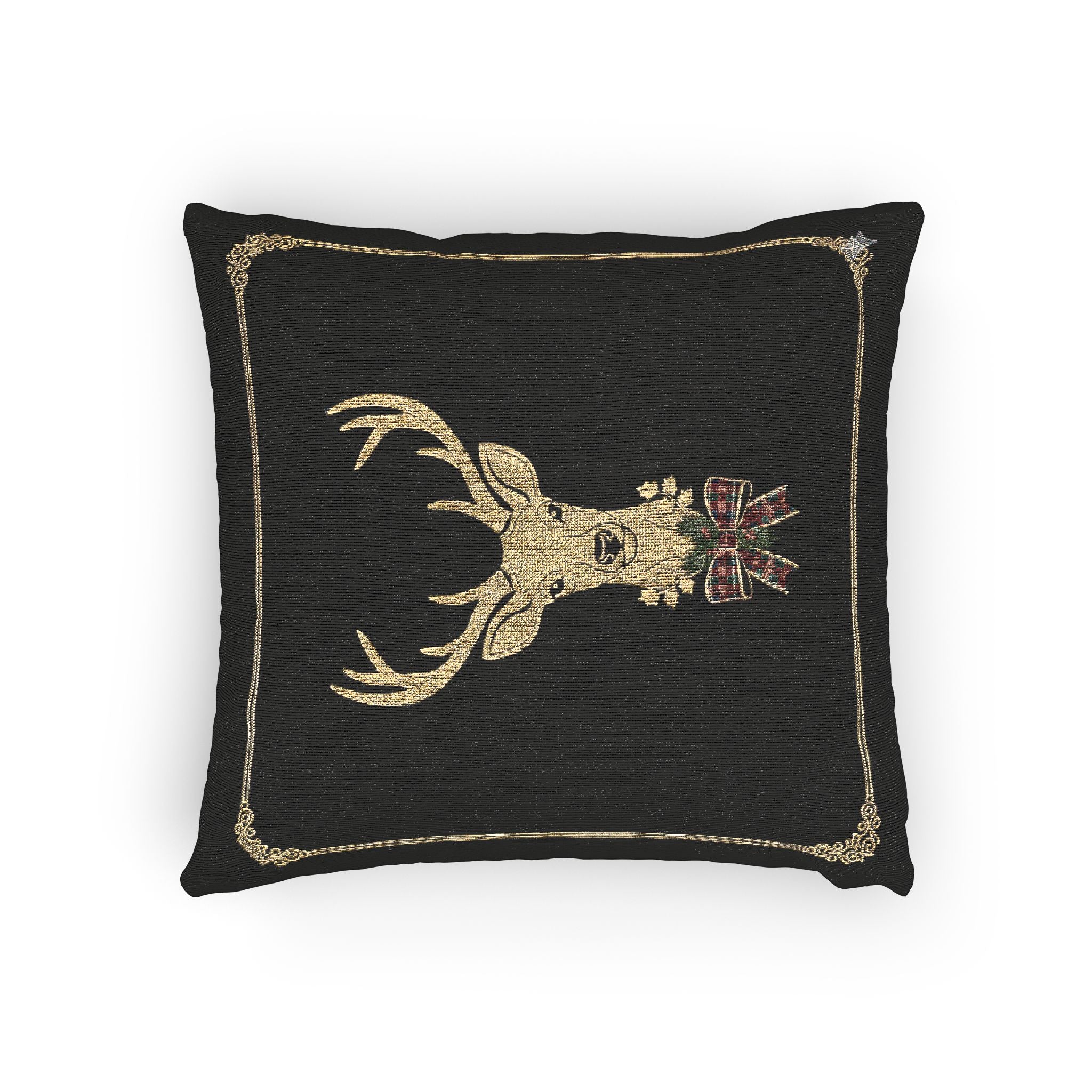 Christmas Deer Woven Pillow — Rustic Holiday Reindeer Throw Pillow
