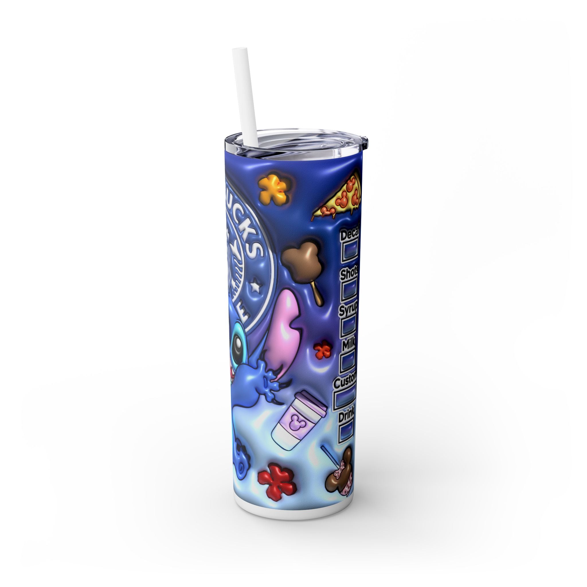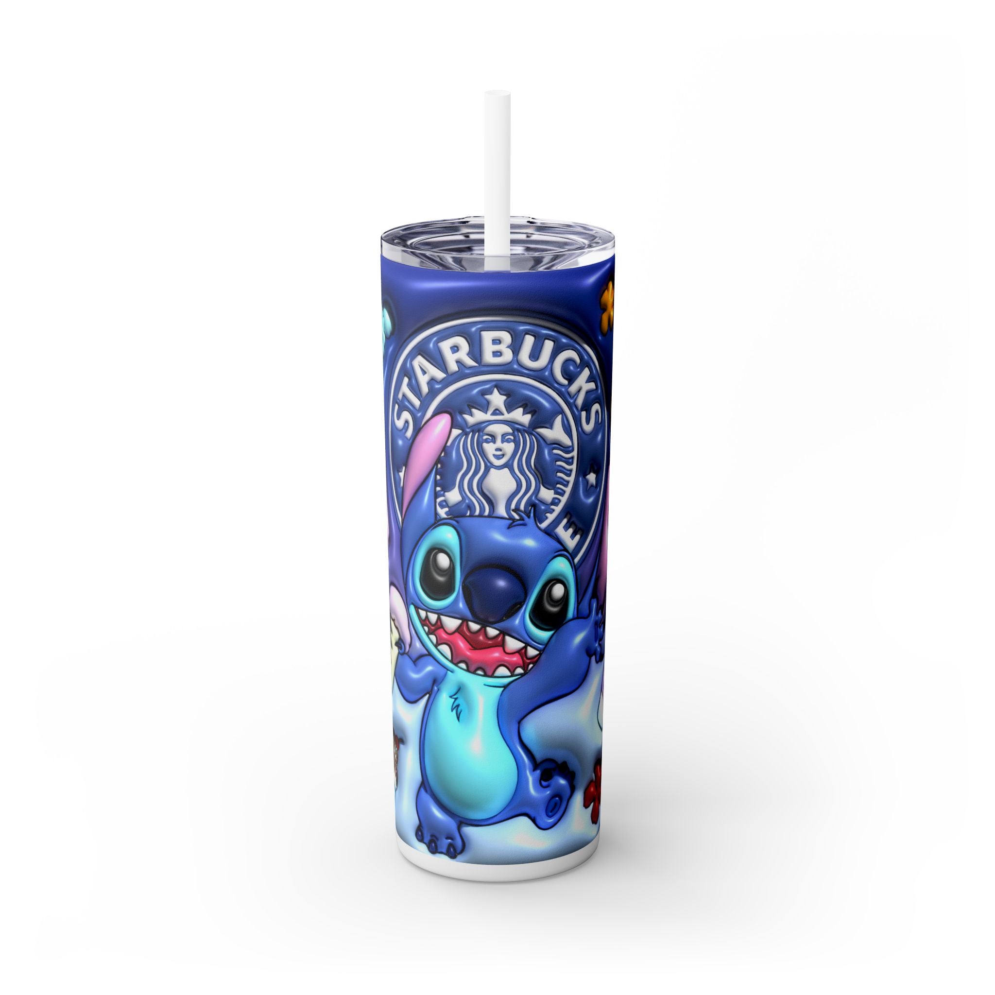 Colorful Stitch 3D Inflated Skinny Tumbler with Straw | 20oz Disney-Inspired Travel Mug
