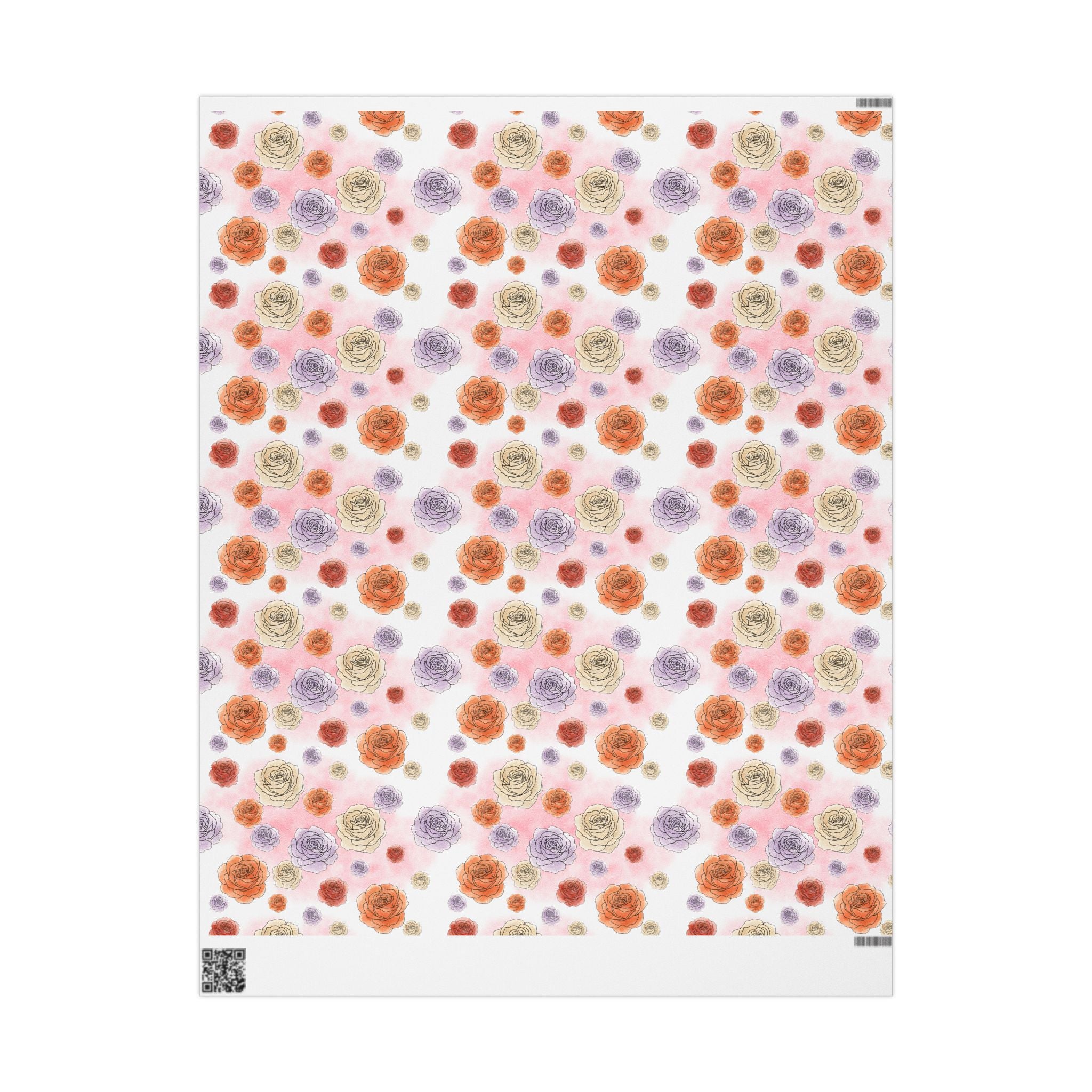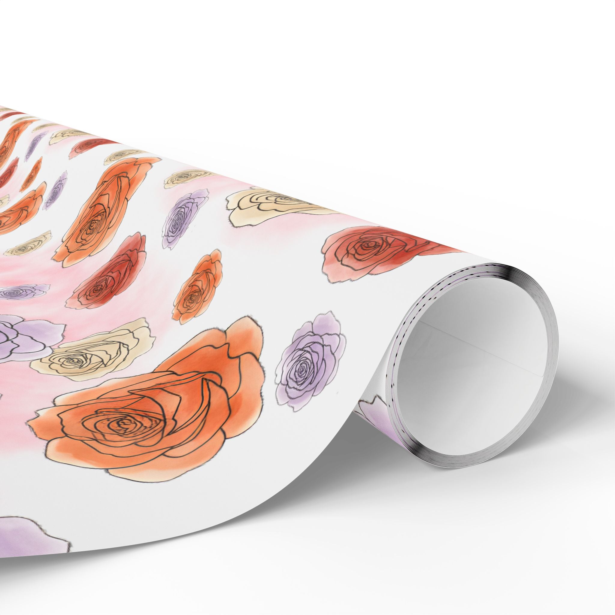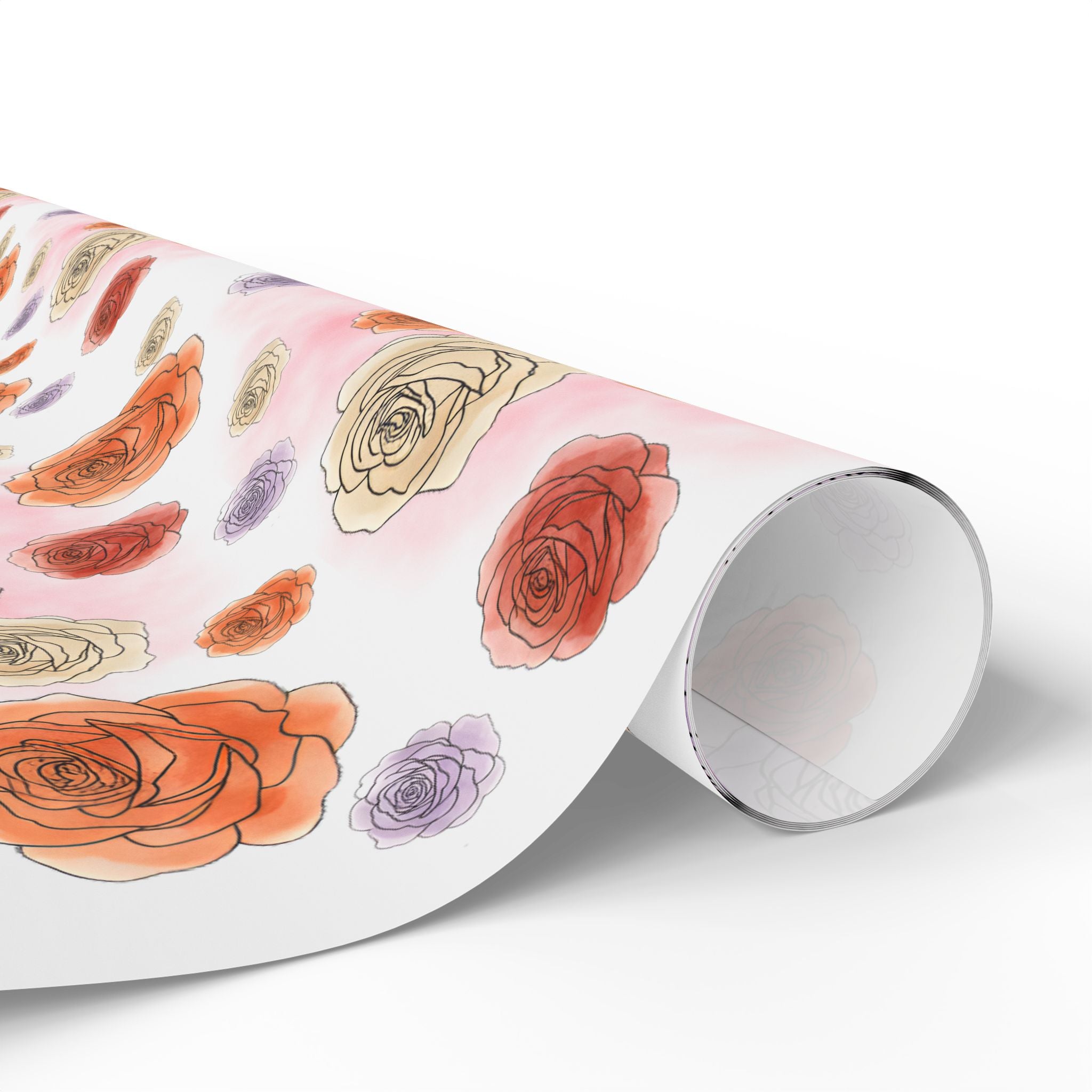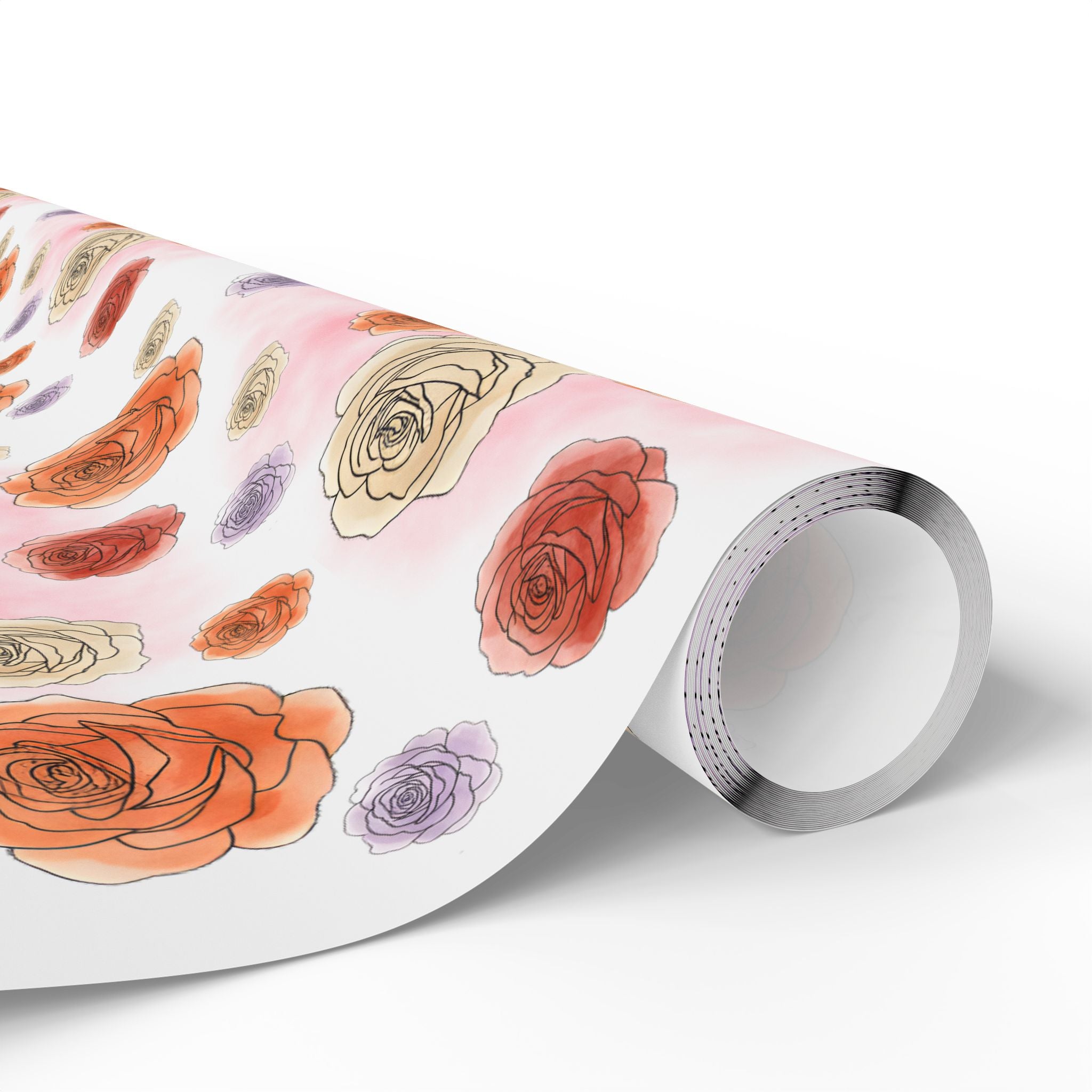 English Ivy & Rose Floral Rose Wrapping Paper Roll — Watercolor Roses Gift Wrap for Birthdays & Mother's Day