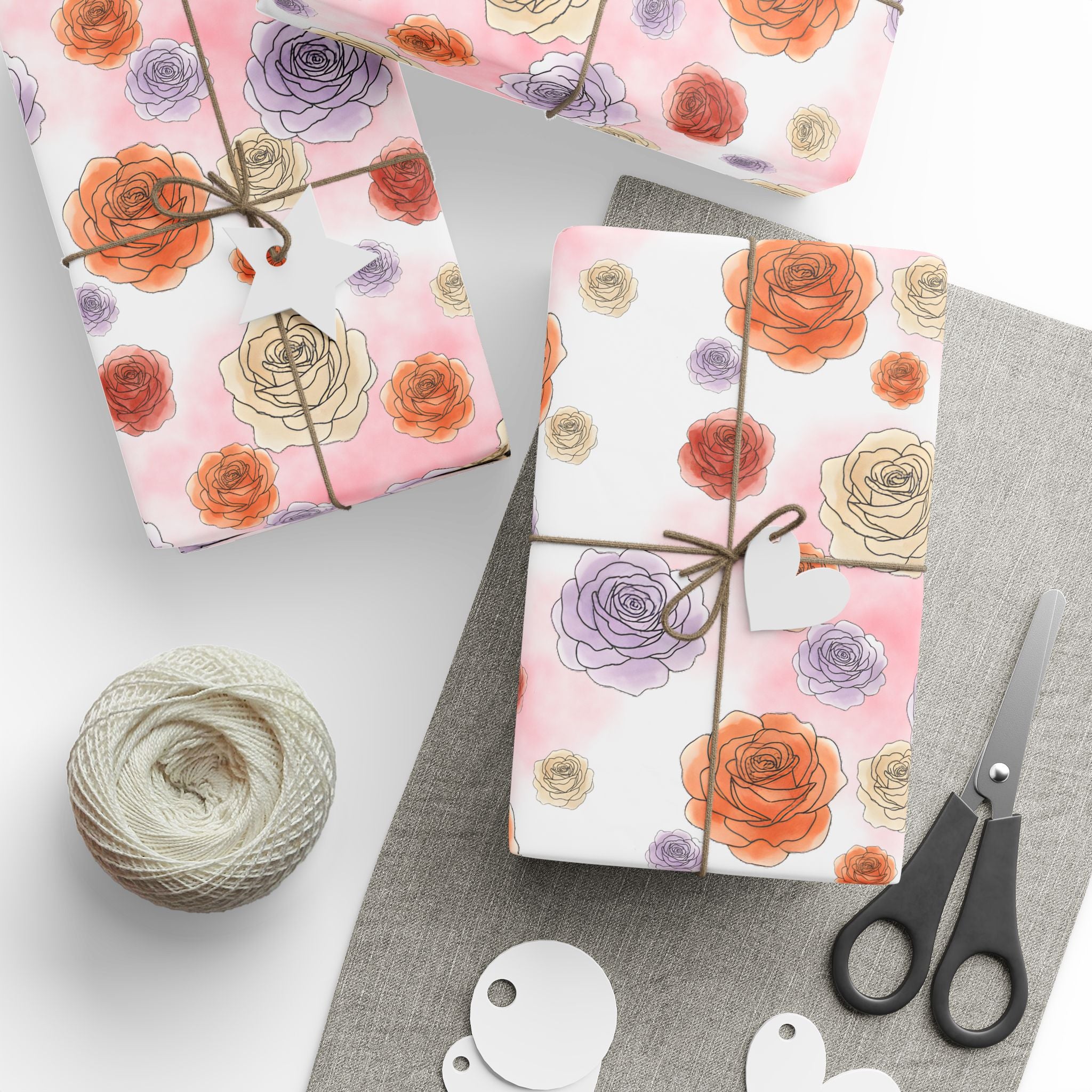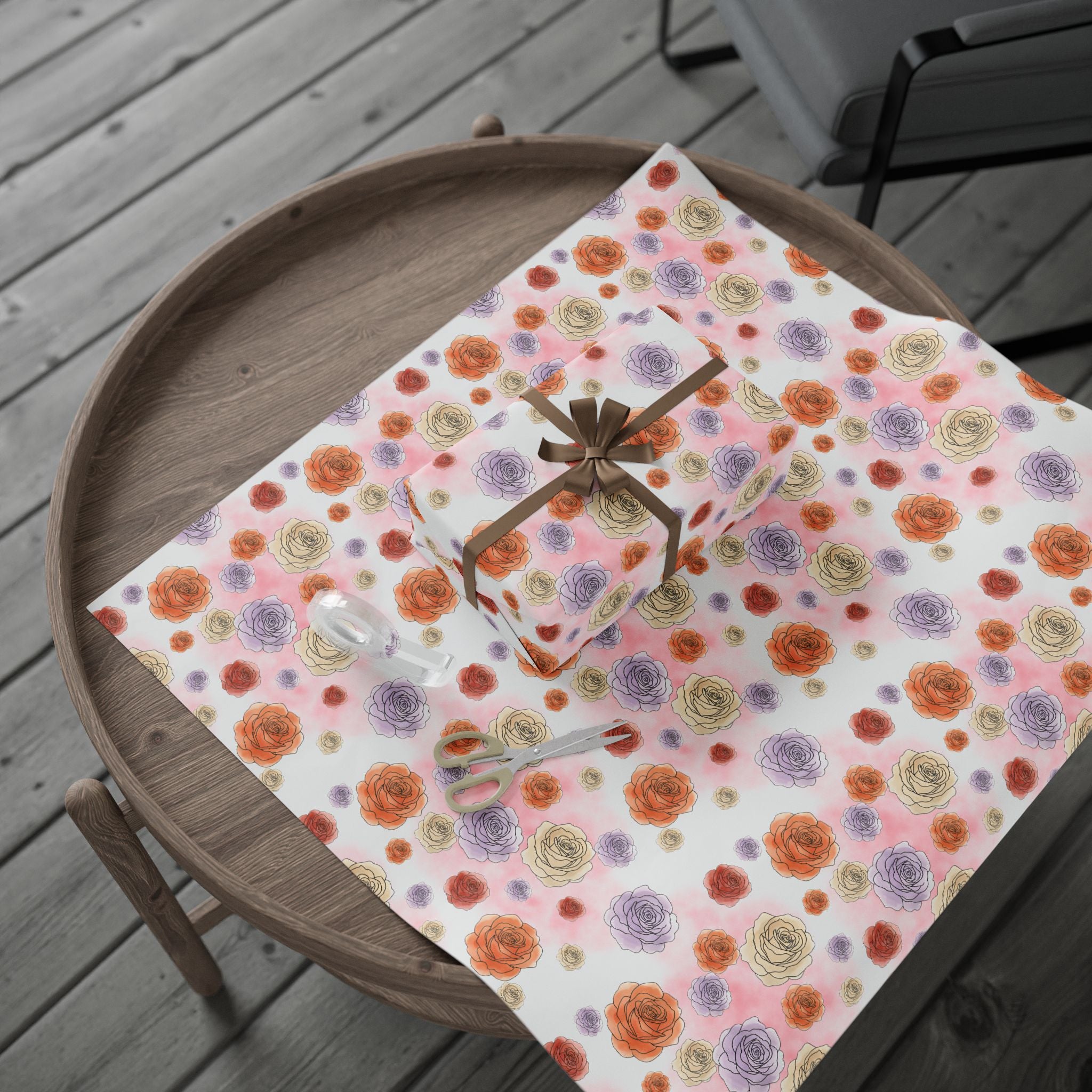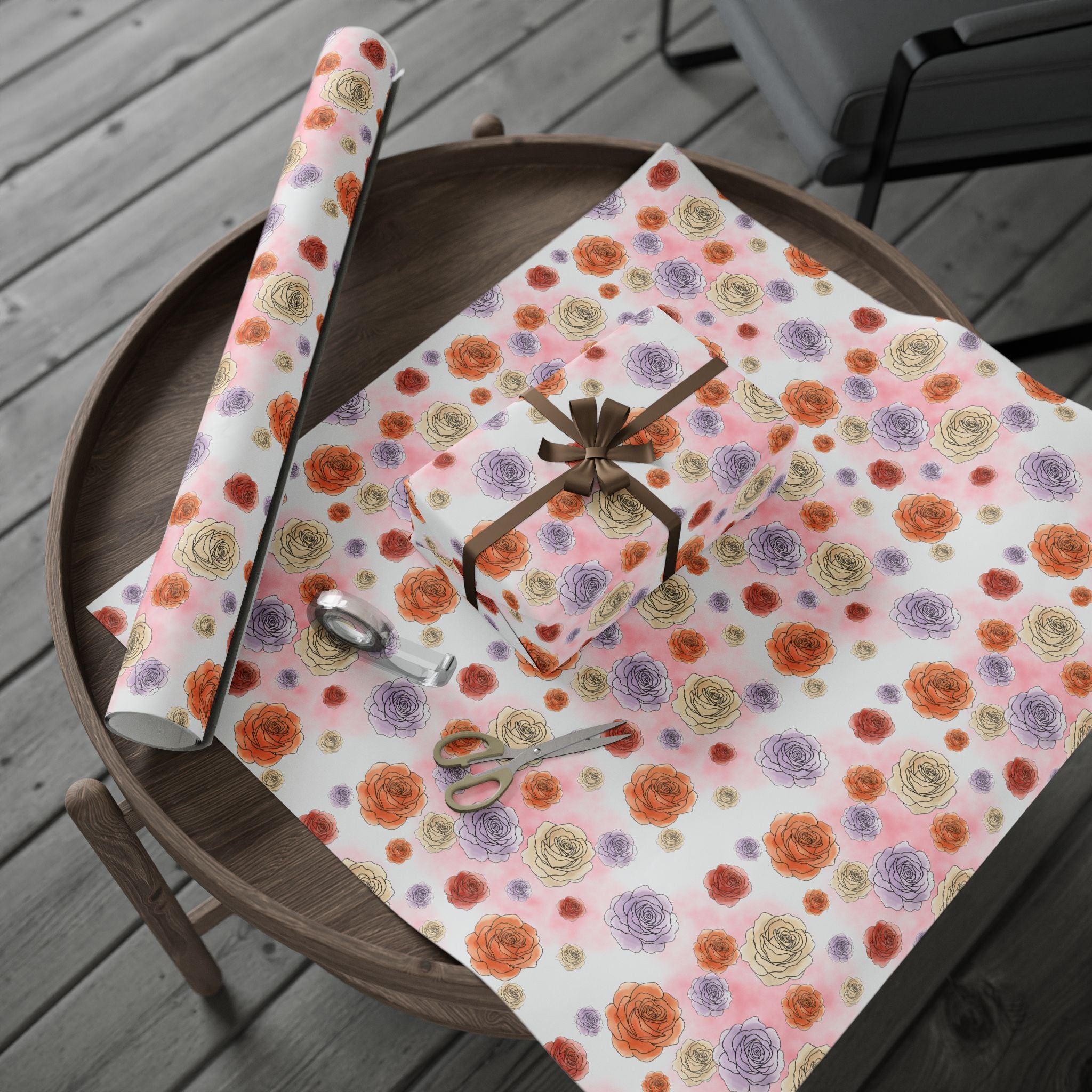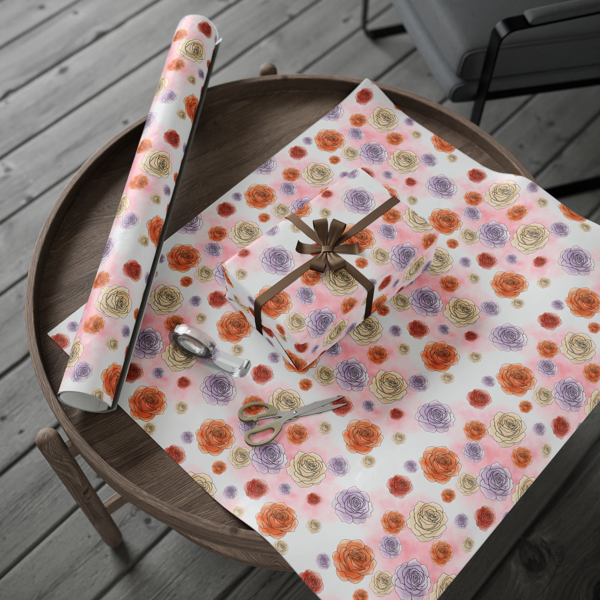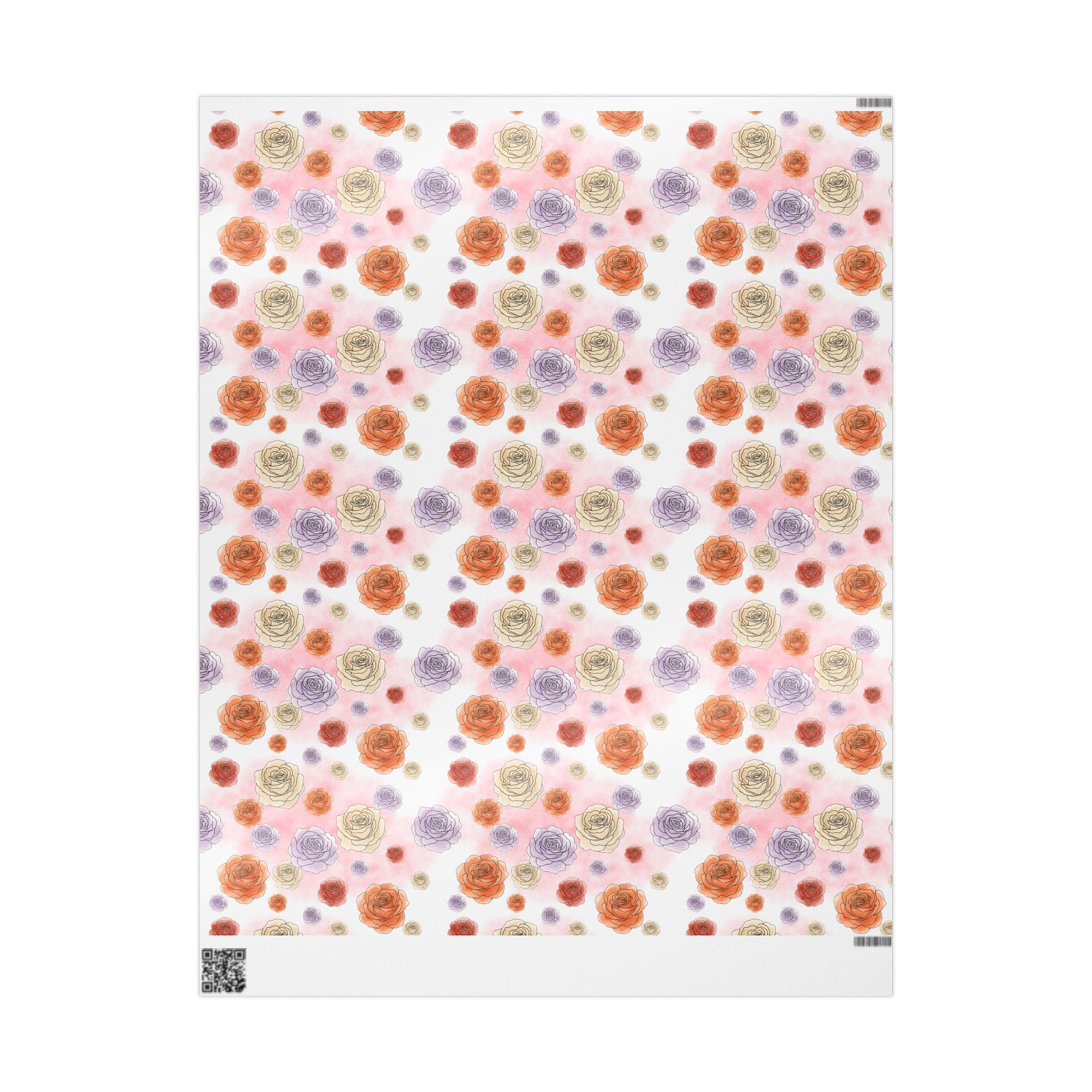 English Ivy & Rose Floral Rose Wrapping Paper Roll — Watercolor Roses Gift Wrap for Birthdays & Mother's Day
