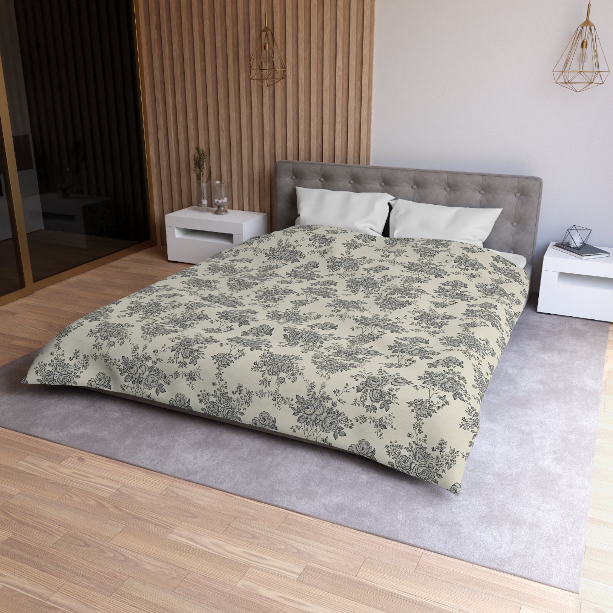 English Ivy & Rose Floral Toile Microfiber Duvet Cover