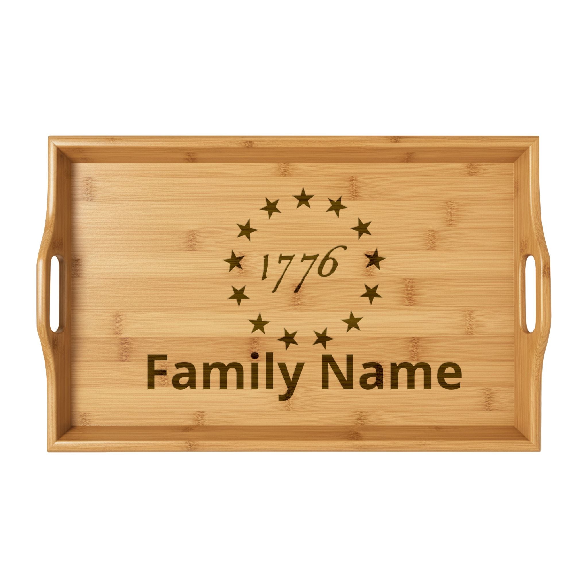 Engraved Bamboo Serving Tray — Custom "1776" Family Name Patriotic Gift