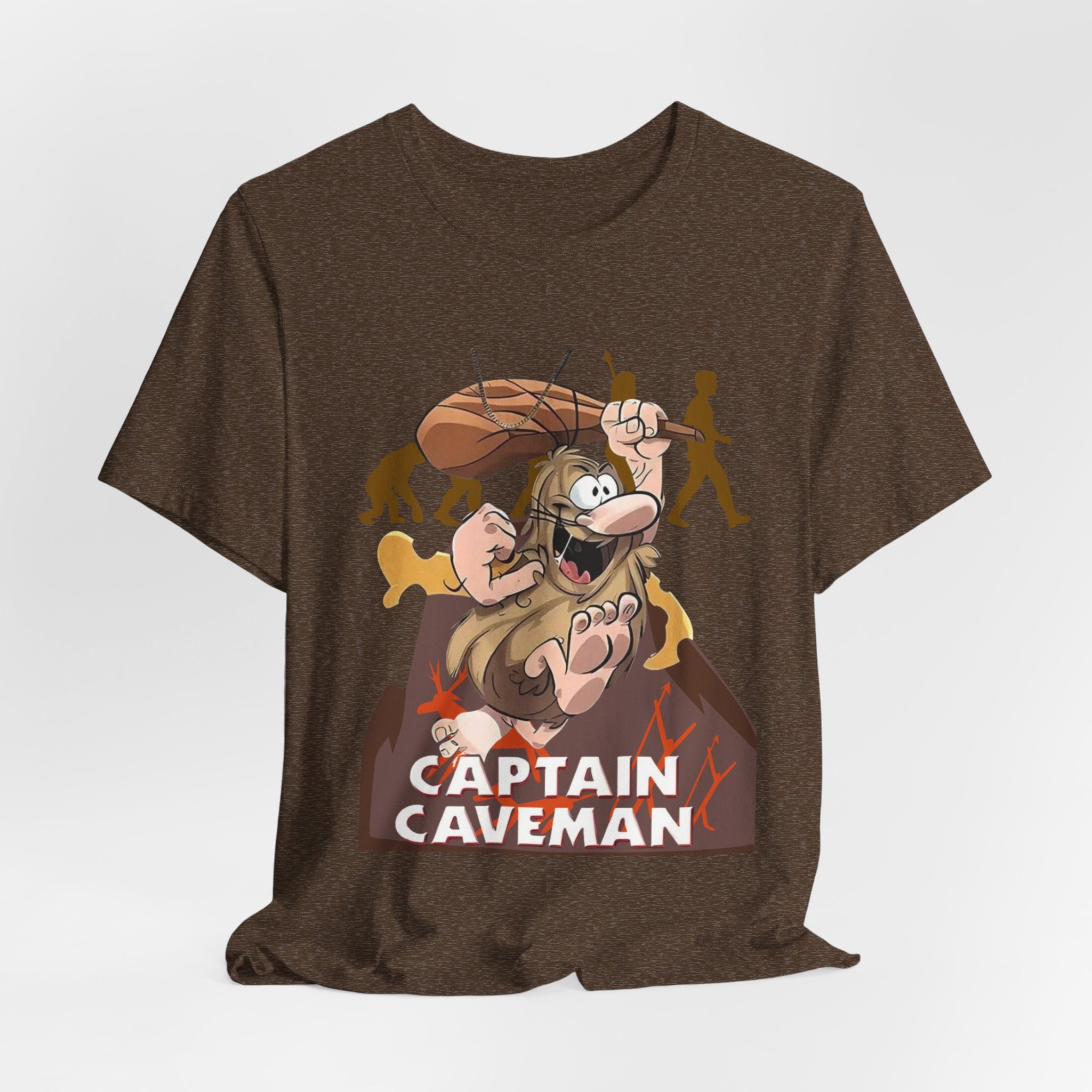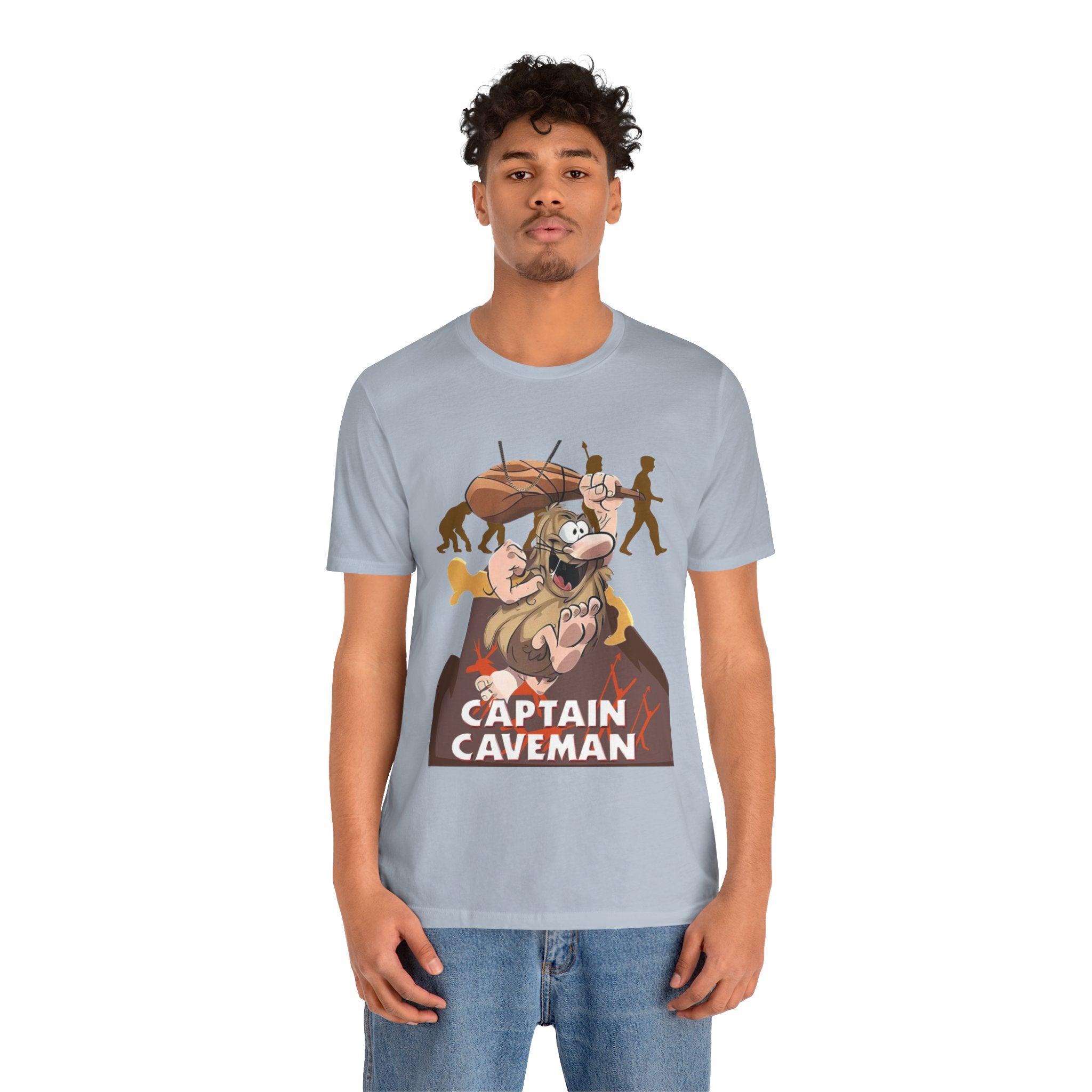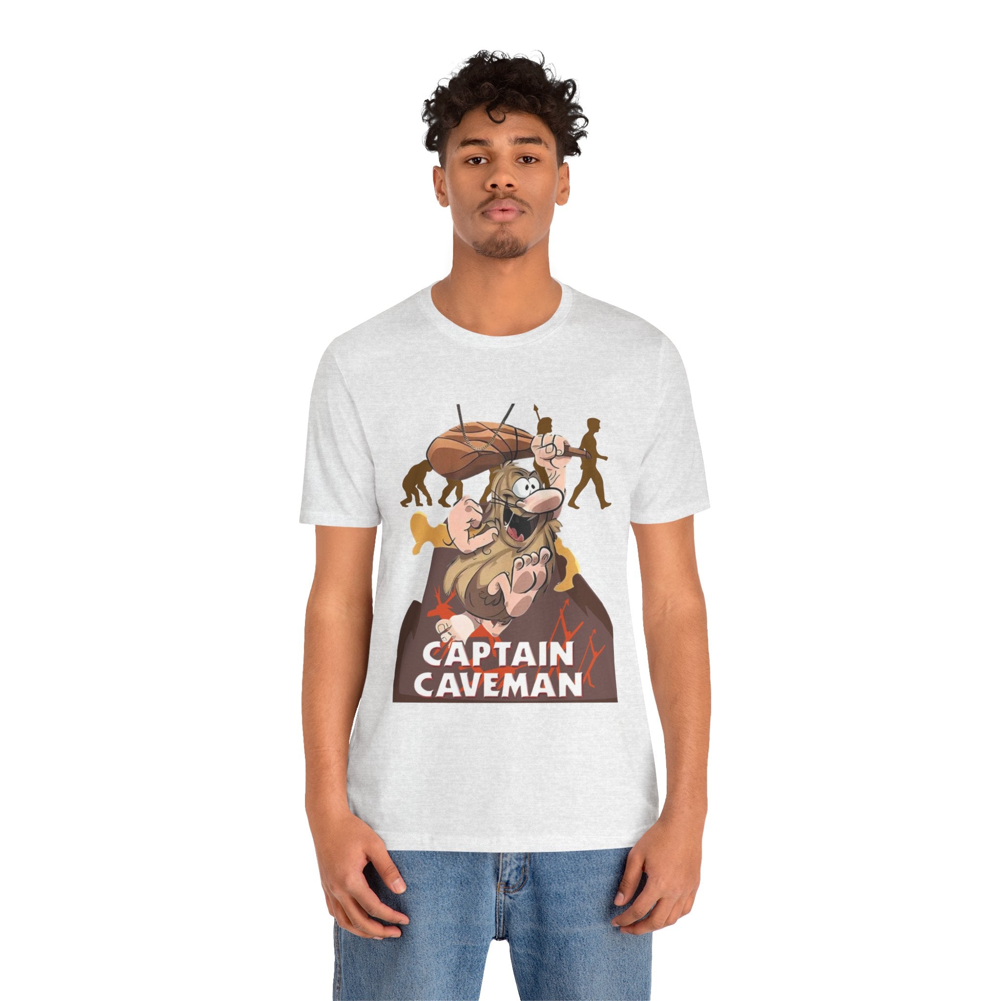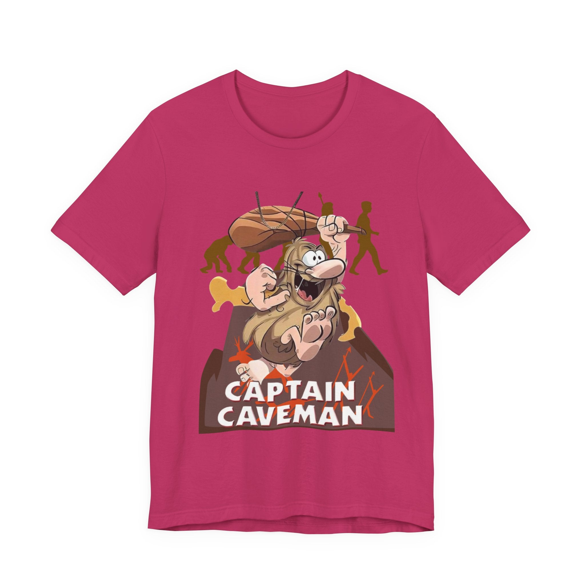 • Funny Captain Caveman Cartoon Character Tee, Casual Graphic Shirt, Gift for Men & Women