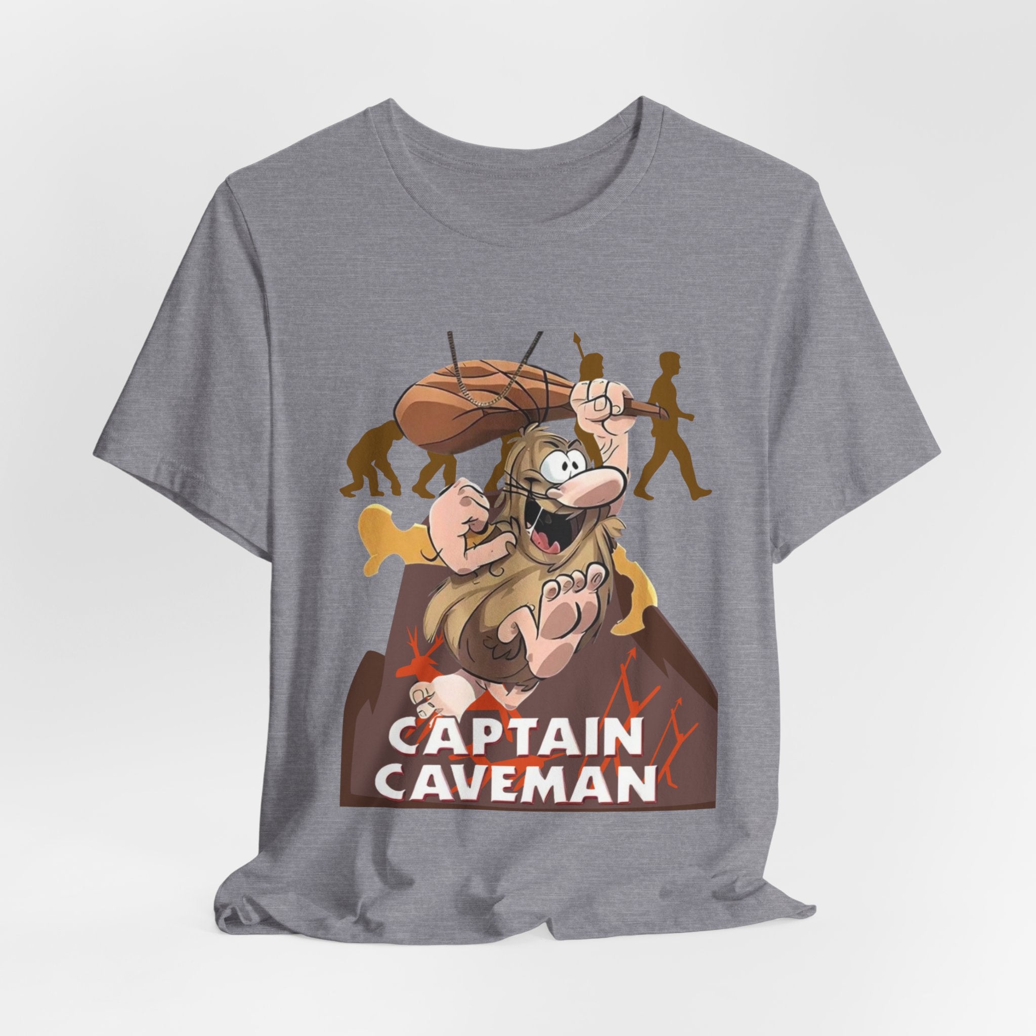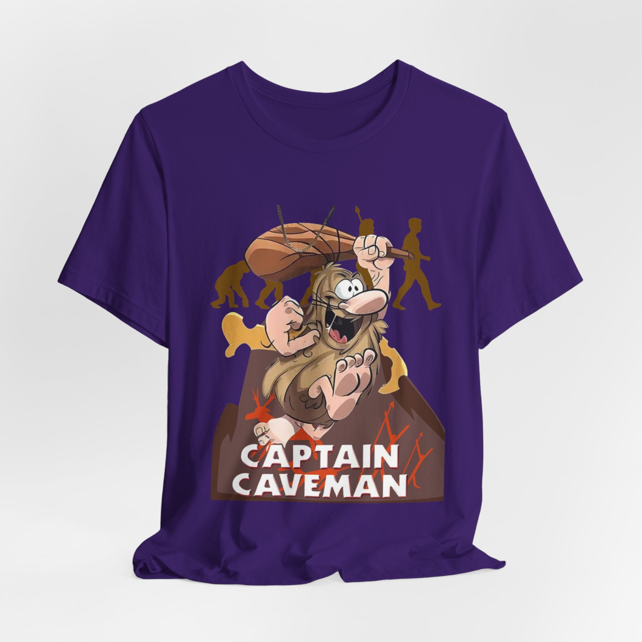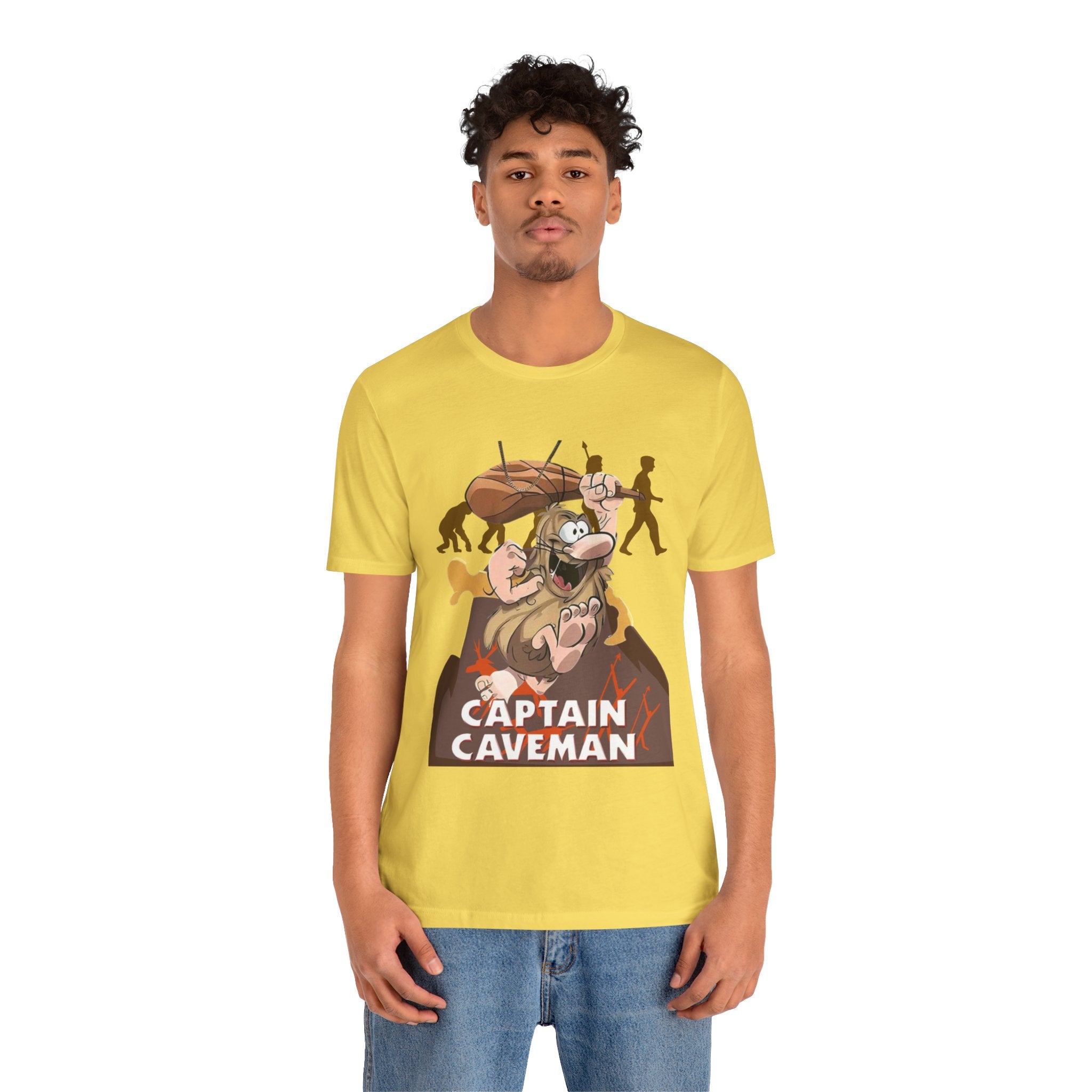 • Funny Captain Caveman Cartoon Character Tee, Casual Graphic Shirt, Gift for Men & Women