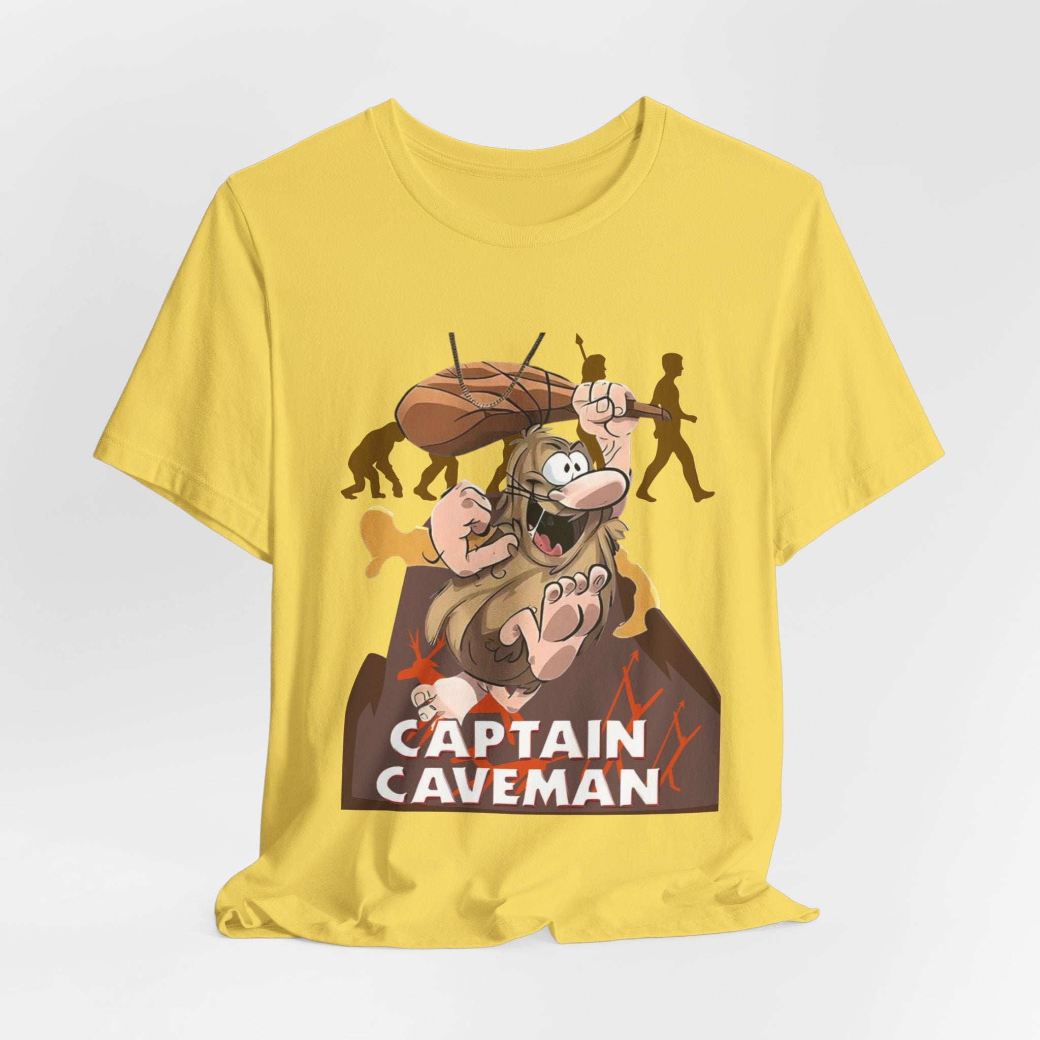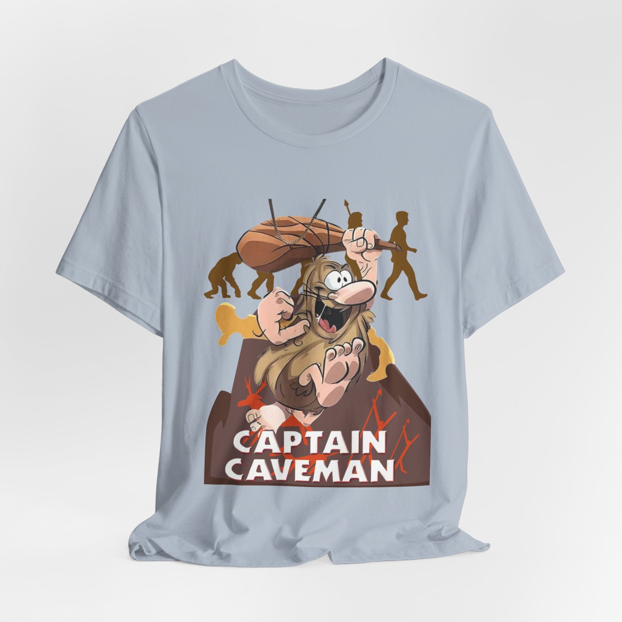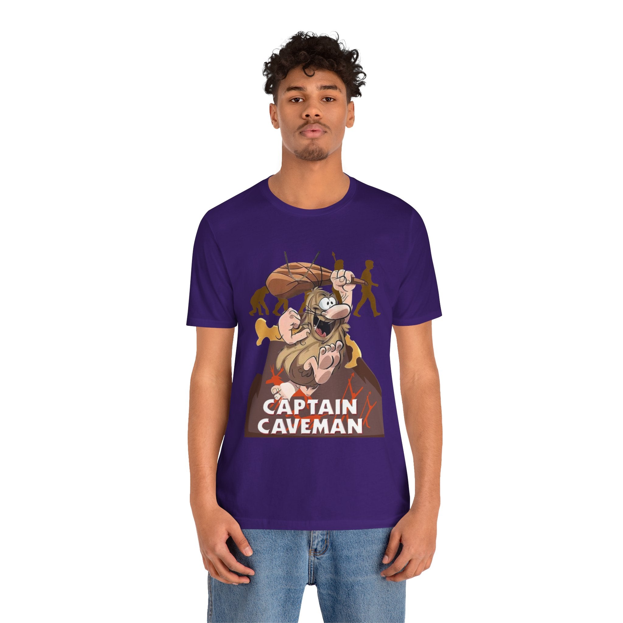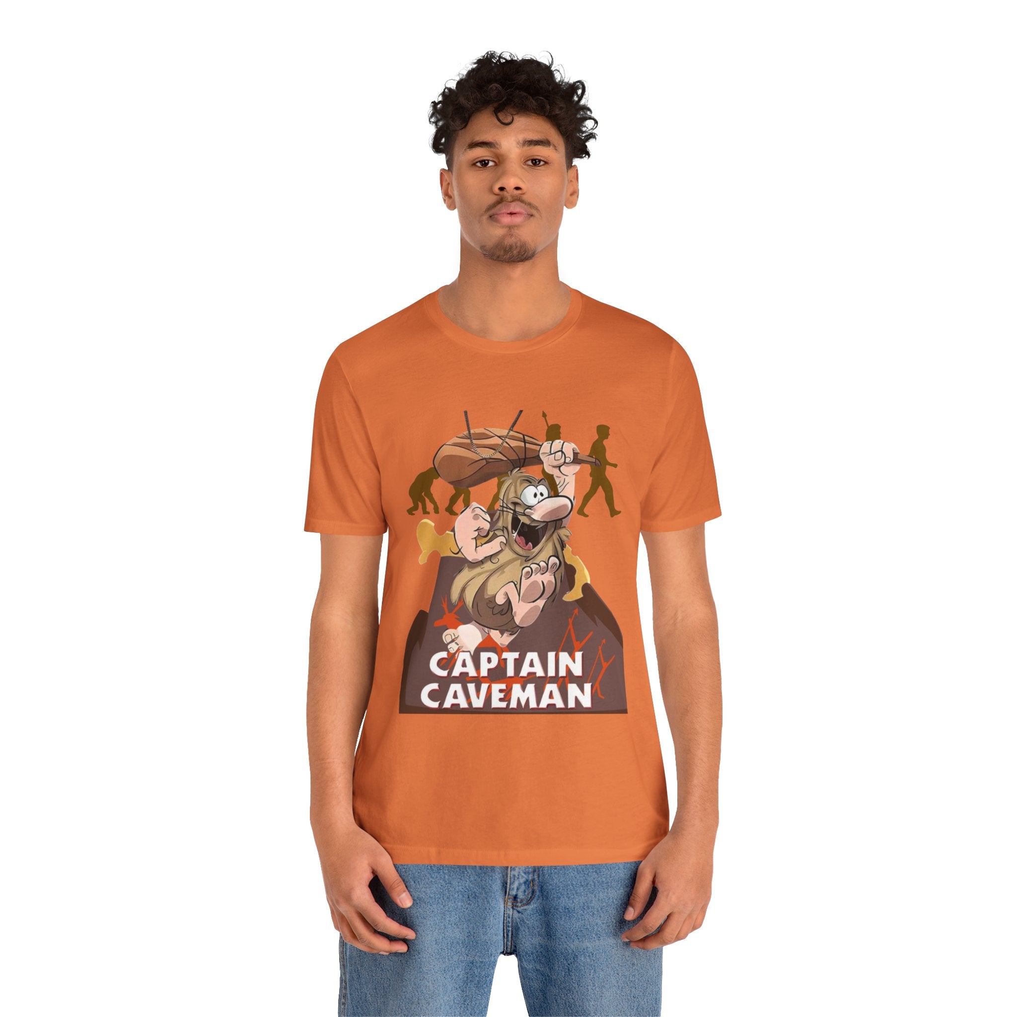 • Funny Captain Caveman Cartoon Character Tee, Casual Graphic Shirt, Gift for Men & Women