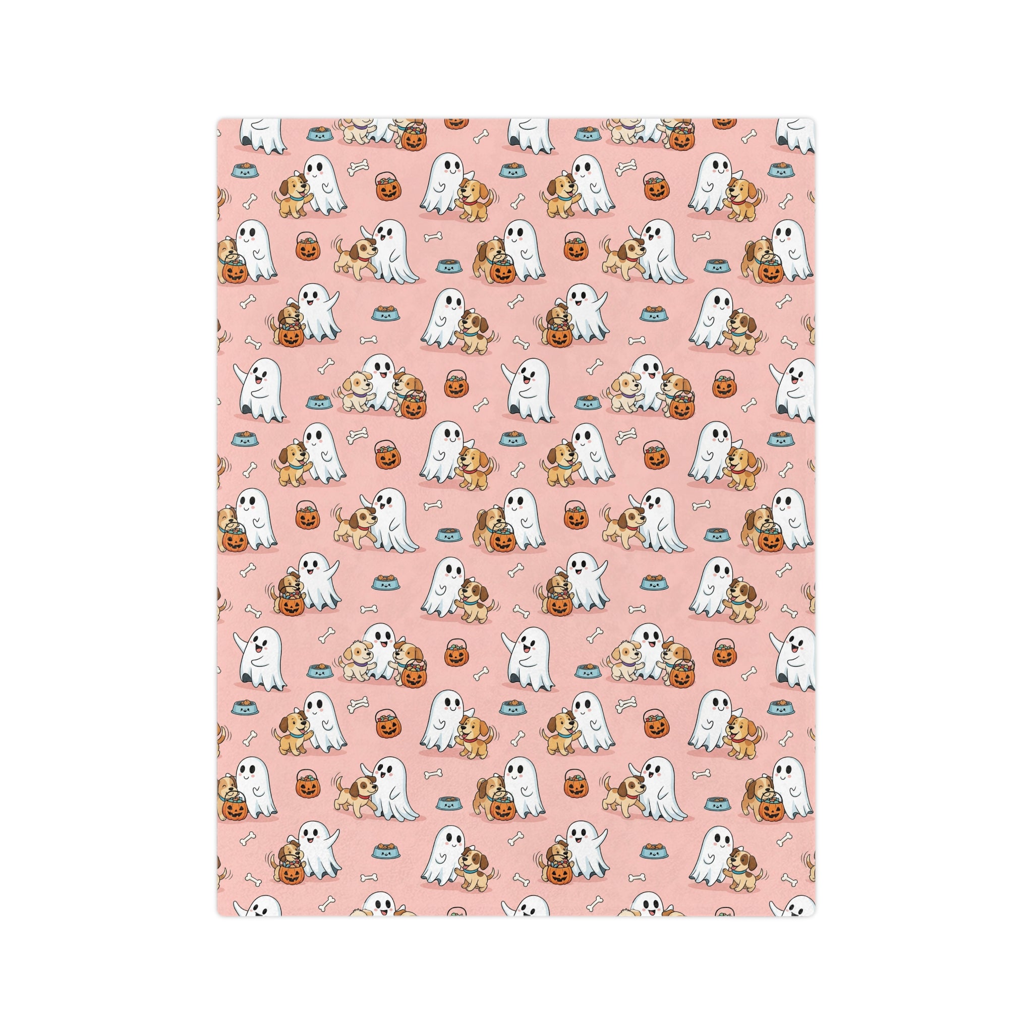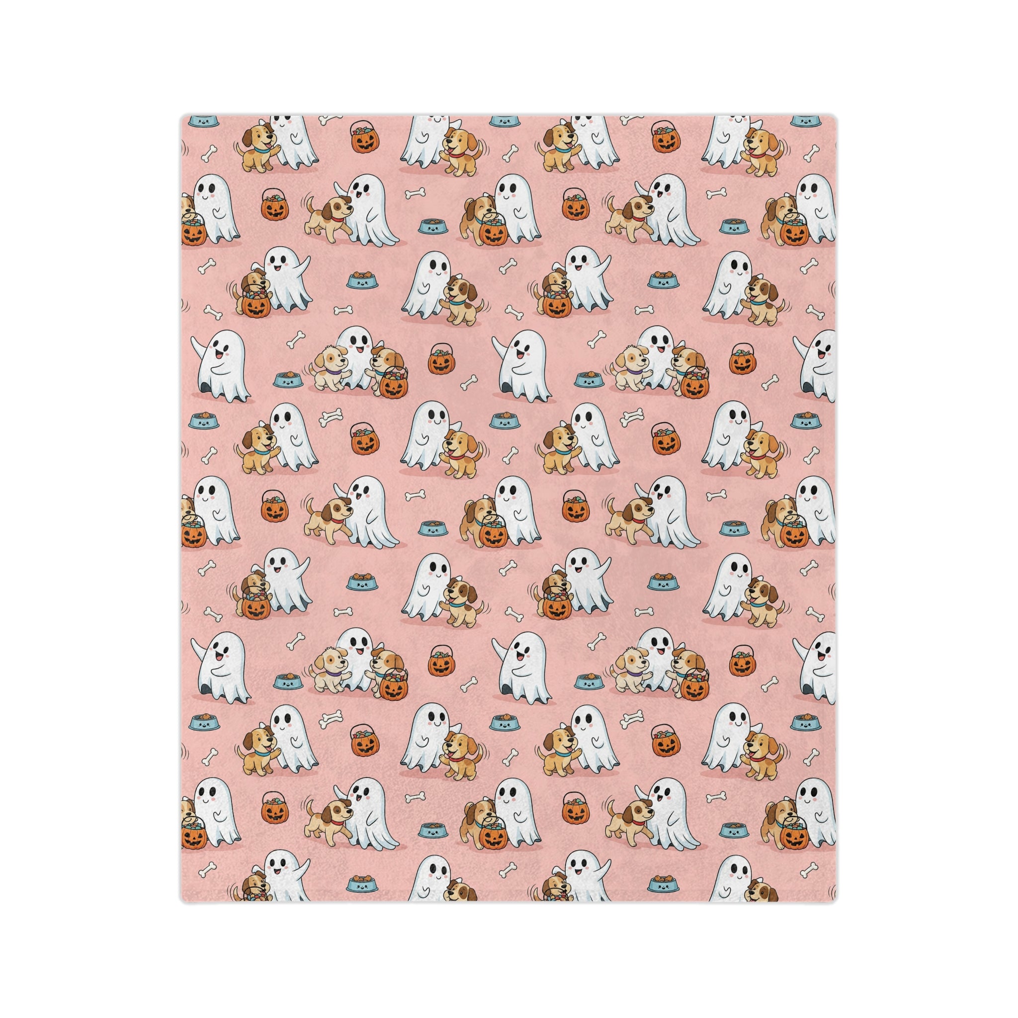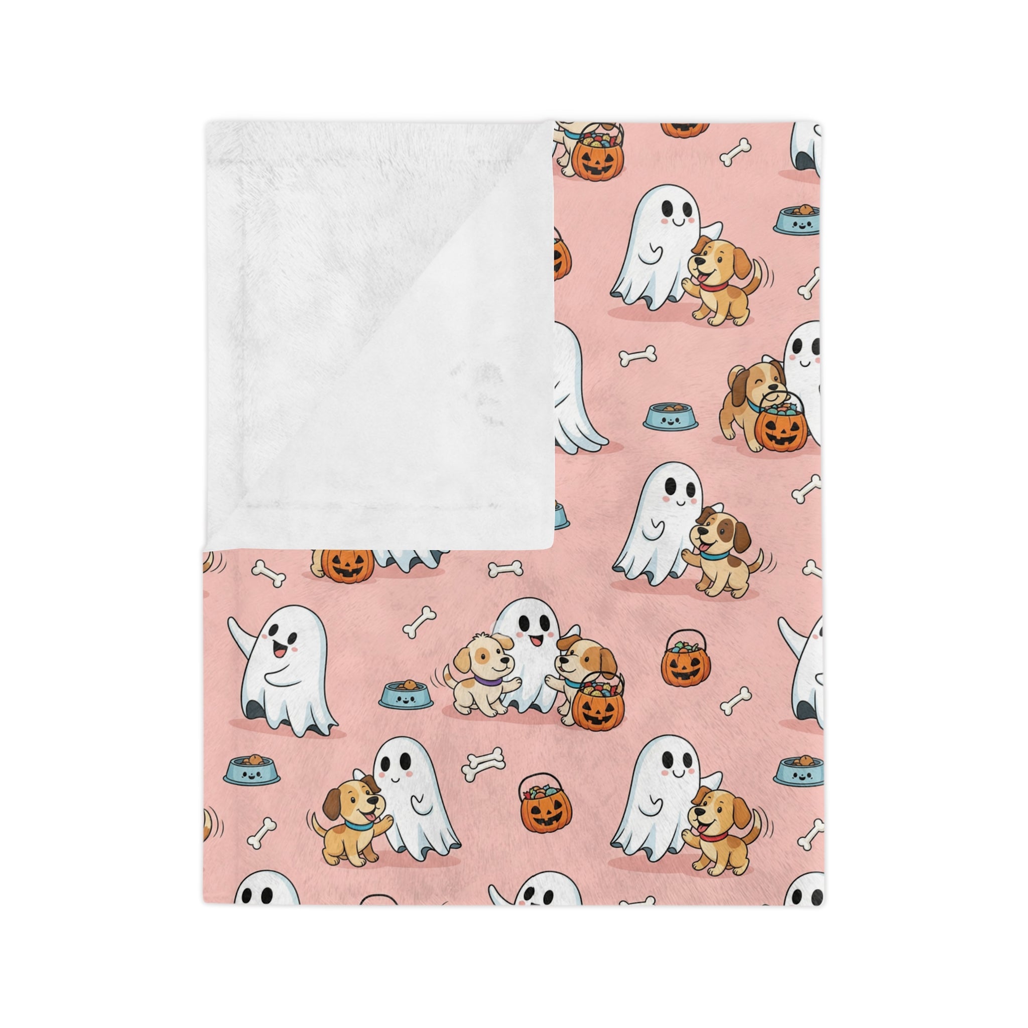 Ghostly Fun Velveteen Microfiber Blanket | Cozy Fall Decor, Halloween Blanket, Cute Pet Lovers Gift, Cartoon Ghost Design