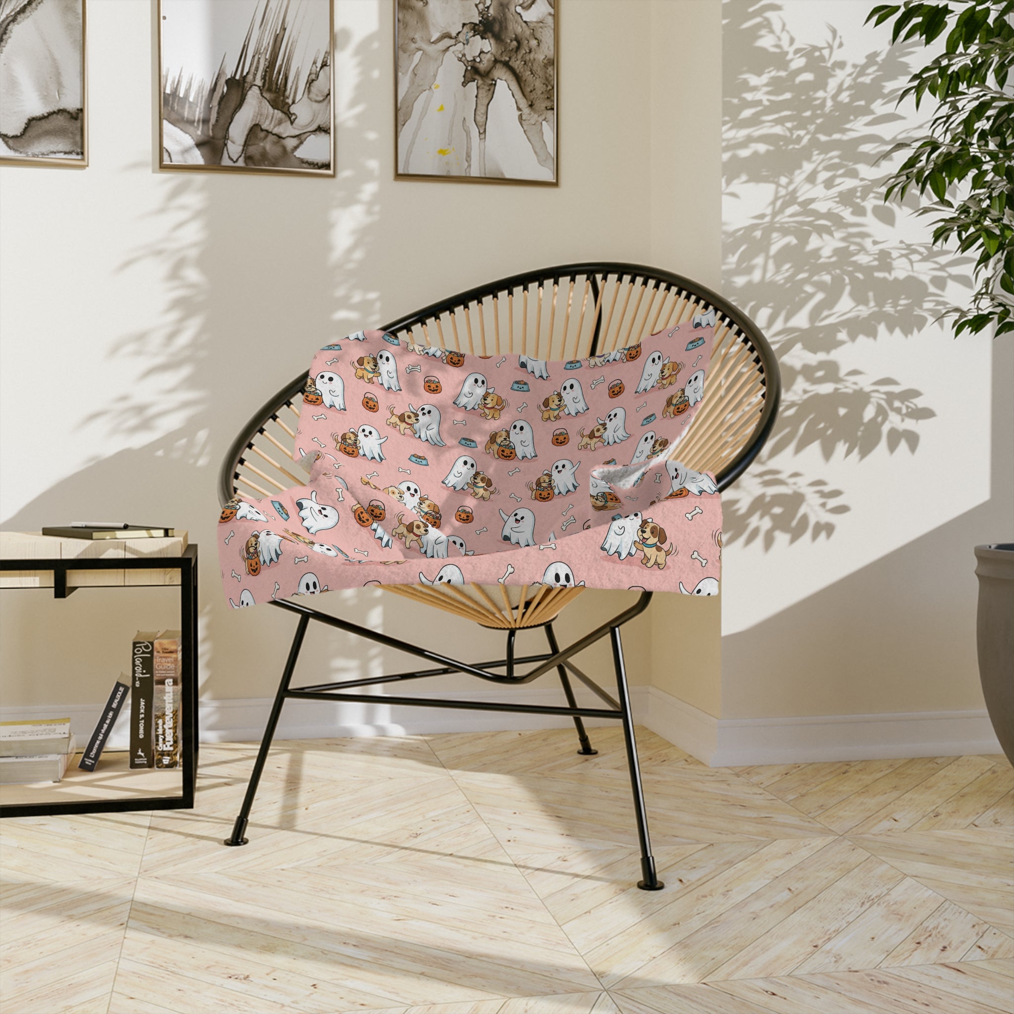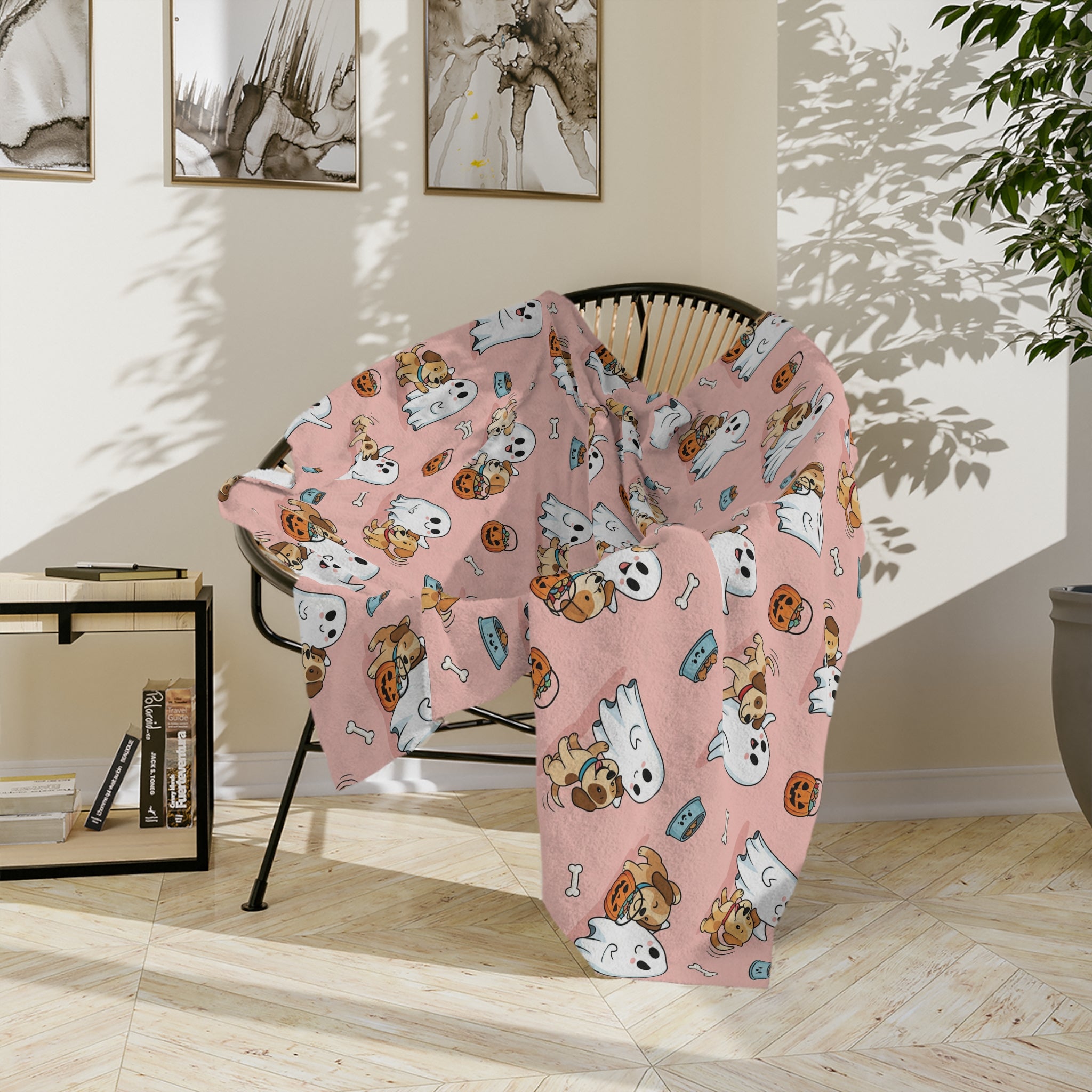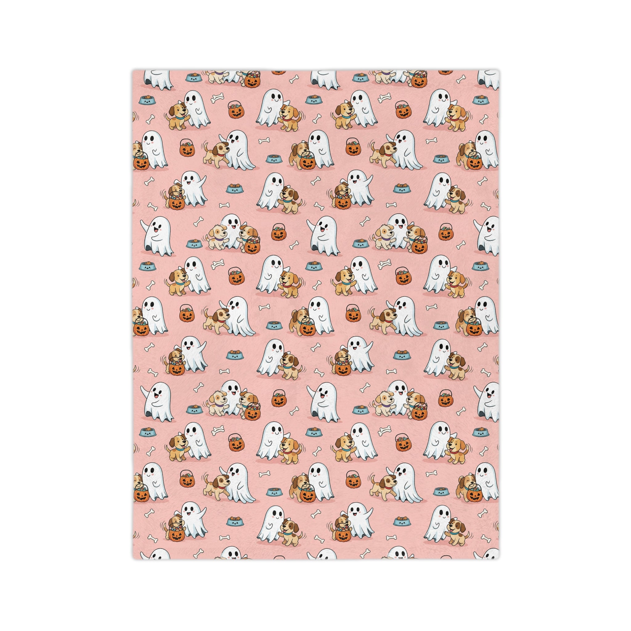 Ghostly Fun Velveteen Microfiber Blanket | Cozy Fall Decor, Halloween Blanket, Cute Pet Lovers Gift, Cartoon Ghost Design