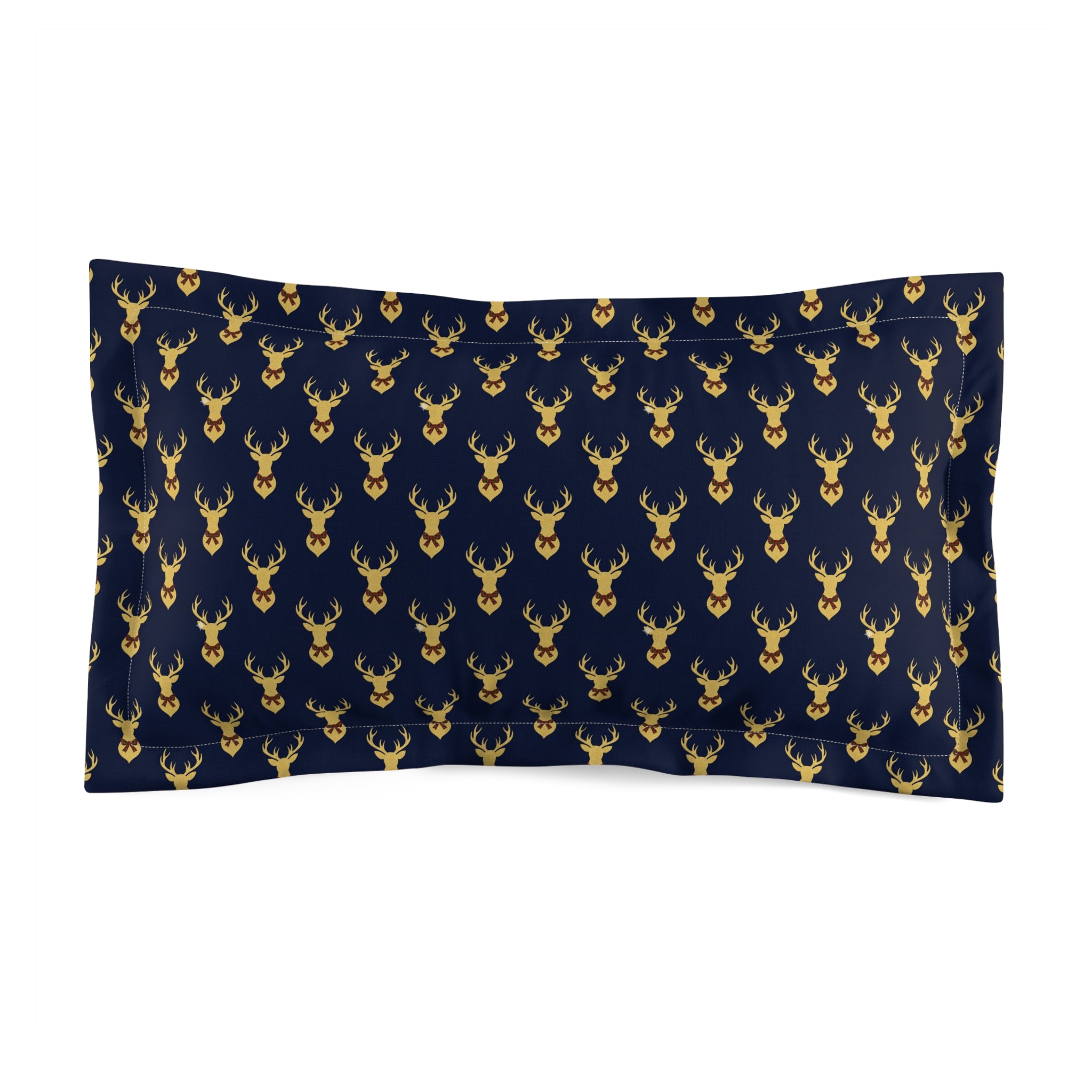 Deep navy microfiber with a repeating gold stag silhouette brings quiet lodge charm to a bedroom or reading nook. The sham’s brushed, lightweight weave feels soft against the skin while holding crisp detail in the golden motif. A double-layer envelope closure keeps inserts secure and easy to swap, and the cream-colored back adds a subtle contrast when the sham shifts. Sized to fit multiple pillow formats (insert not included), this piece layers effortlessly with textured throws and warm wool blankets, lending a cozy, slightly rustic elegance to evenings by the fire or a calm weekend at home.