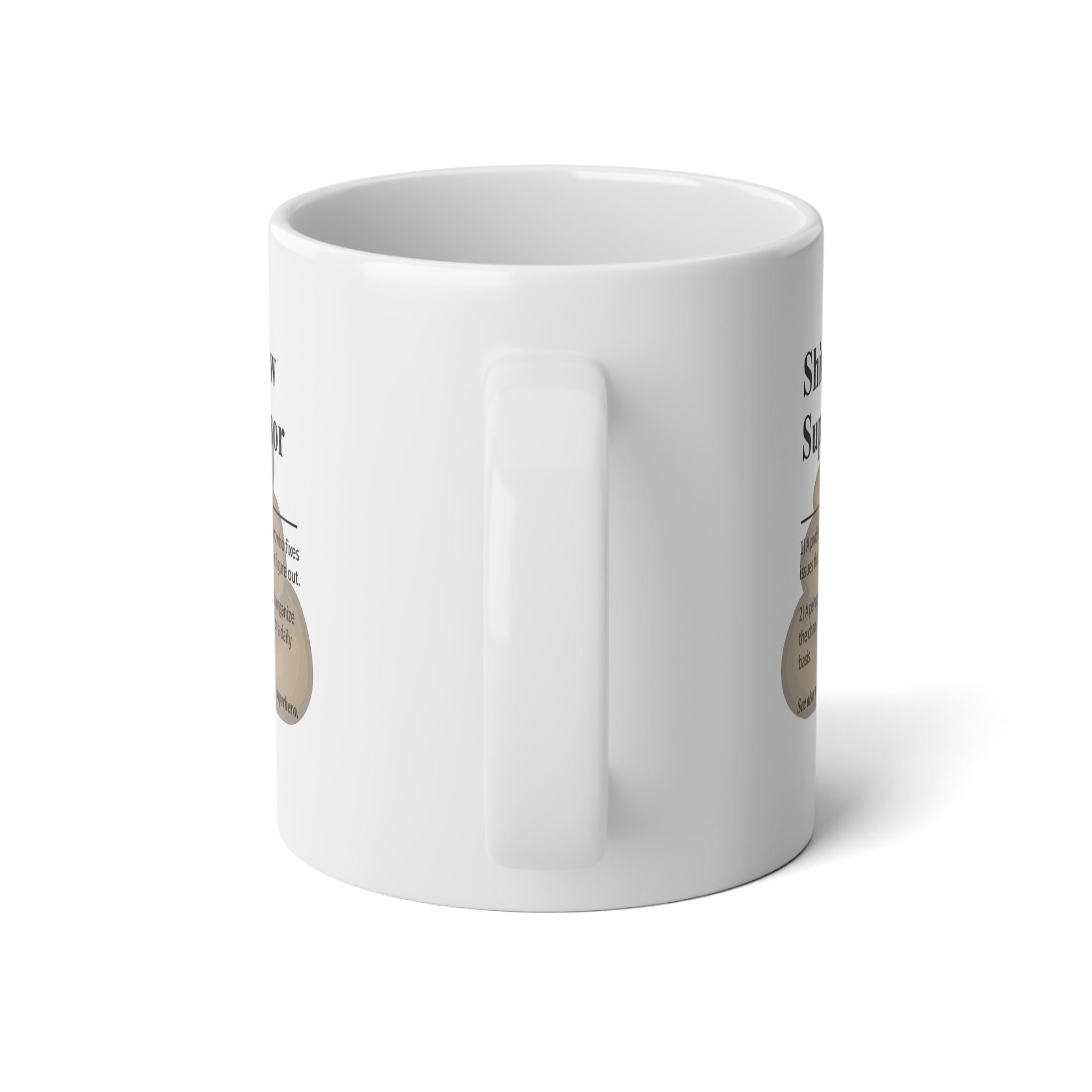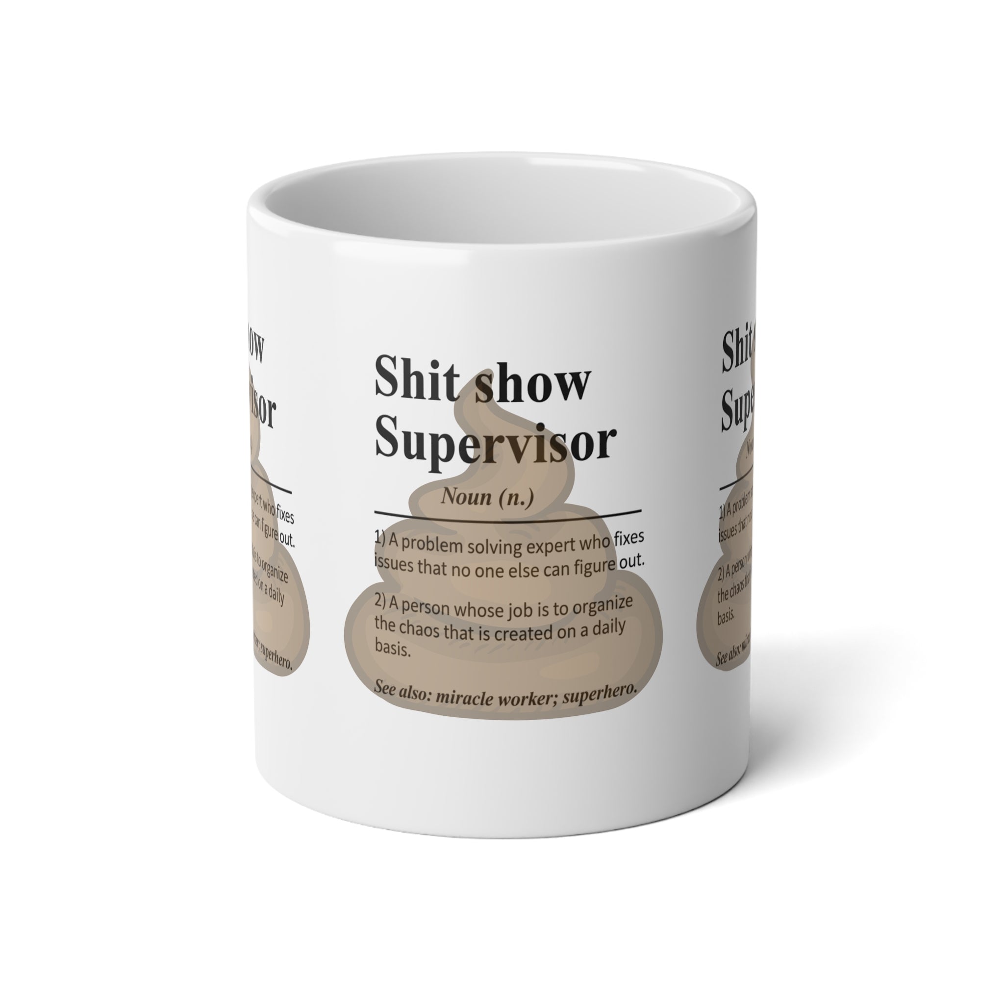 Introducing the perfect Jumbo Mug for your morning routine or cozy evenings. This 20oz ceramic mug brings a blend of humor and practicality, featuring vibrant colors and a glossy finish that will brighten your day. Its eye-catching design is perfect for adding a playful touch to your kitchen decor or work desk. Whether you're sipping coffee, tea, or hot chocolate, this mug is microwave-safe, making it a convenient choice. Ideal for supervisors, team leaders, or anyone who appreciates a lighthearted take on work life, this mug makes a great gift for birthdays, office parties, or just to treat yourself. Elevate your beverage experience with this cheerful companion to your favorite moments!