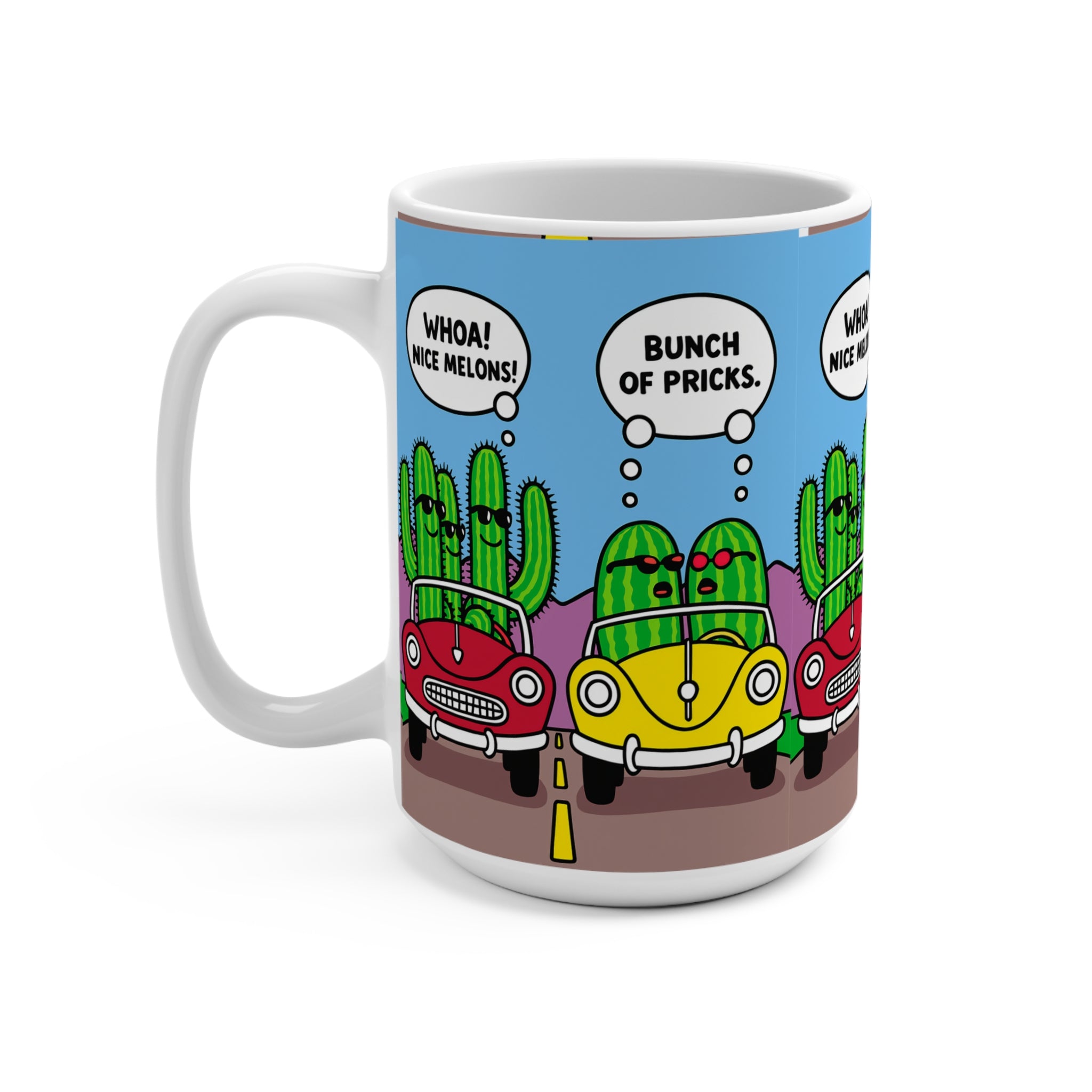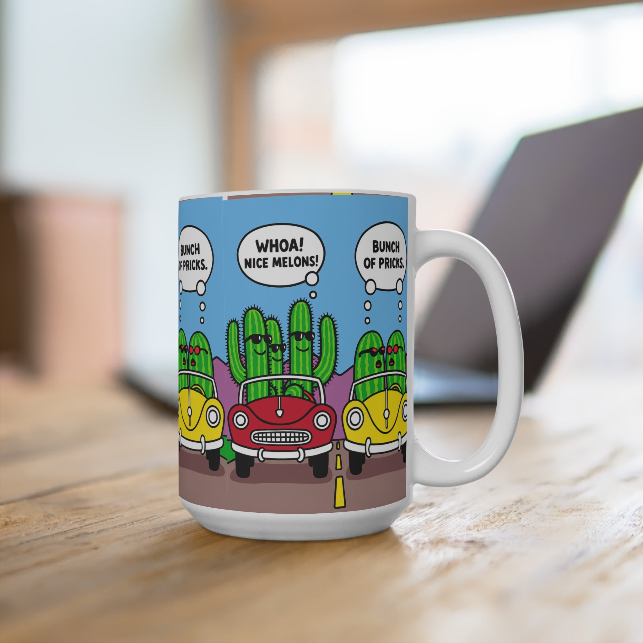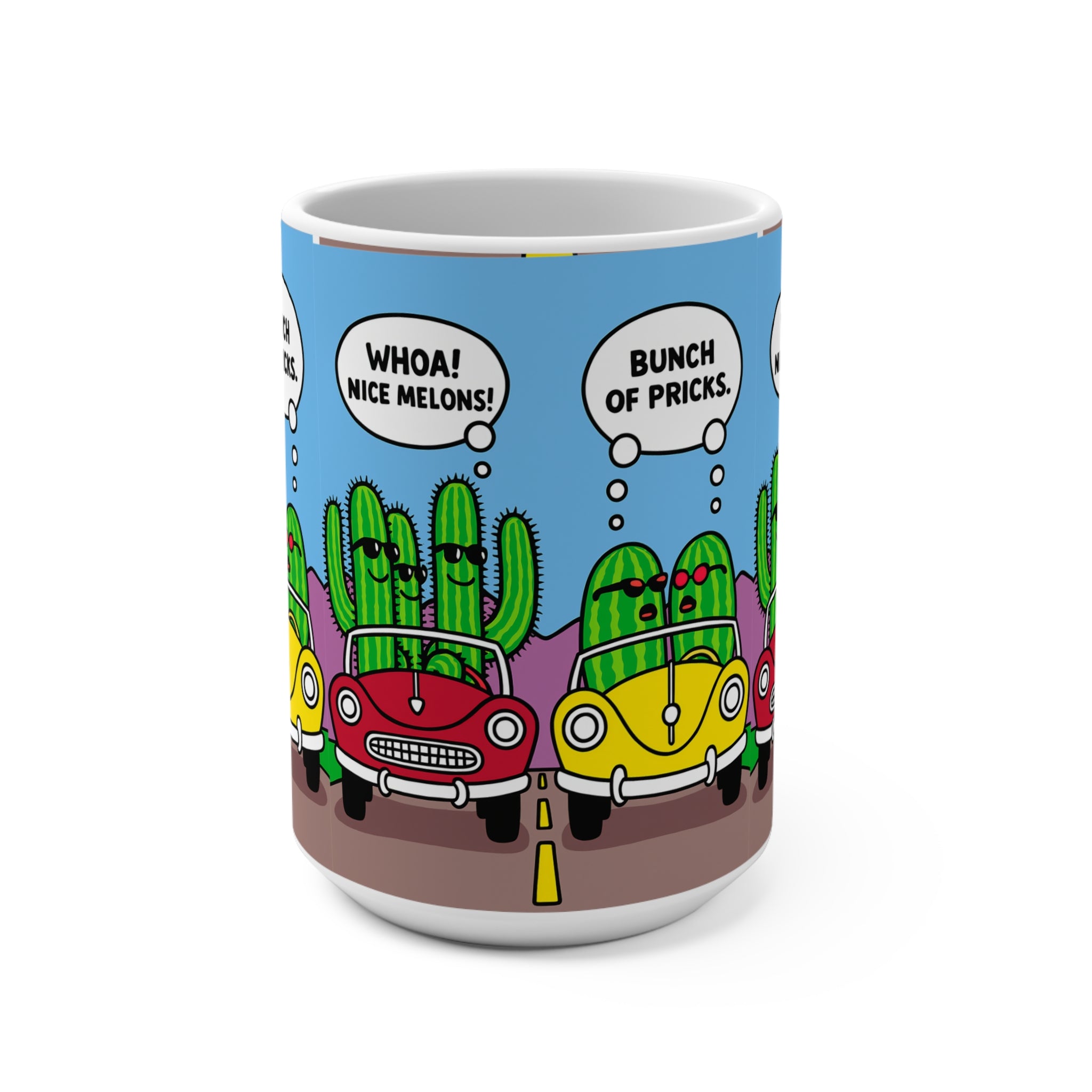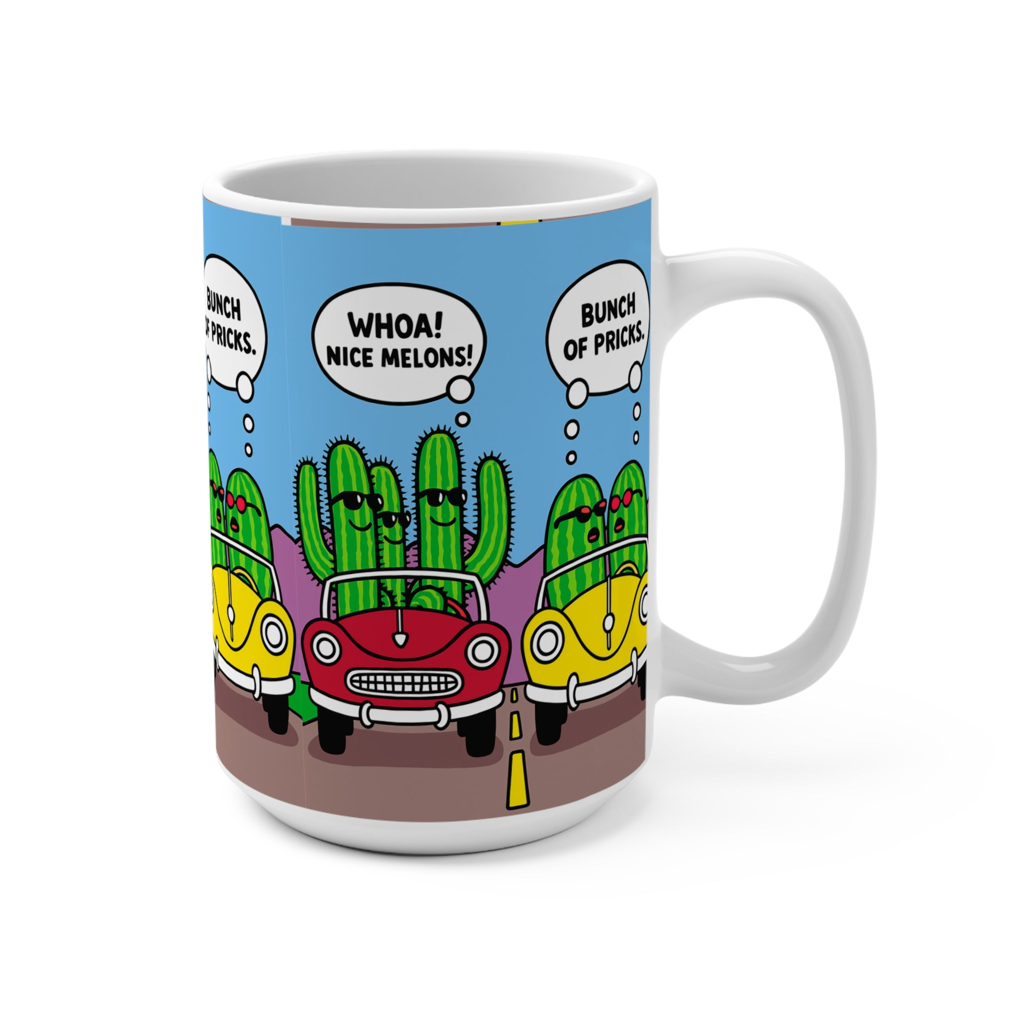 Brighten your morning routine with this charming 15oz mug, featuring a playful cactus design that brings a lighthearted vibe to your coffee or tea time. Perfect for plant lovers and anyone with a sense of humor, this mug is an excellent companion for enjoying your favorite hot beverages. Ideal for use at home or in the office, it brings a smile and a dose of joy to every sip. Whether you're celebrating birthdays, holidays, or just another day, this mug is a delightful gift option for friends and family who appreciate fun and quirky designs. Make it part of your collection or gift it to someone who needs a little cheer in their day!