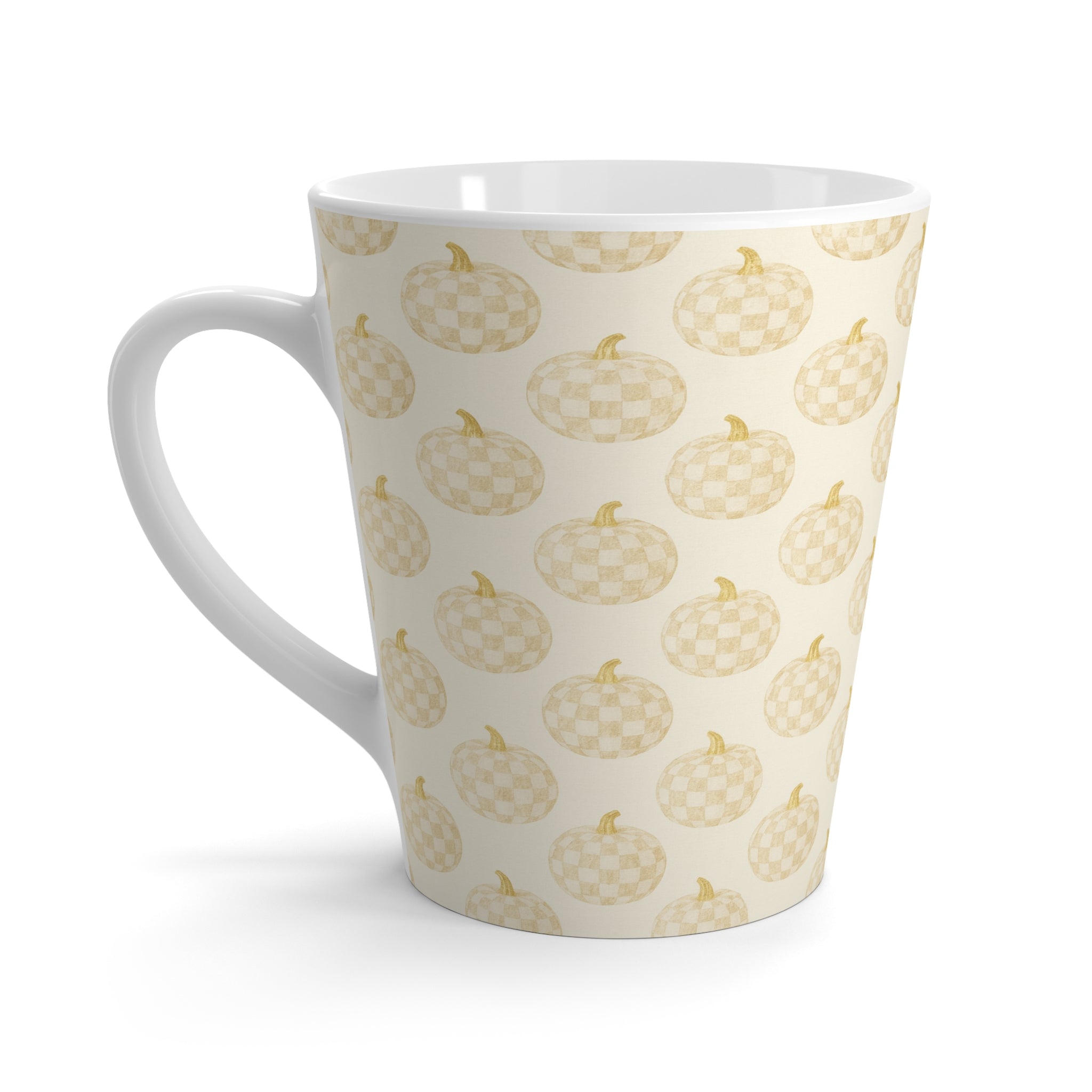 Chic Checkered Pumpkin Patch Latte Mug | Cozy Fall Coffee Cup | Seasonal Decor | Autumn Vibes | Gift for Pumpkin Lovers, Cute Kitchenware