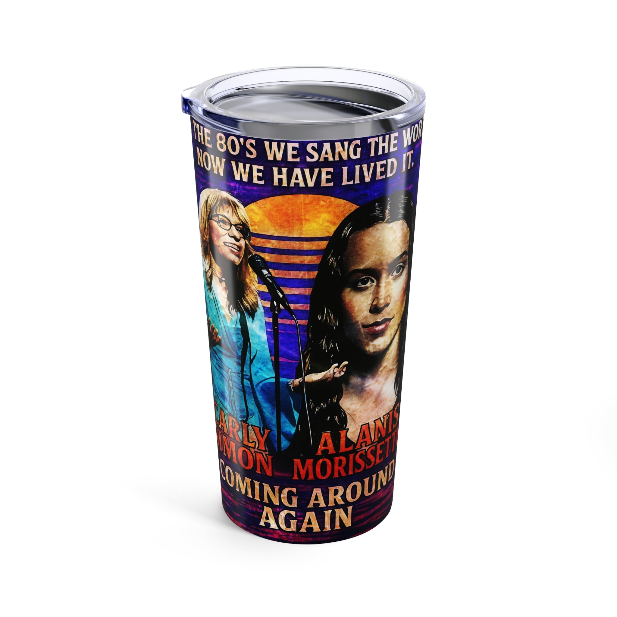 Retro 80s Inspired Tumbler 20oz Featuring Carly Simon and Alanis Morrissette- Coming Around Again