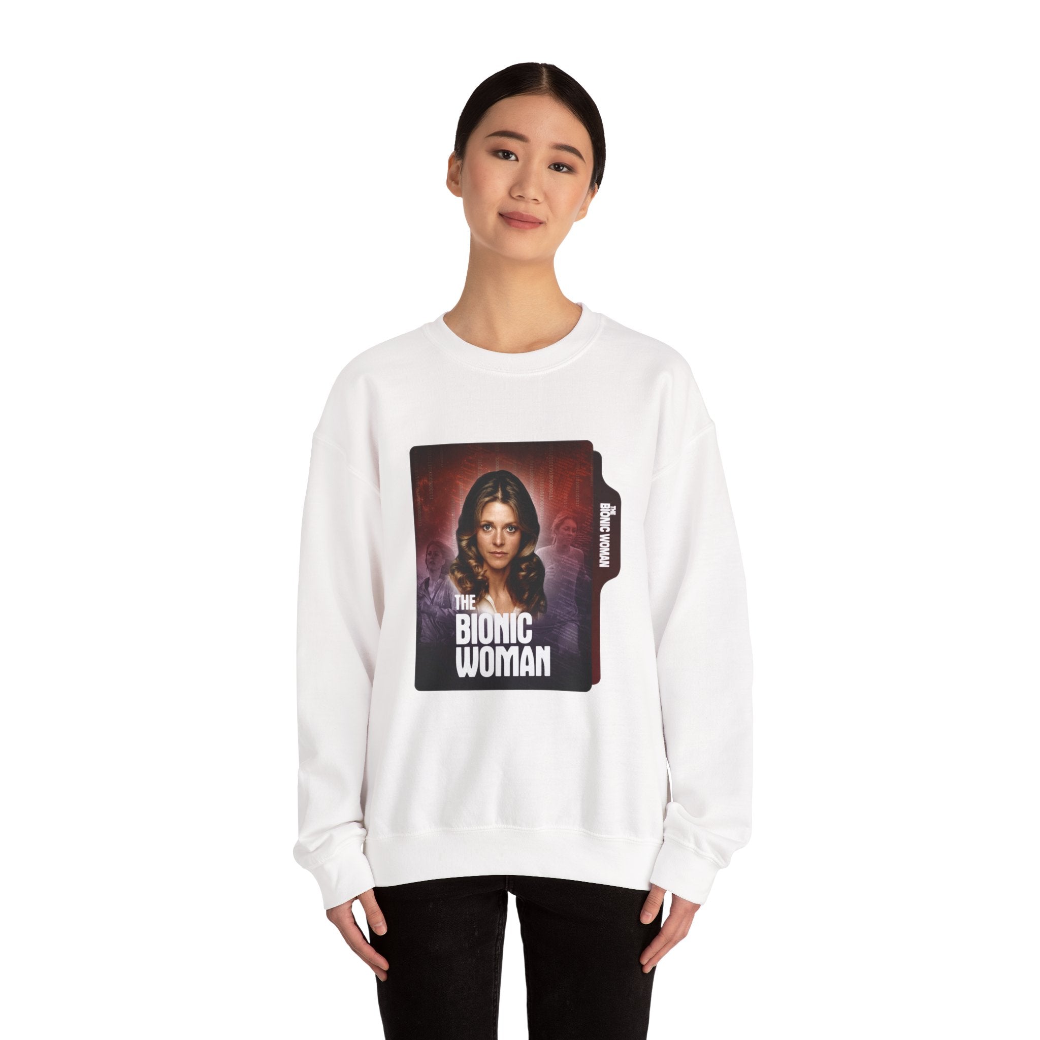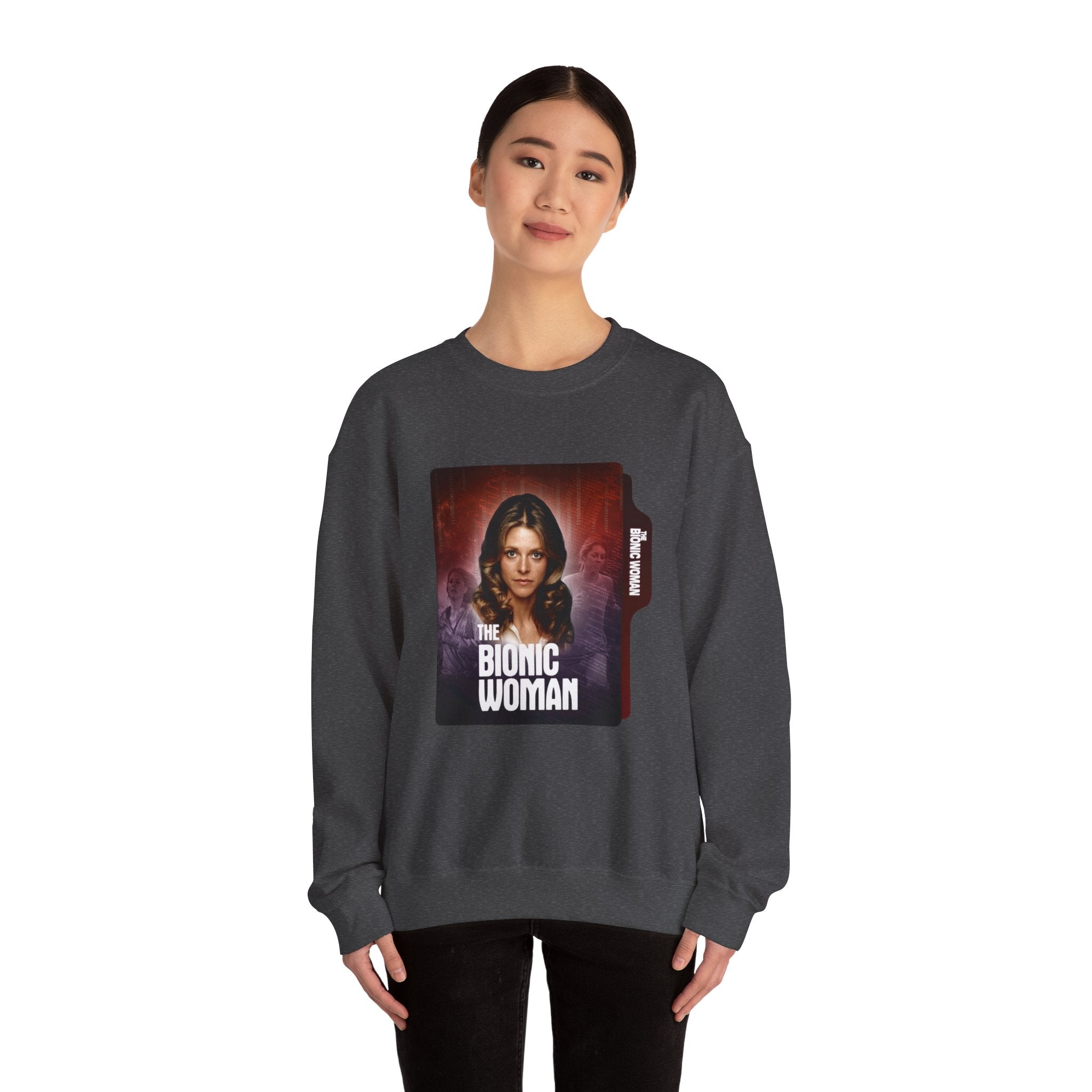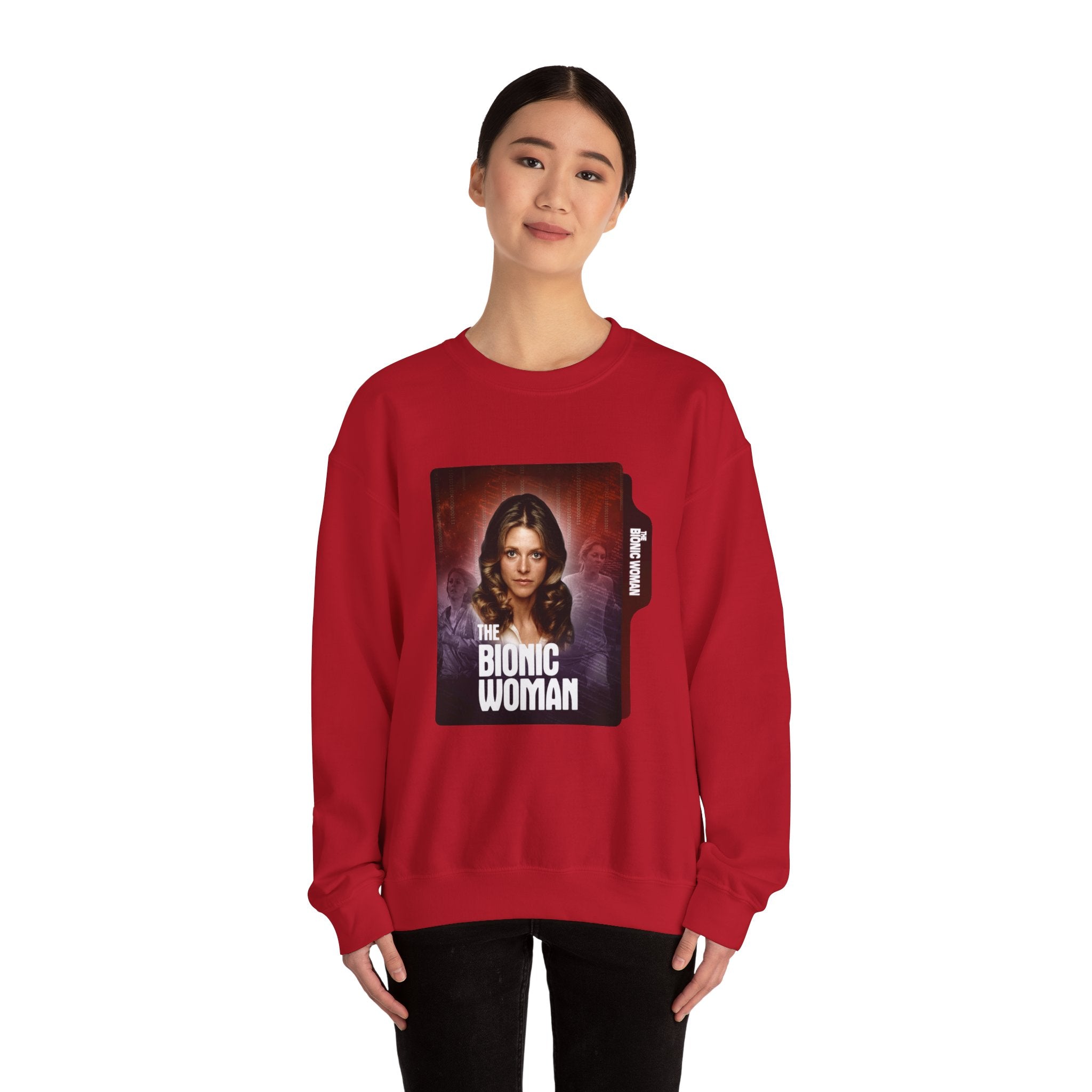 Retro Bionic Woman Crewneck Sweatshirt - Cozy Vintage Style, Unisex Gift, Perfect for Pop Culture Fans, Fall Fashion, Holiday Apparel