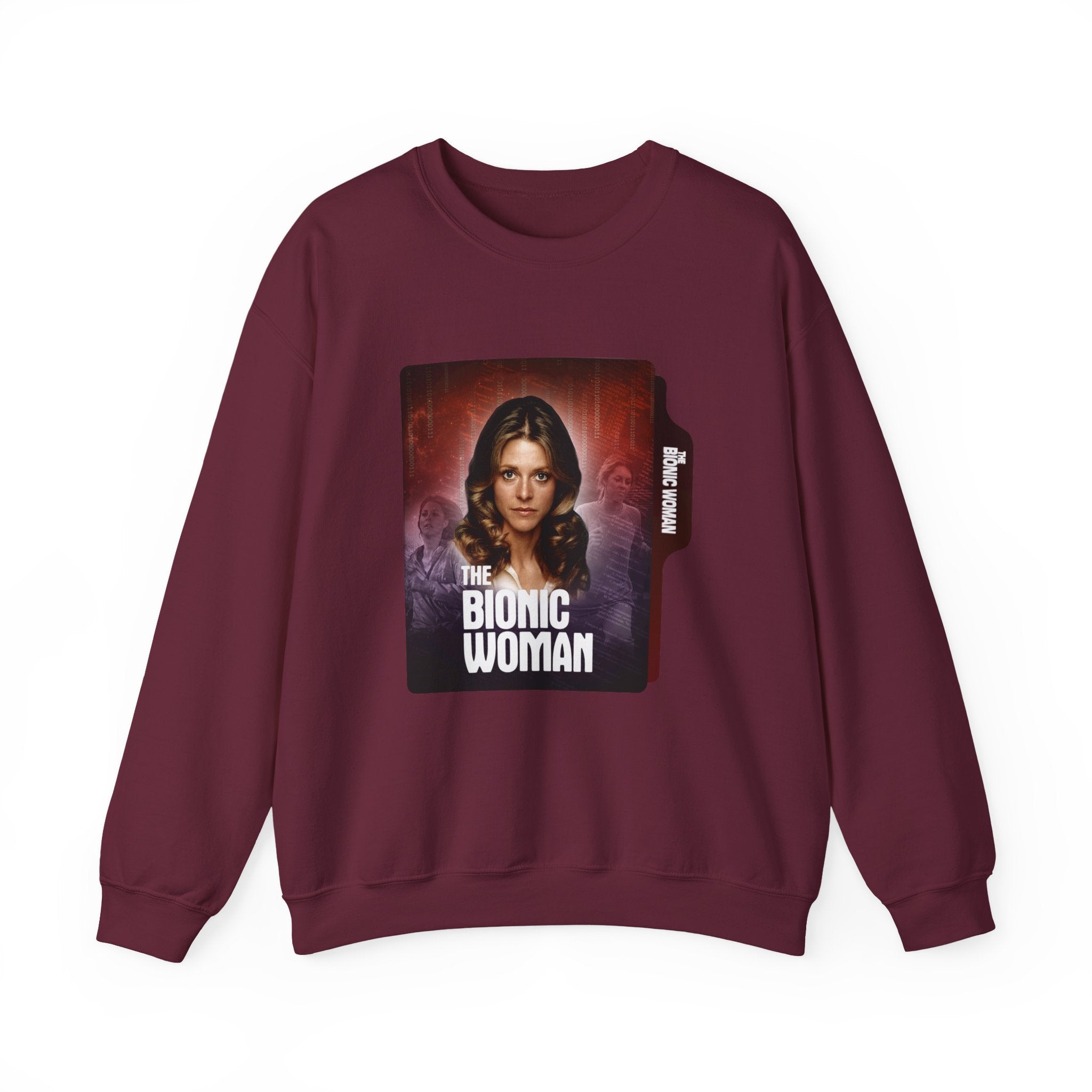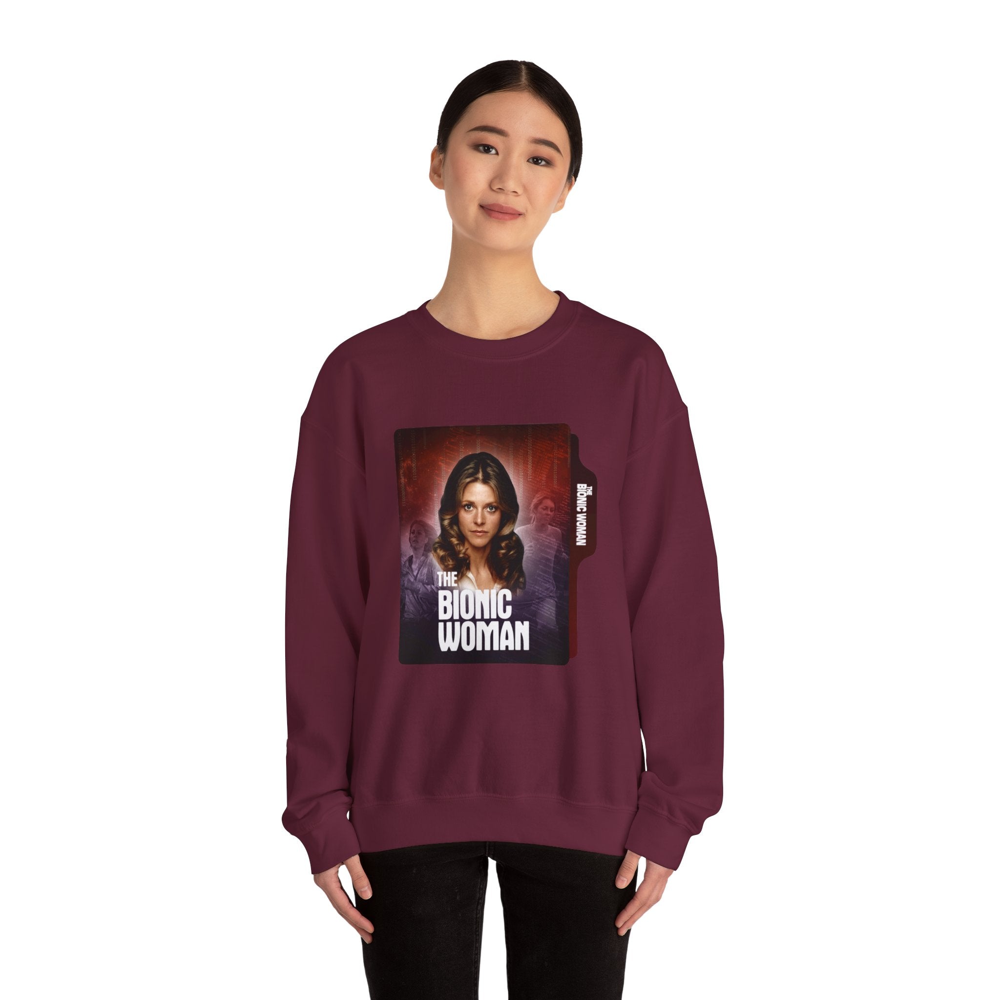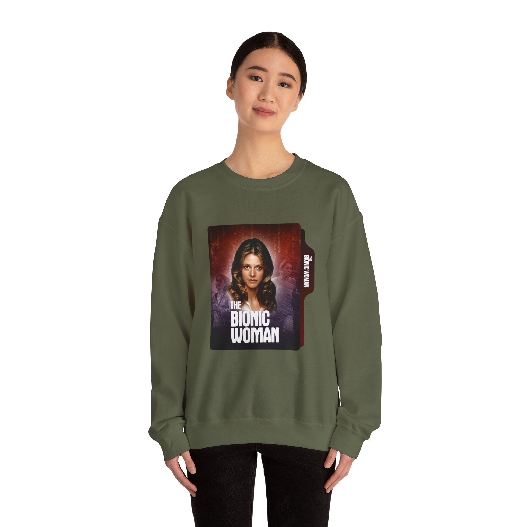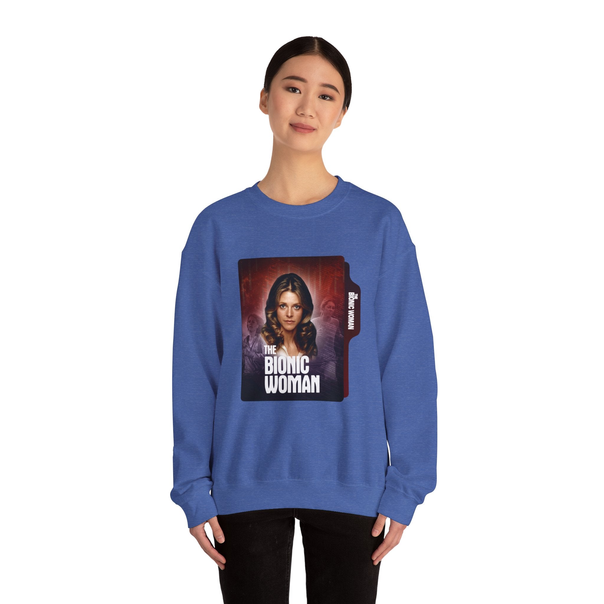 Retro Bionic Woman Crewneck Sweatshirt - Cozy Vintage Style, Unisex Gift, Perfect for Pop Culture Fans, Fall Fashion, Holiday Apparel