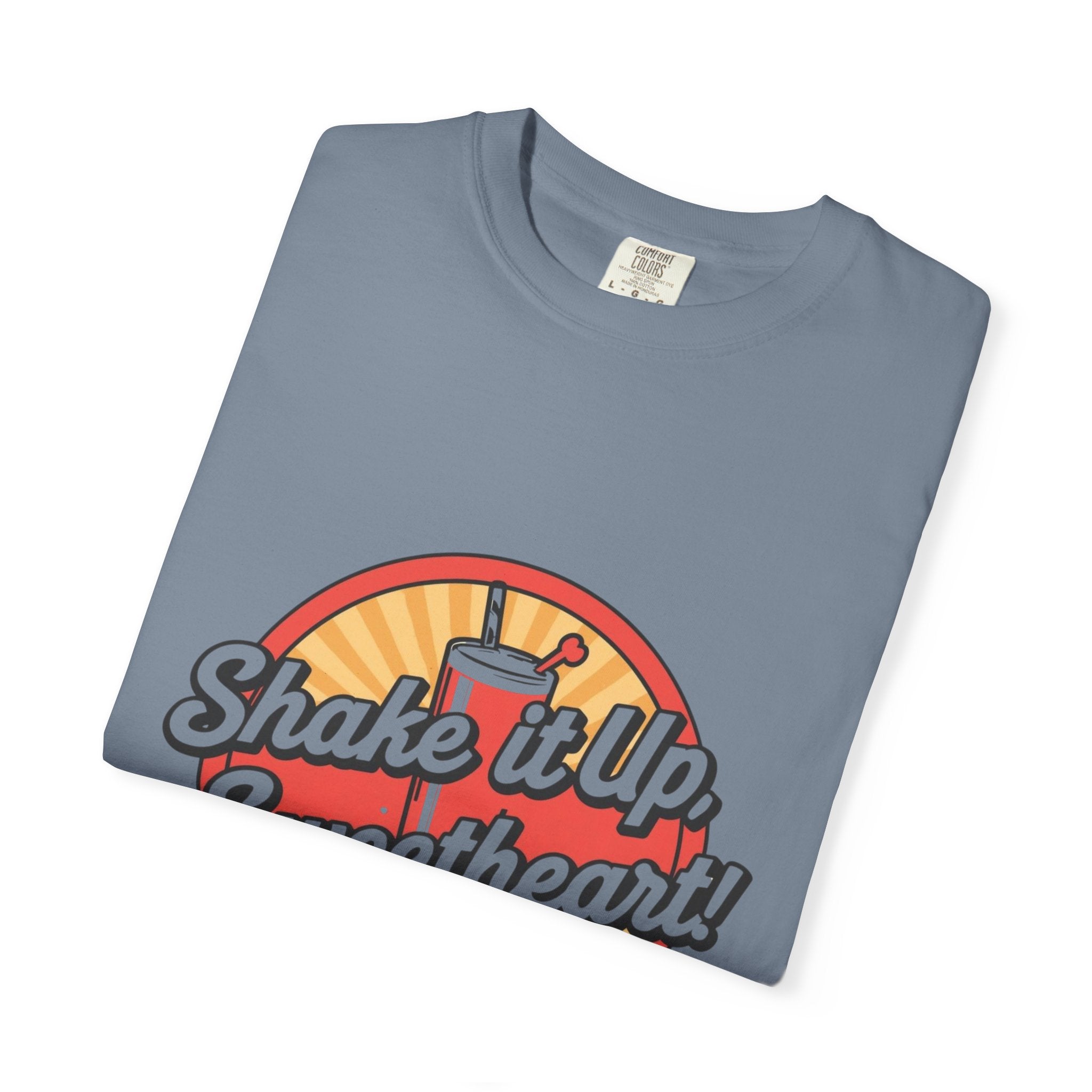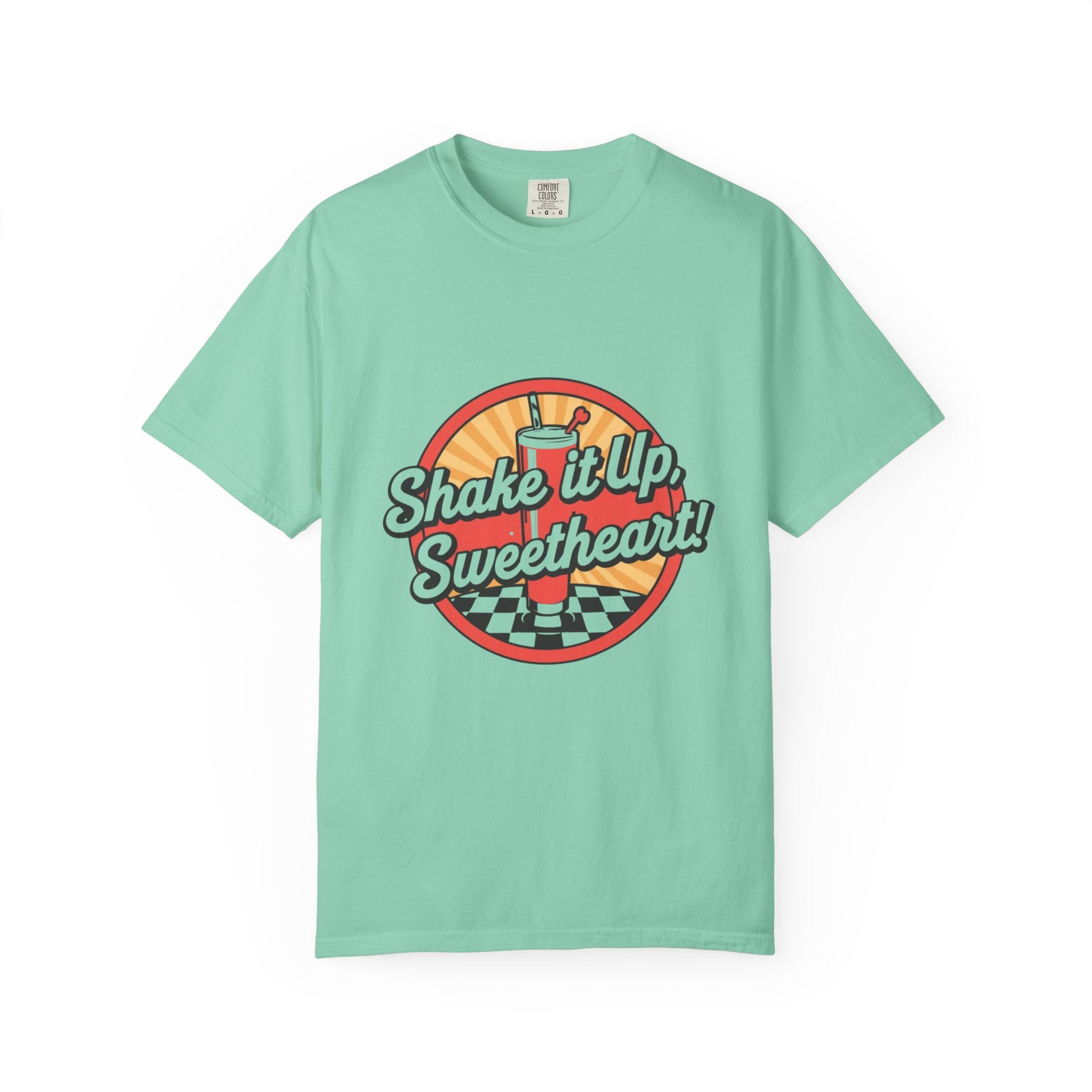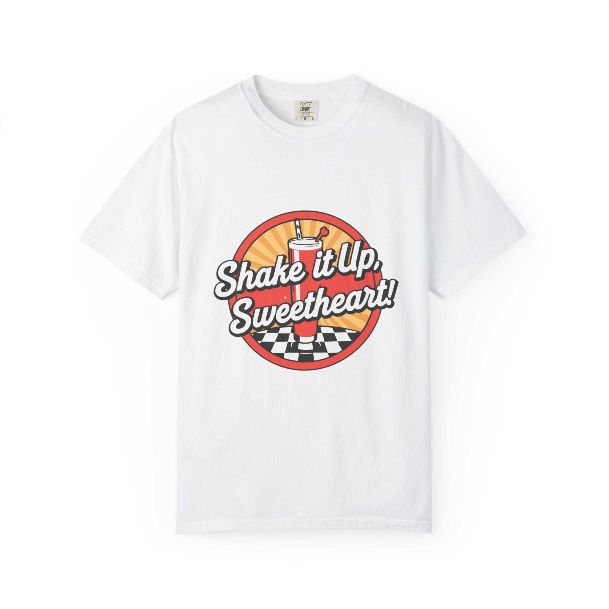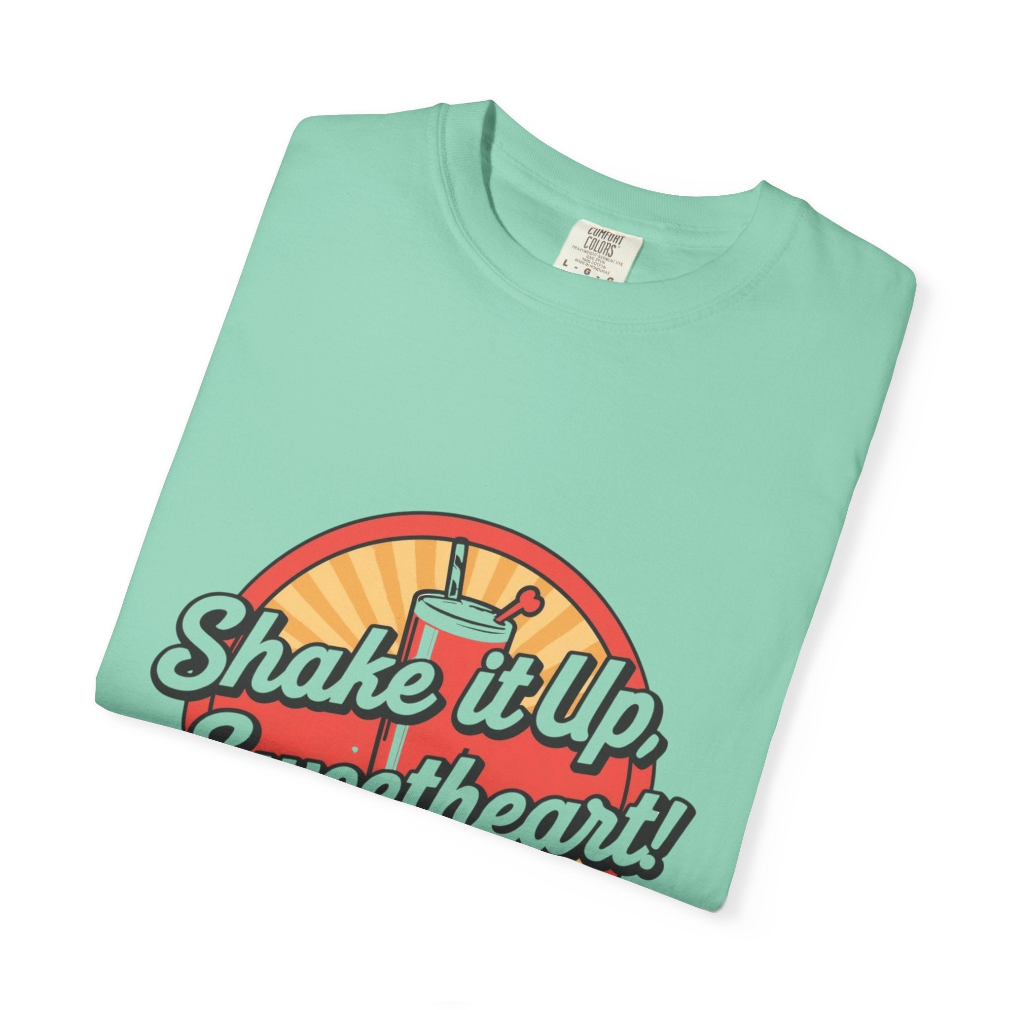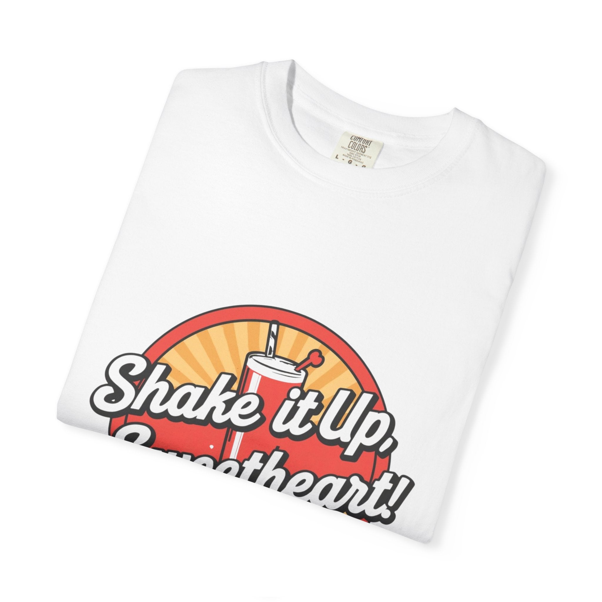 Retro Diner T-Shirt — “Shake it Up, Sweetheart!” Vintage Soda Shop Graphic