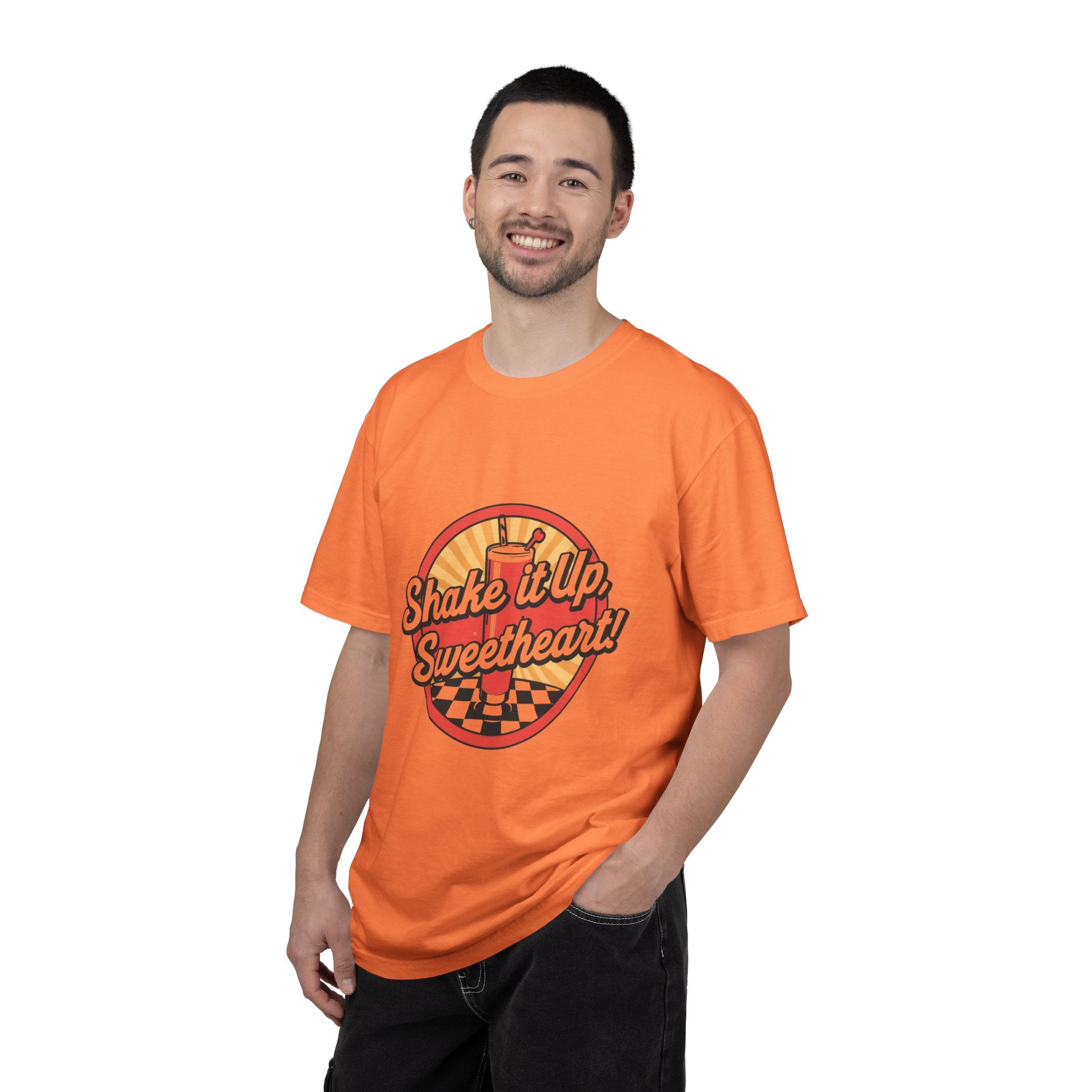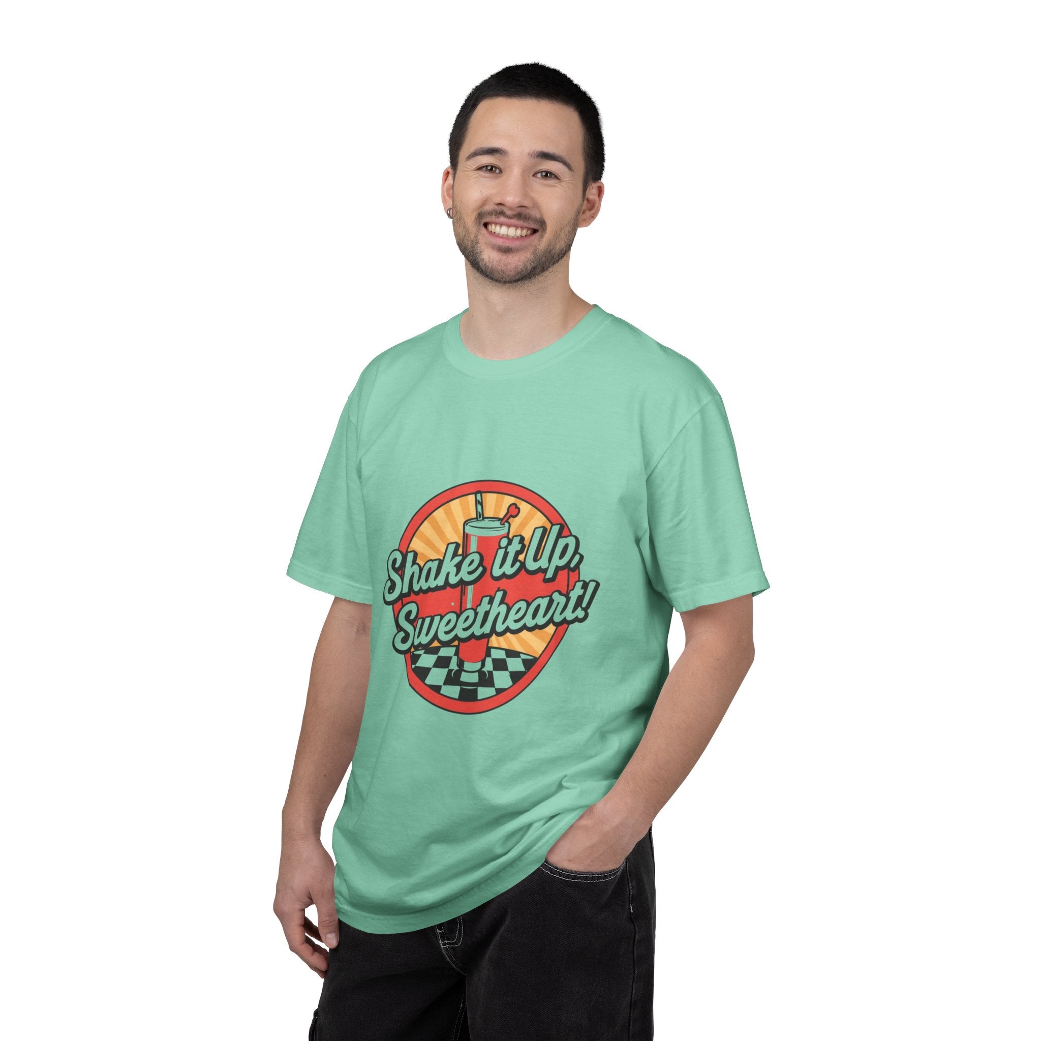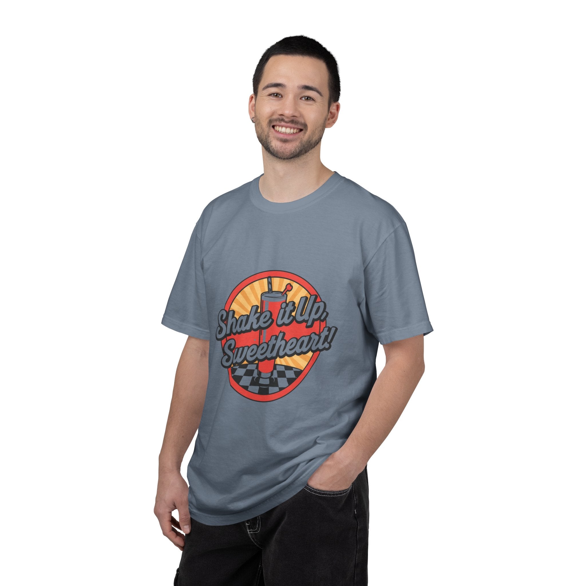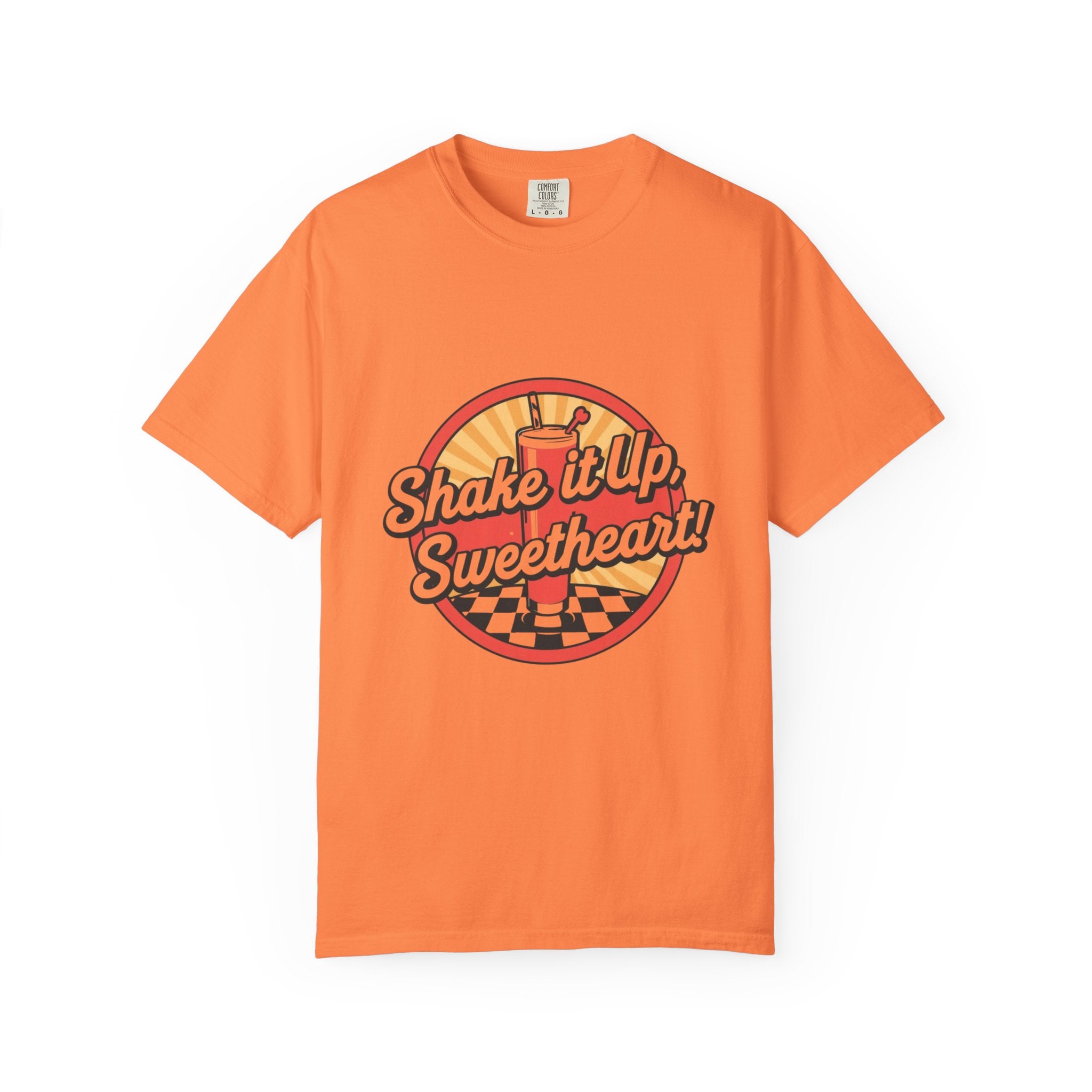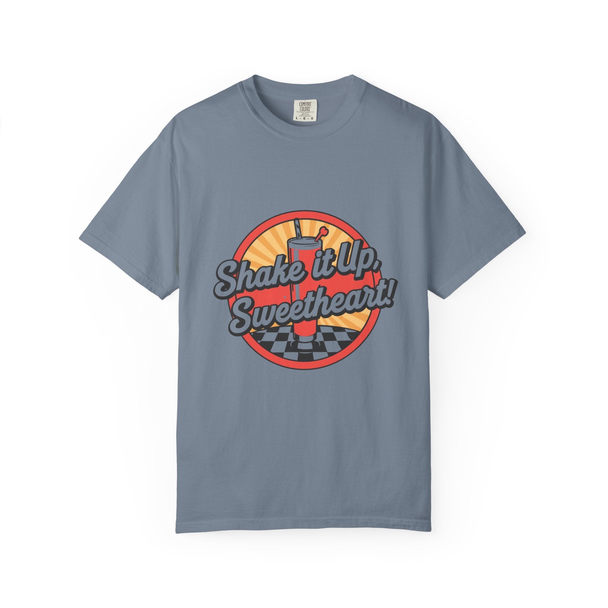 Retro Diner T-Shirt — “Shake it Up, Sweetheart!” Vintage Soda Shop Graphic