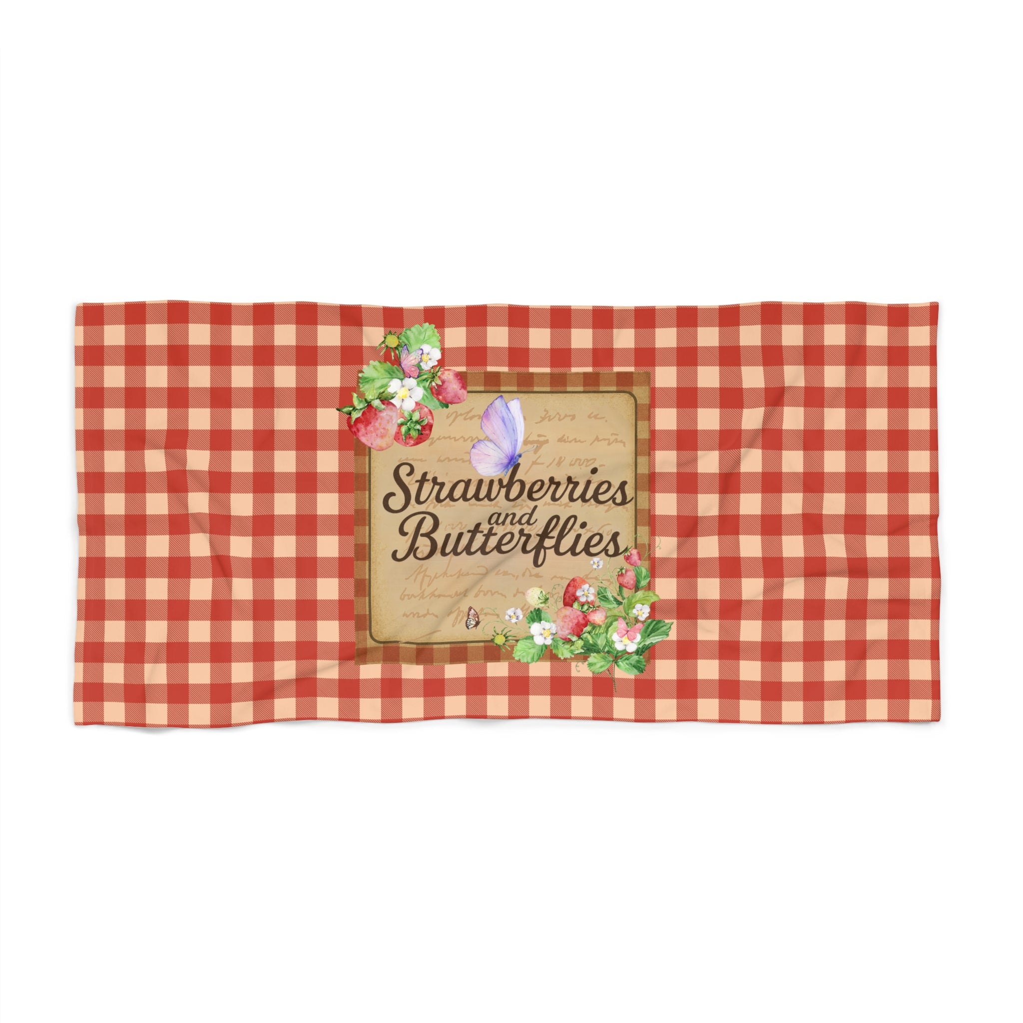 Strawberries and Butterflies Beach Towel, Summer Vibes, Poolside