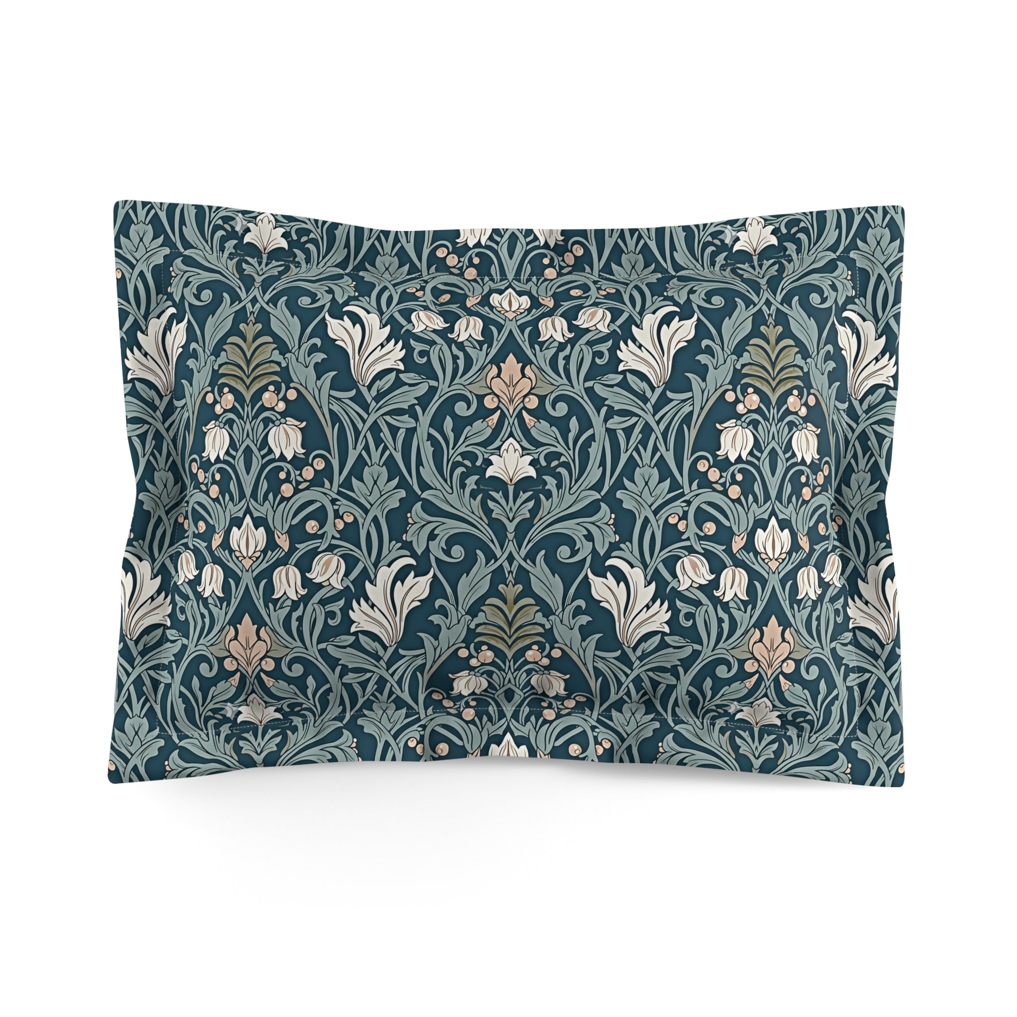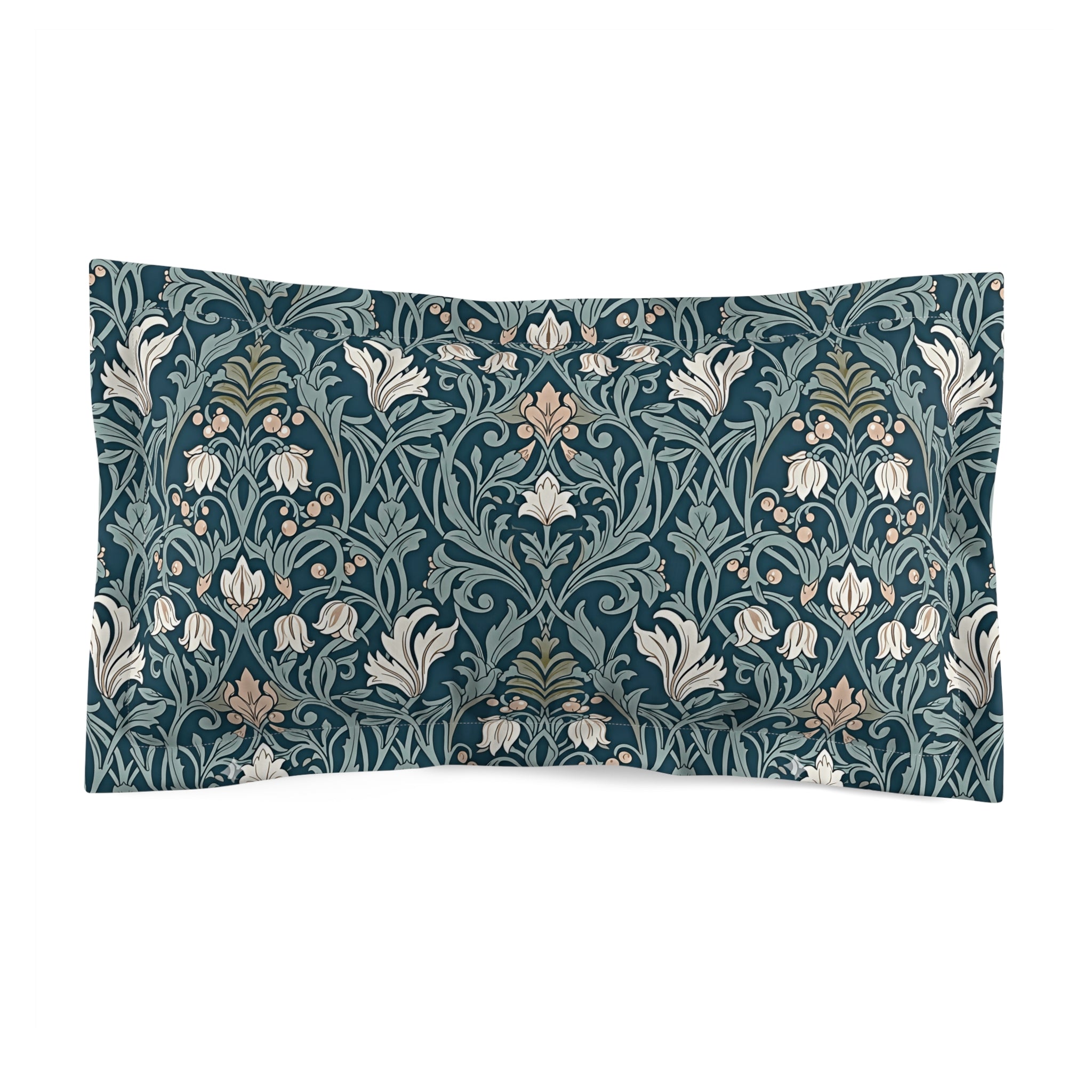 Vintage Floral Navy Green Microfiber Pillow Sham