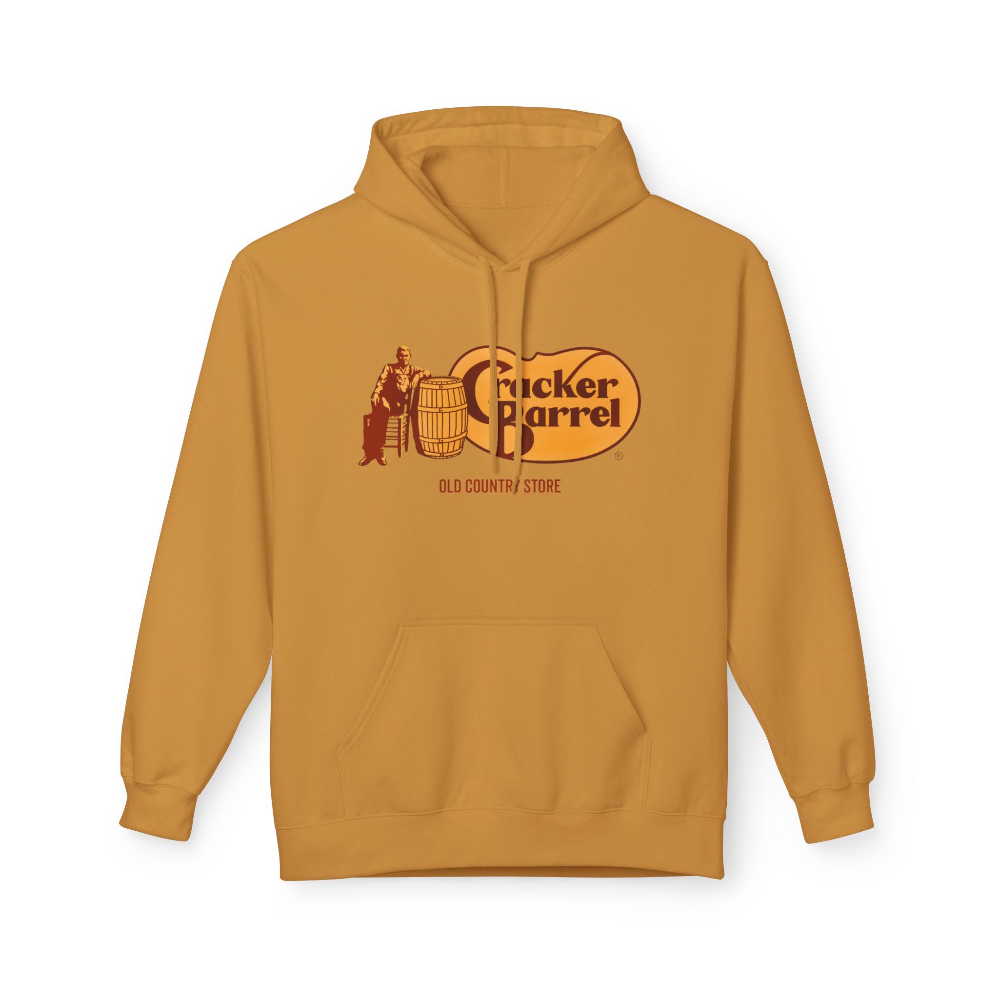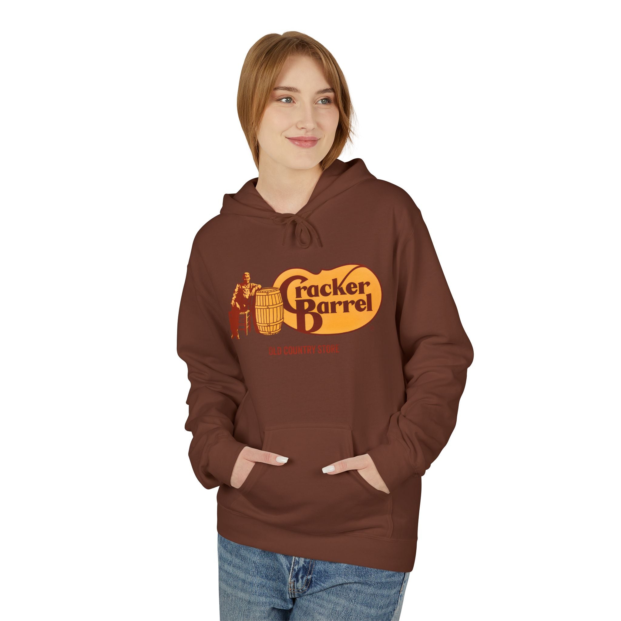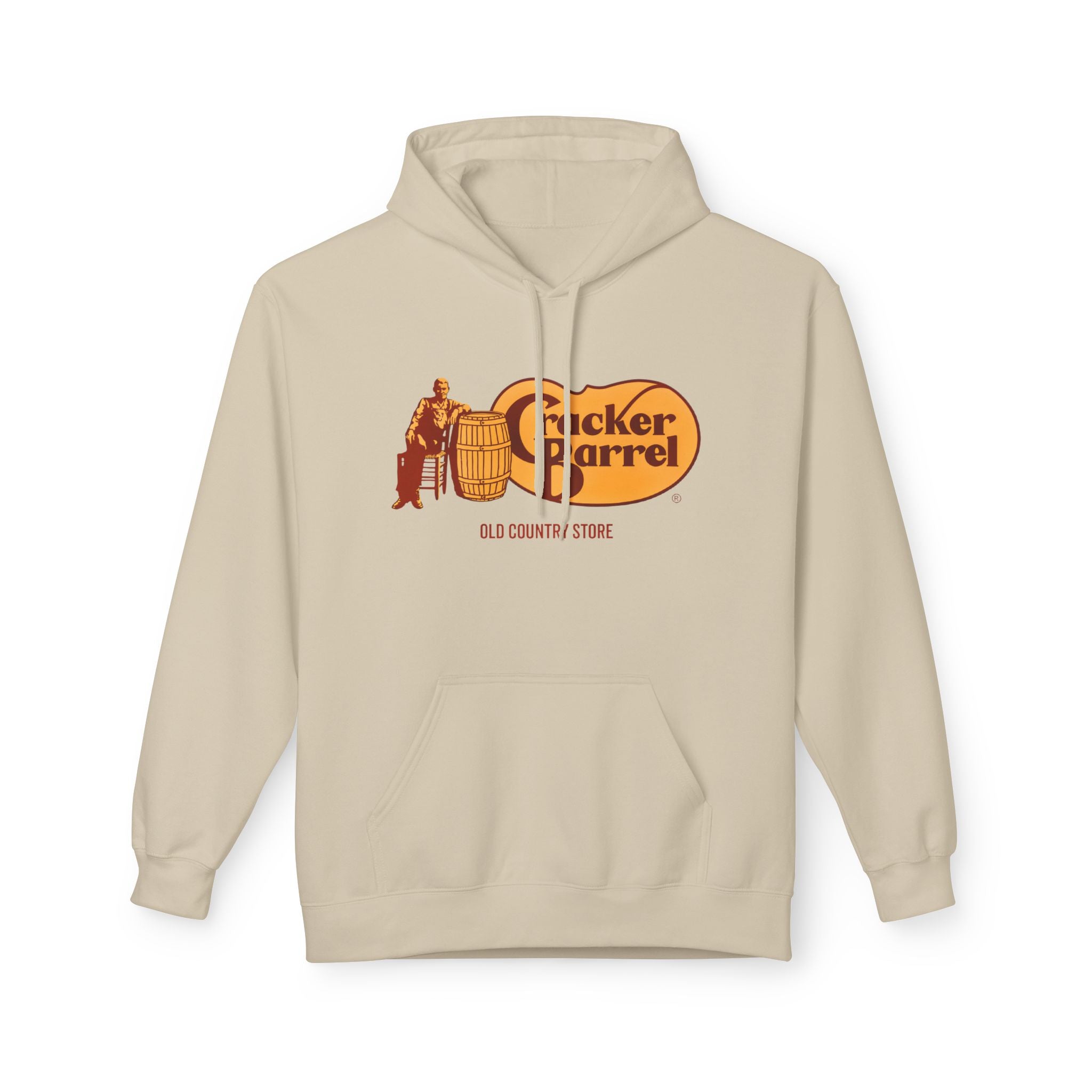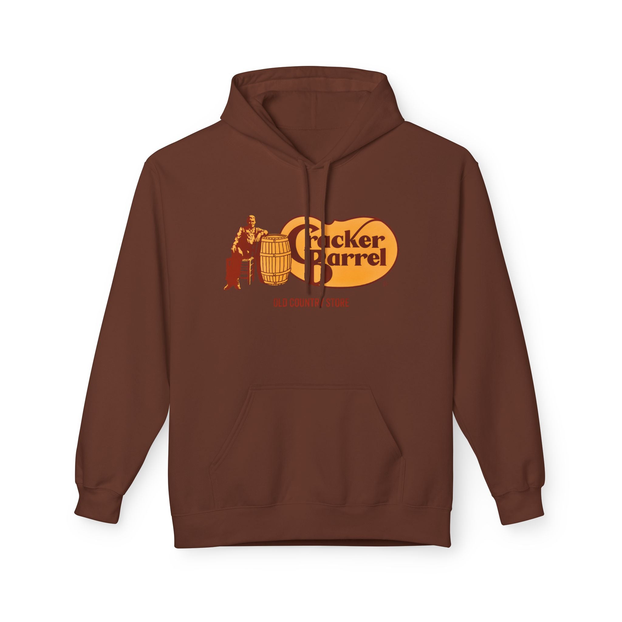 Vintage-Style Cracker Barrel Fleece Hoodie | Cozy Unisex Pullover for Casual Wear, Outdoor Adventures, Holidays, Gift Ideas