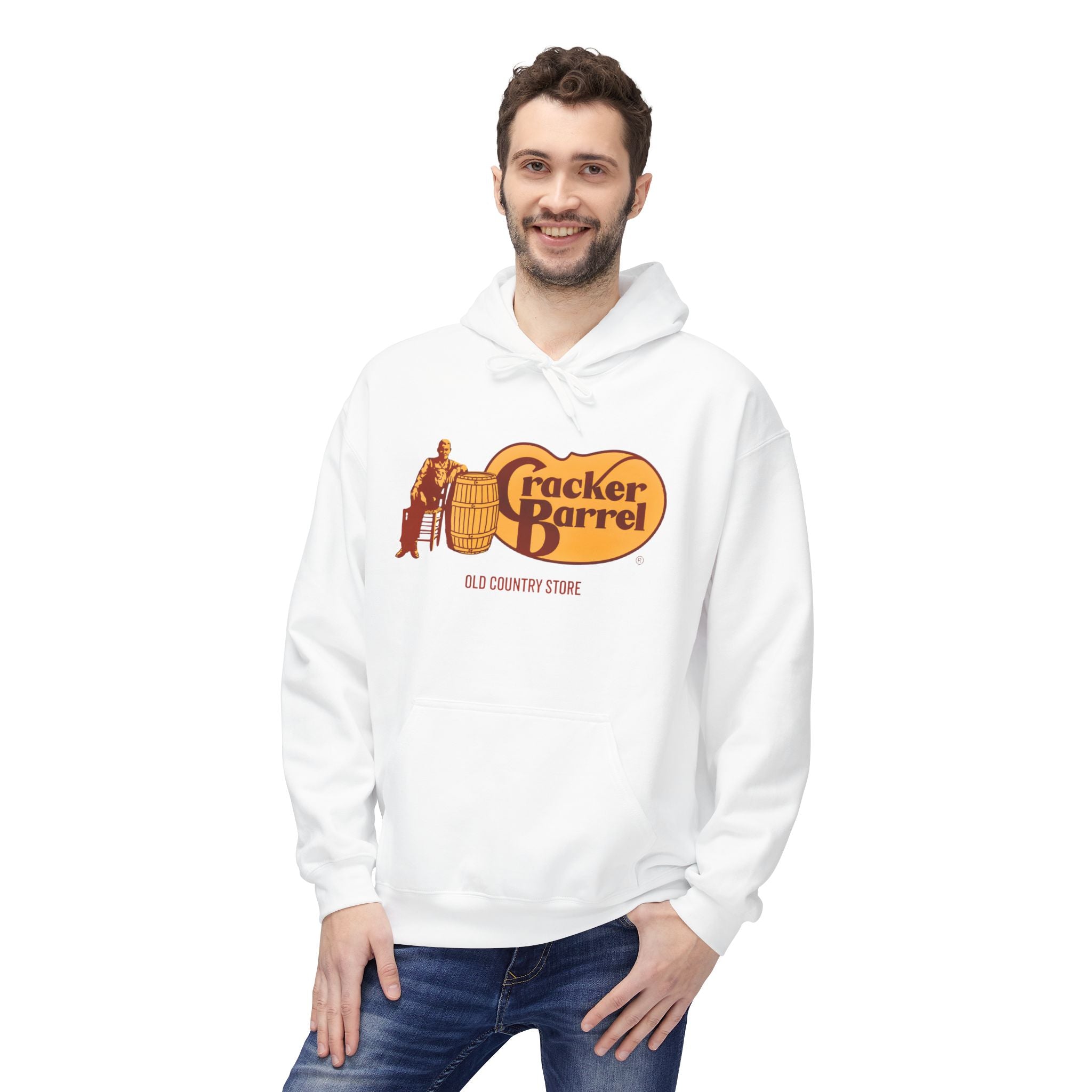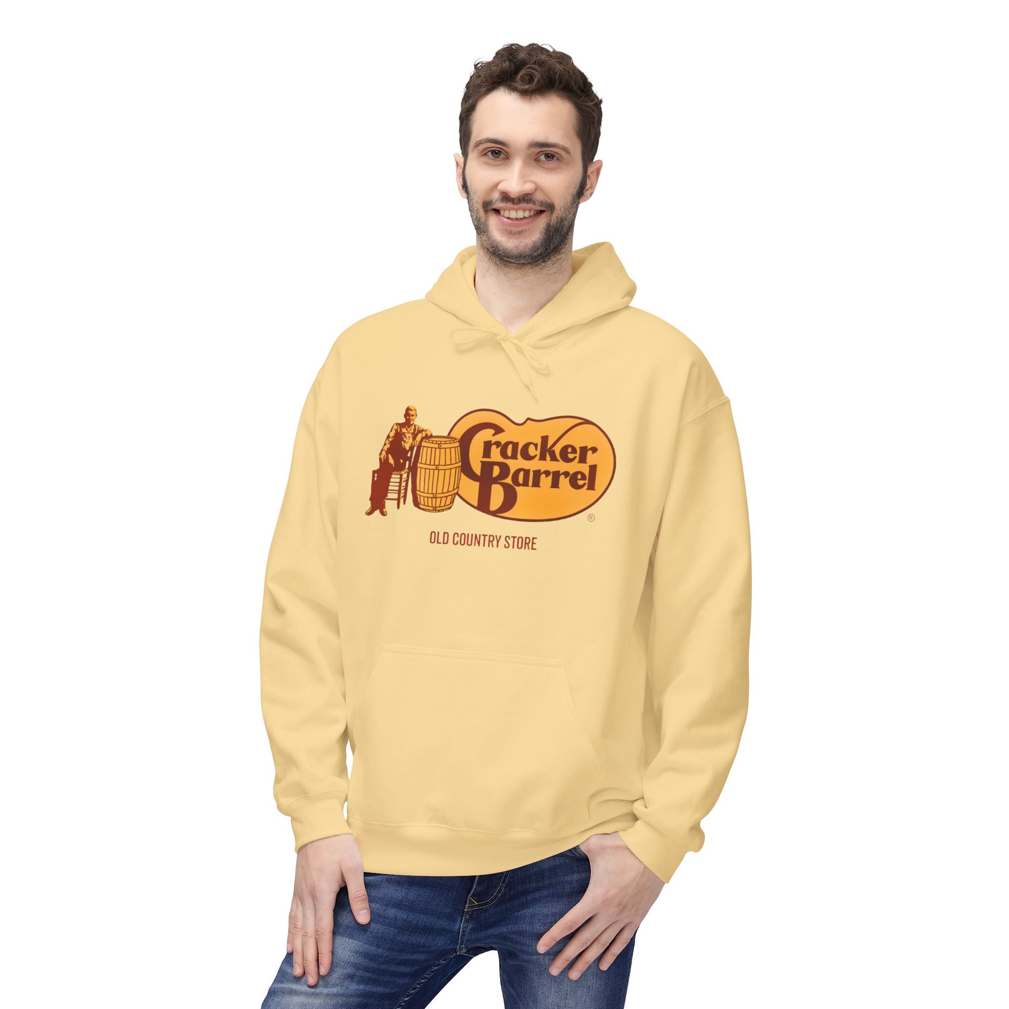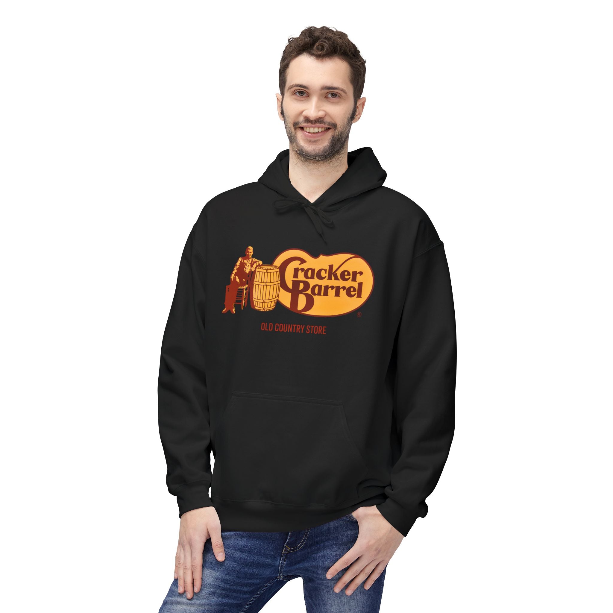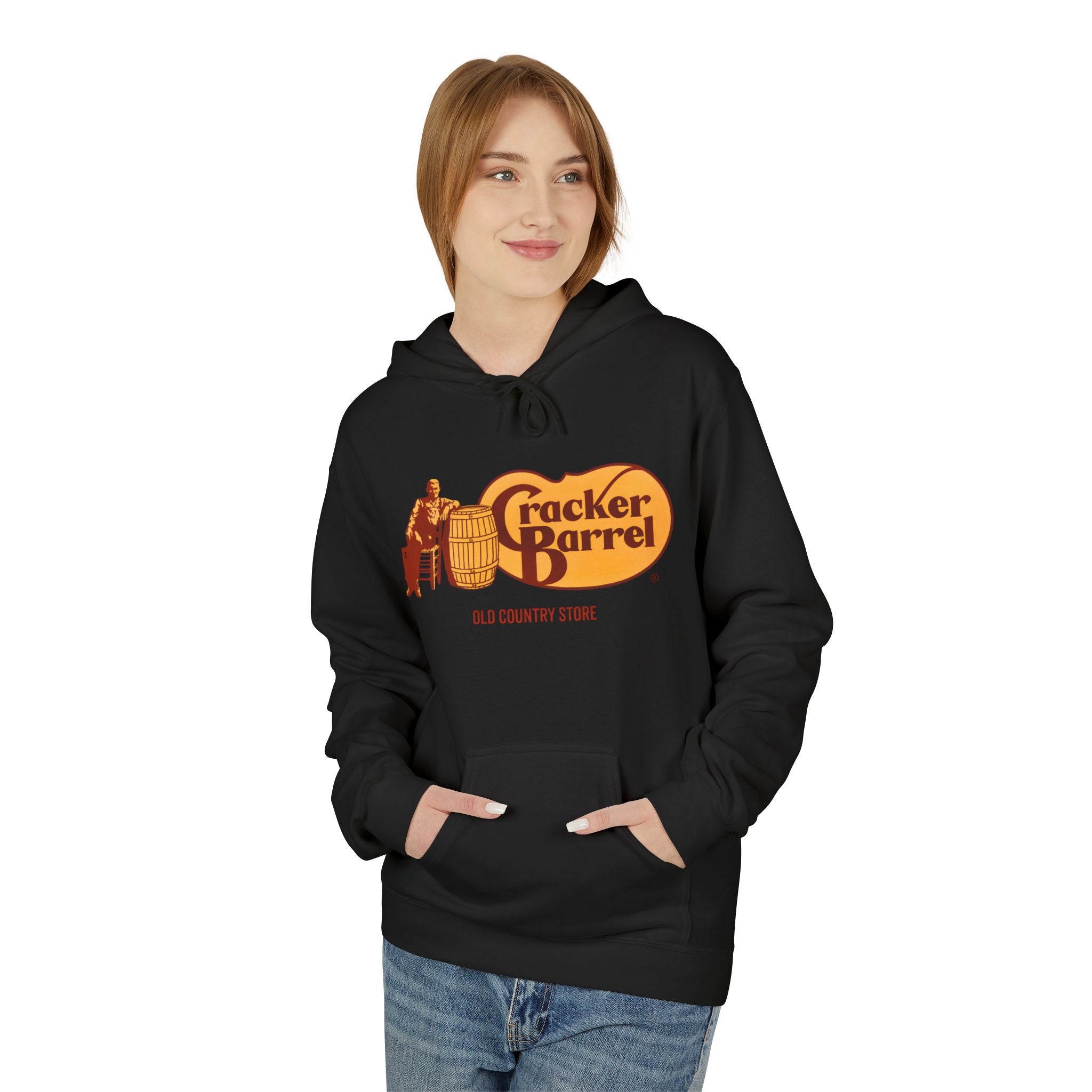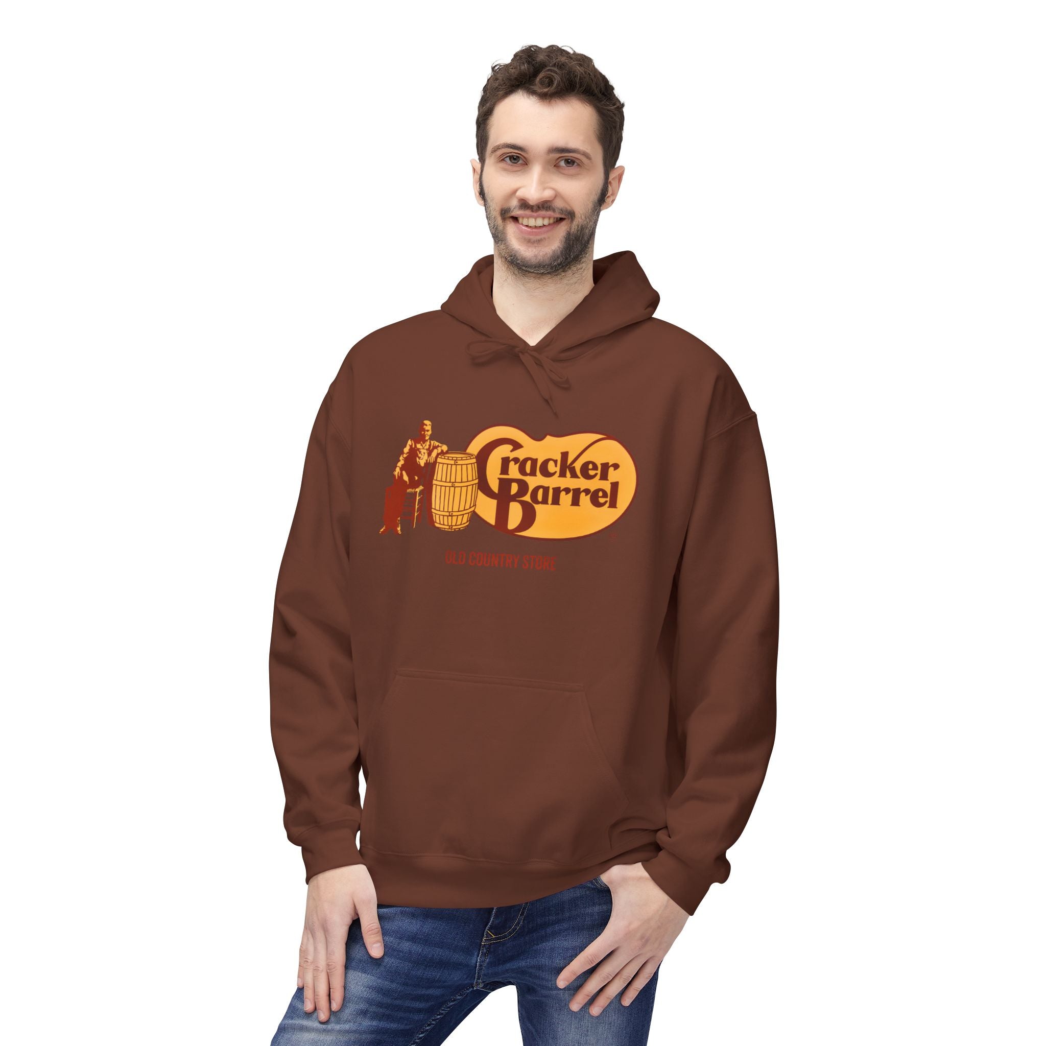 Vintage-Style Cracker Barrel Fleece Hoodie | Cozy Unisex Pullover for Casual Wear, Outdoor Adventures, Holidays, Gift Ideas