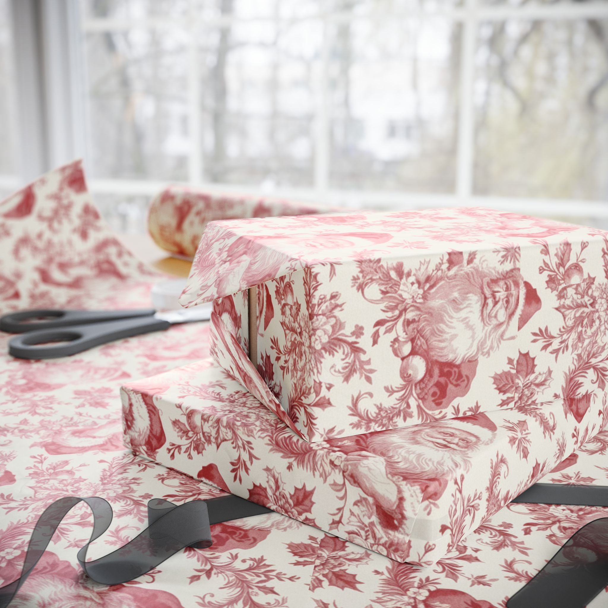 Soft, vintage charm wrapped into a sheet. This decorative wrapping paper features a delicate toile-style pattern in warm rose tones on a creamy background, bringing an old-world, handmade feel to every gift. The repeating scenes and botanical flourishes read like an illustrated story—gentle, nostalgic, and quietly festive. It folds and trims beautifully, adding an artisanal touch to birthdays, bridal showers, holiday presents, or simply elevating everyday packages for friends who appreciate thoughtful details.