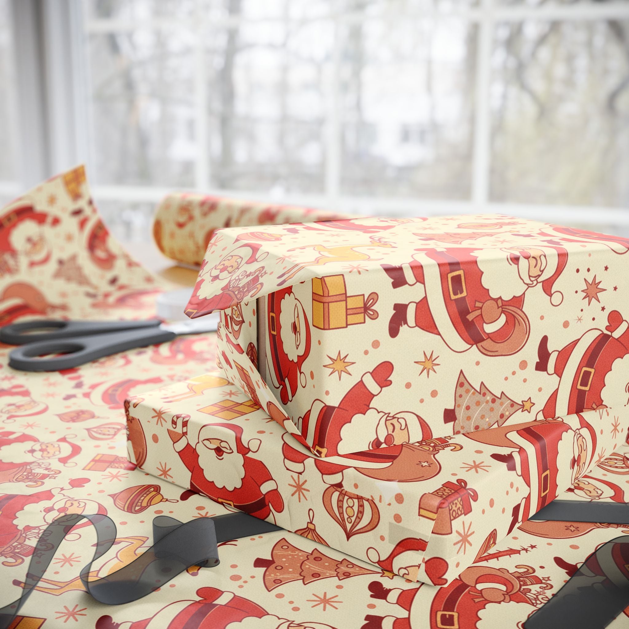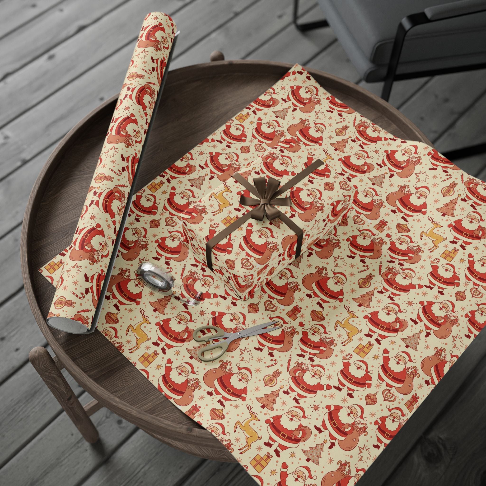 Wrapping Paper - Retro Santa Pattern Christmas Gift Wrap