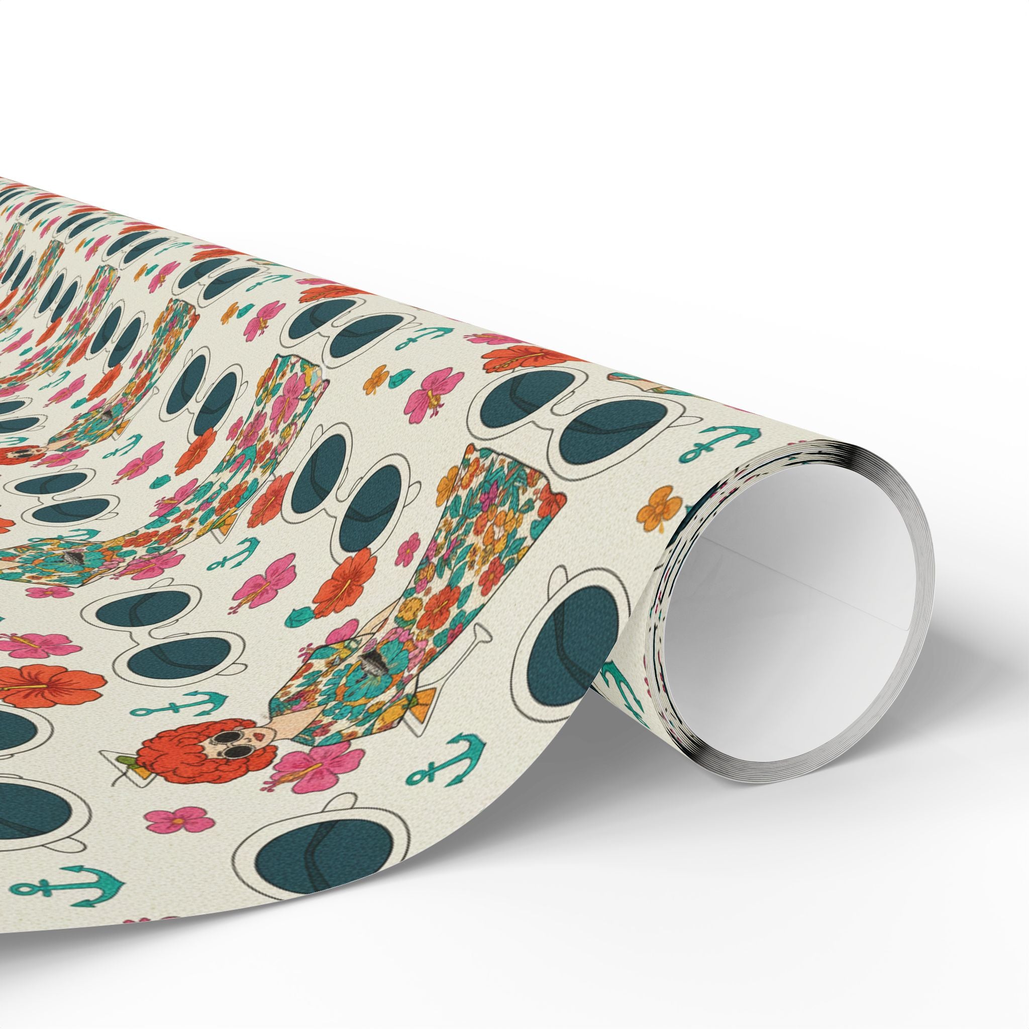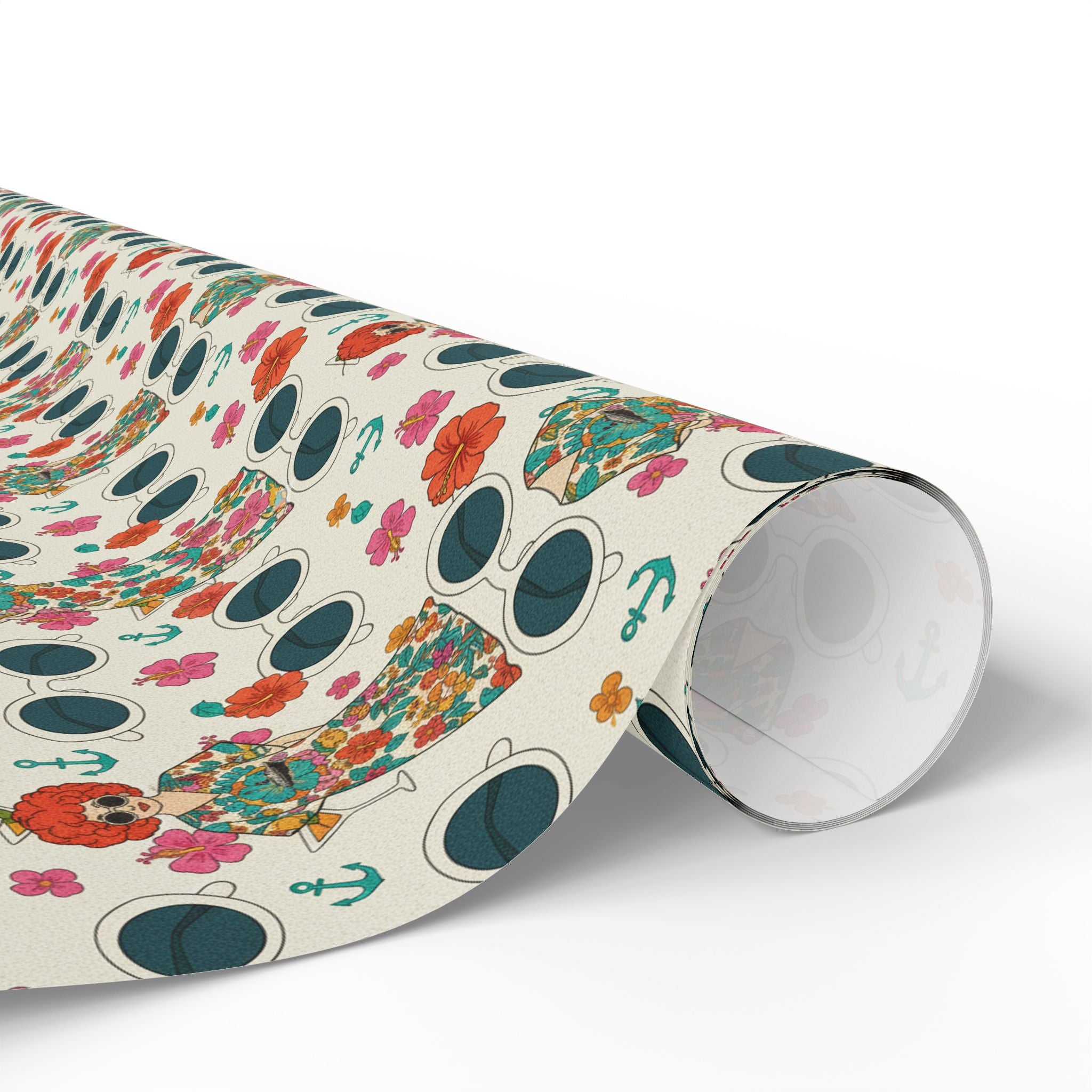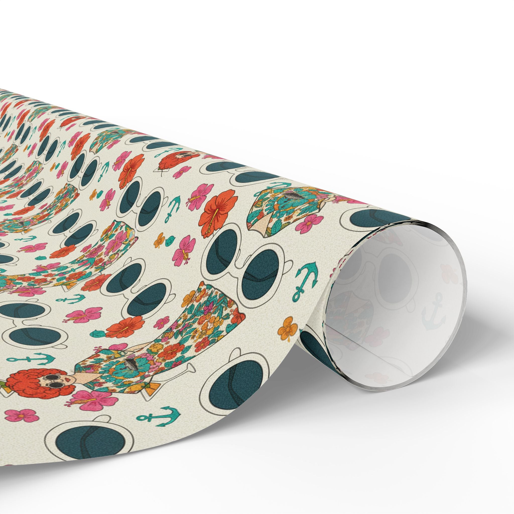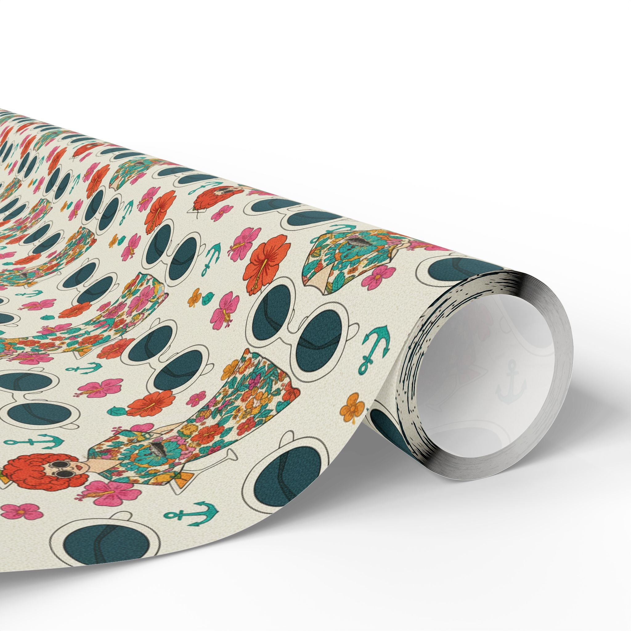 Wrapping Paper — Vintage Nautical Floral Pattern (Anchors, Sunglasses & Beach Dresses)