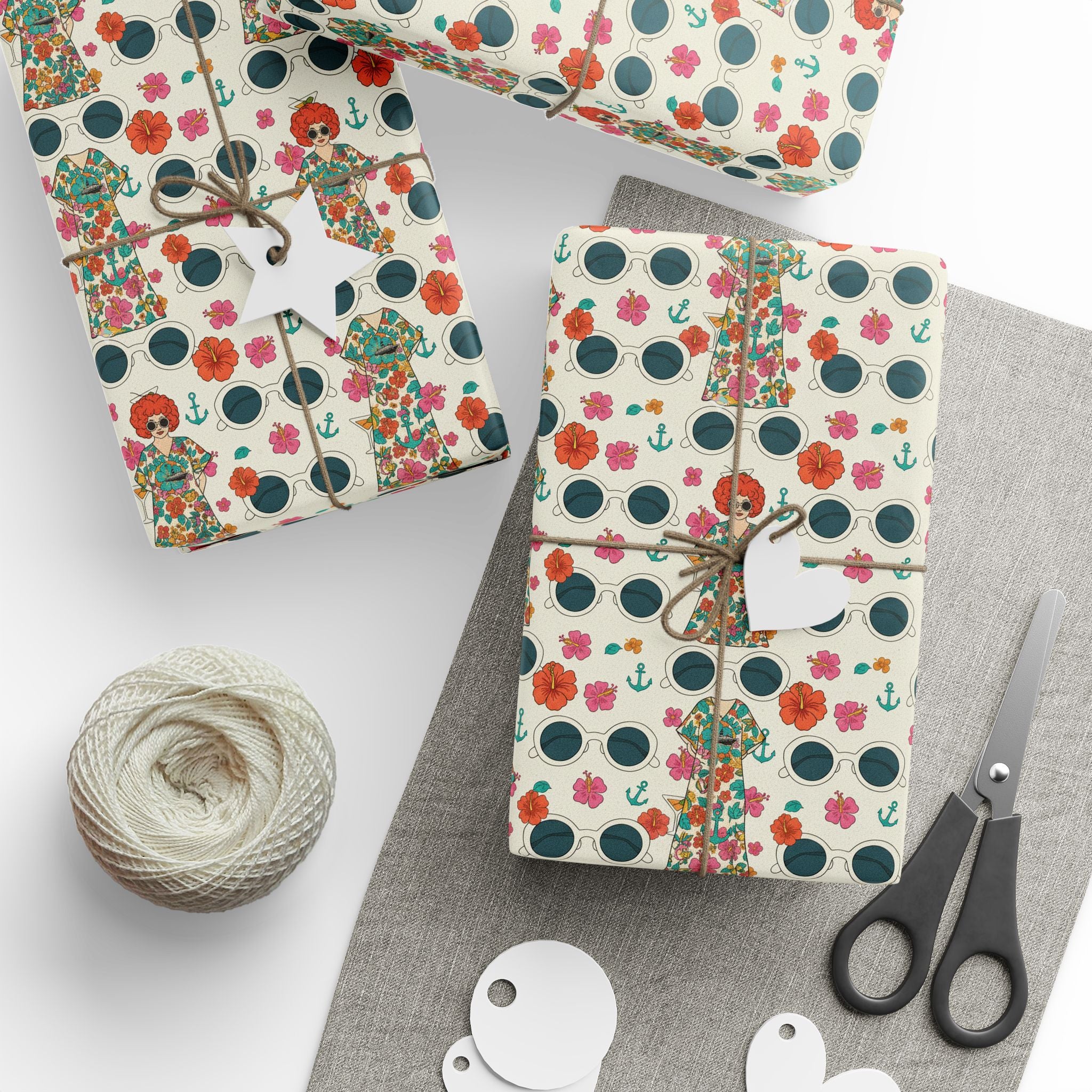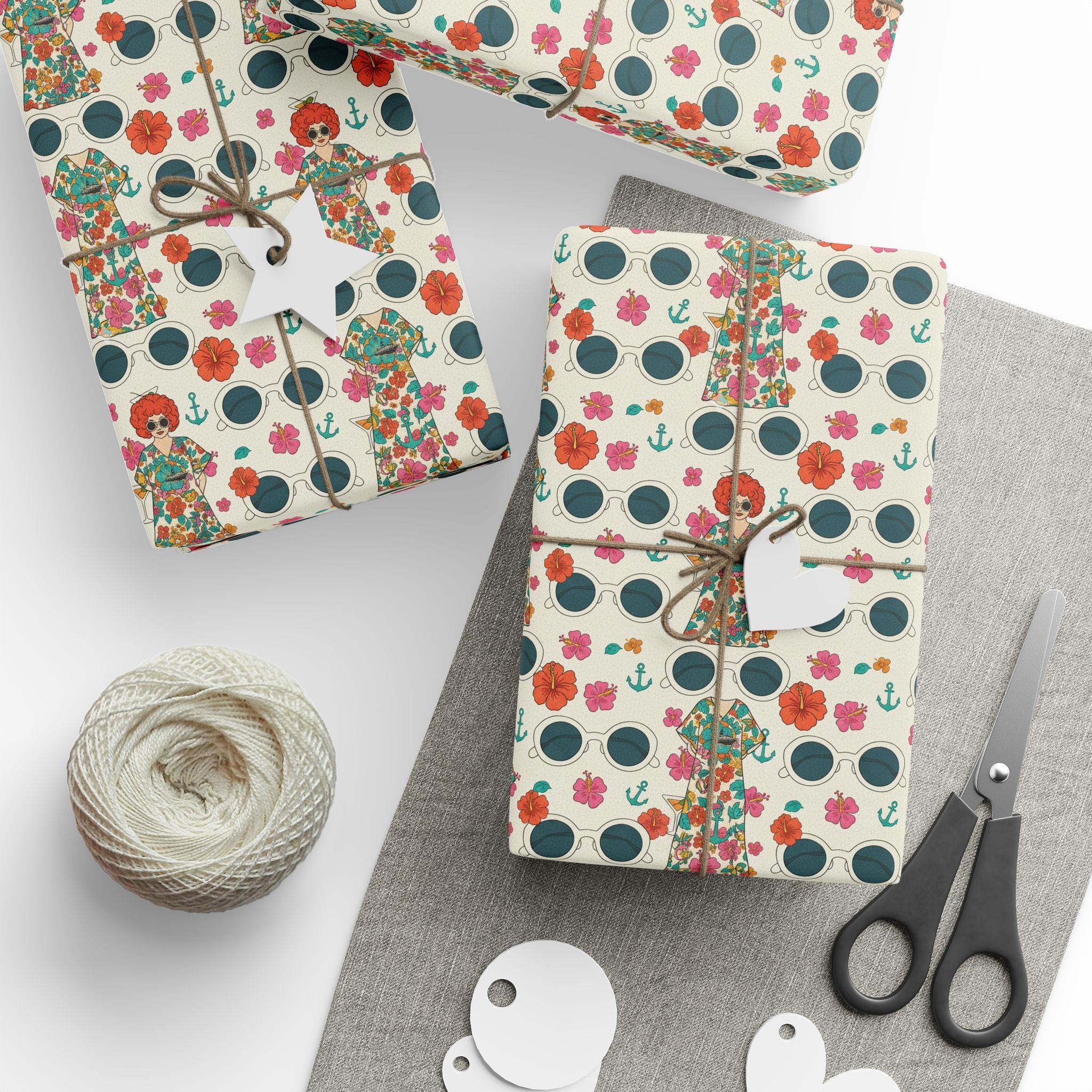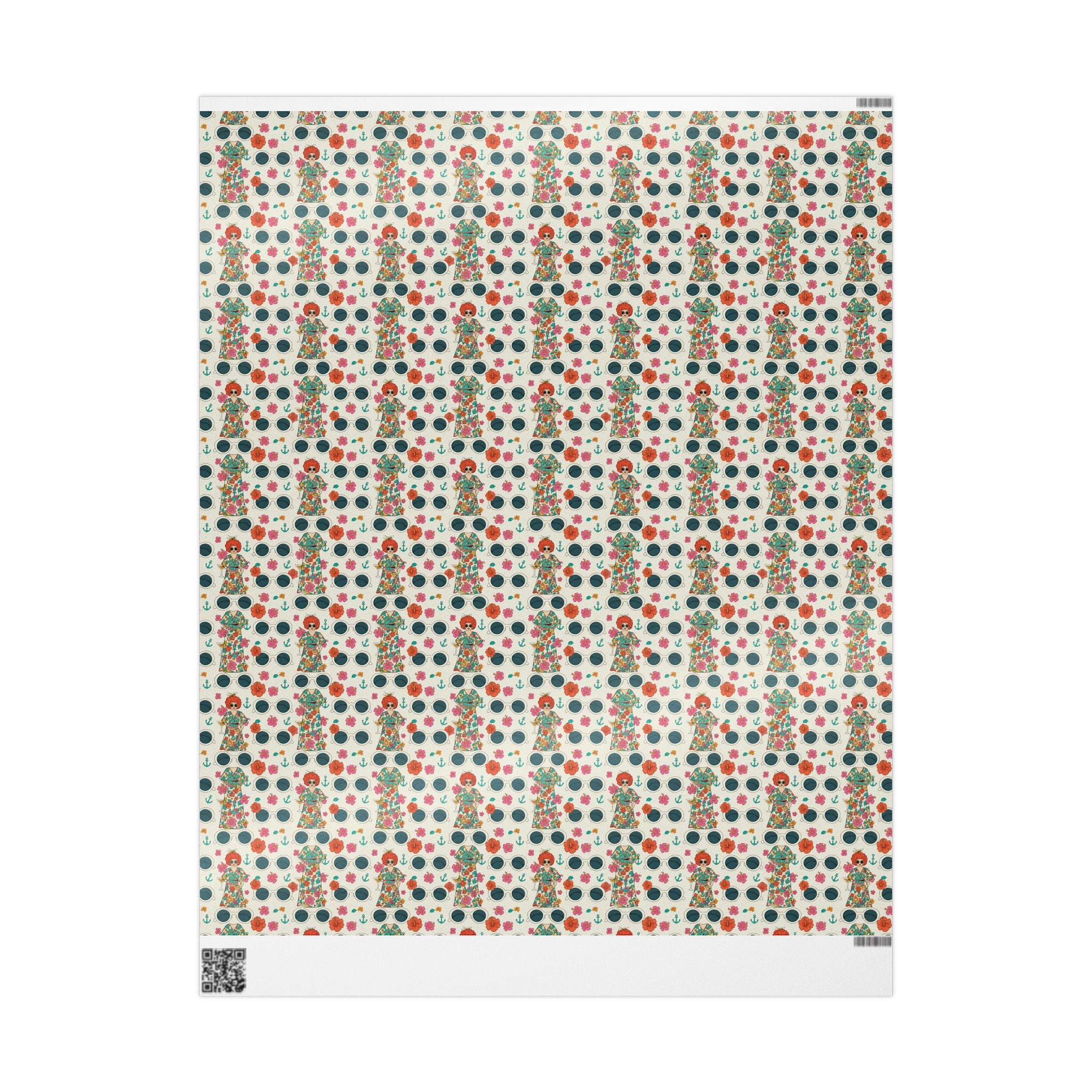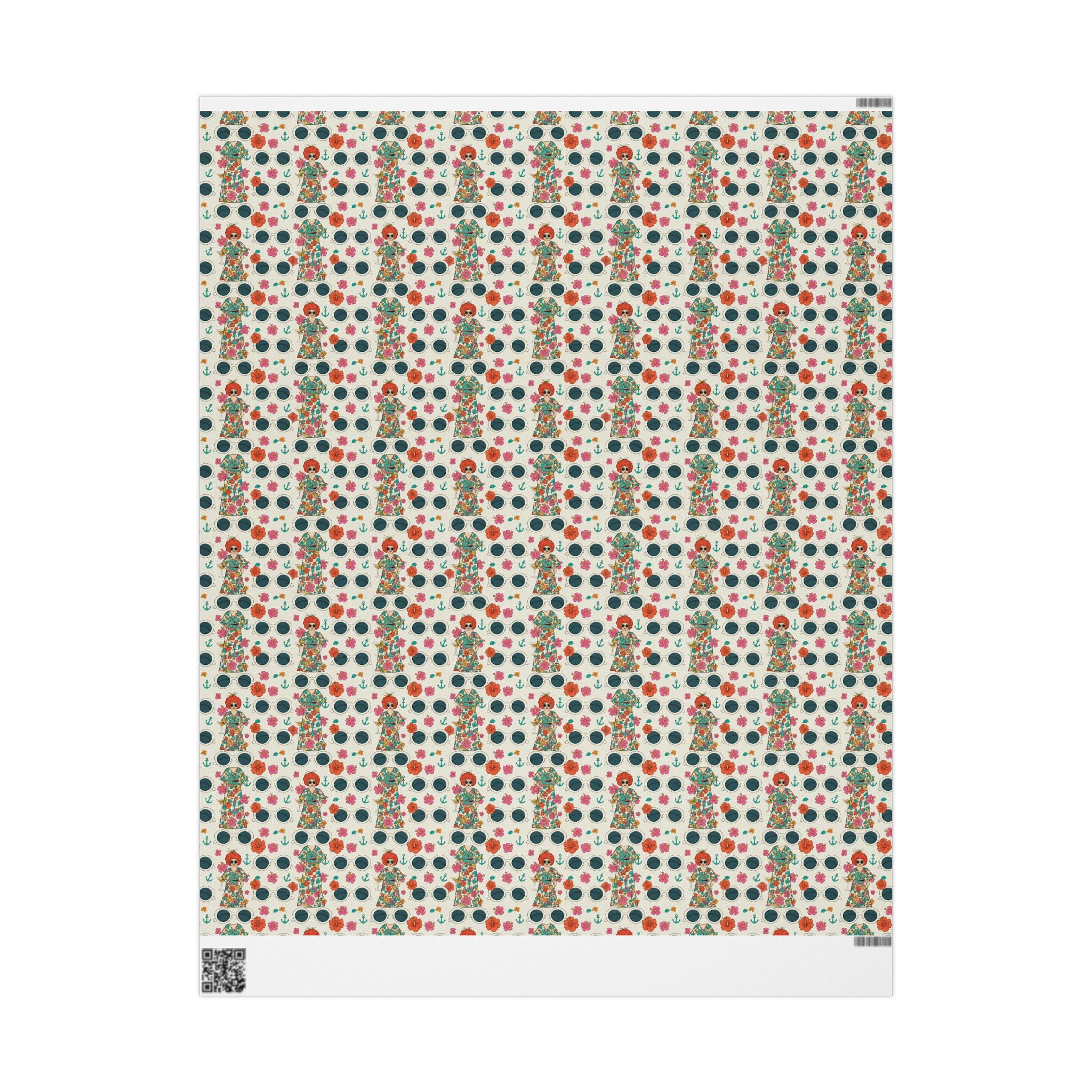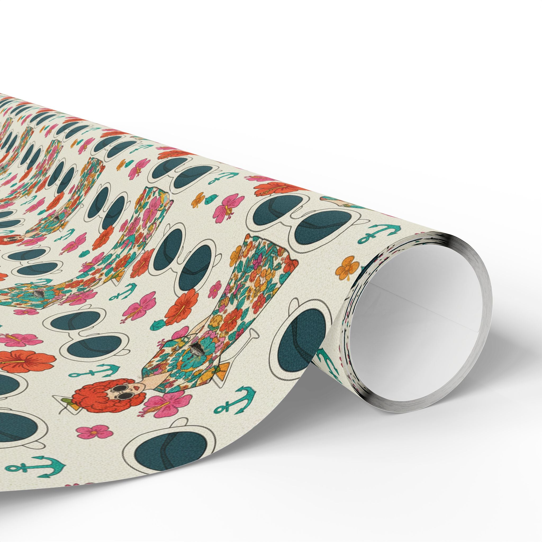 Wrapping Paper — Vintage Nautical Floral Pattern (Anchors, Sunglasses & Beach Dresses)